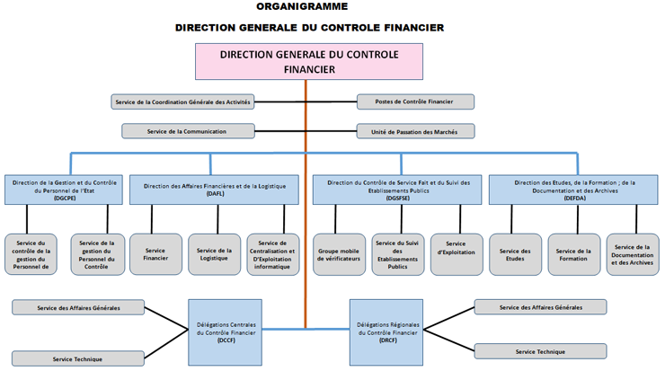 1. Le Contrôle Financier est composé de Délégations du Contrôle Financier. Il est dirigé par un Directeur Général, assisté de Directions d’appui.