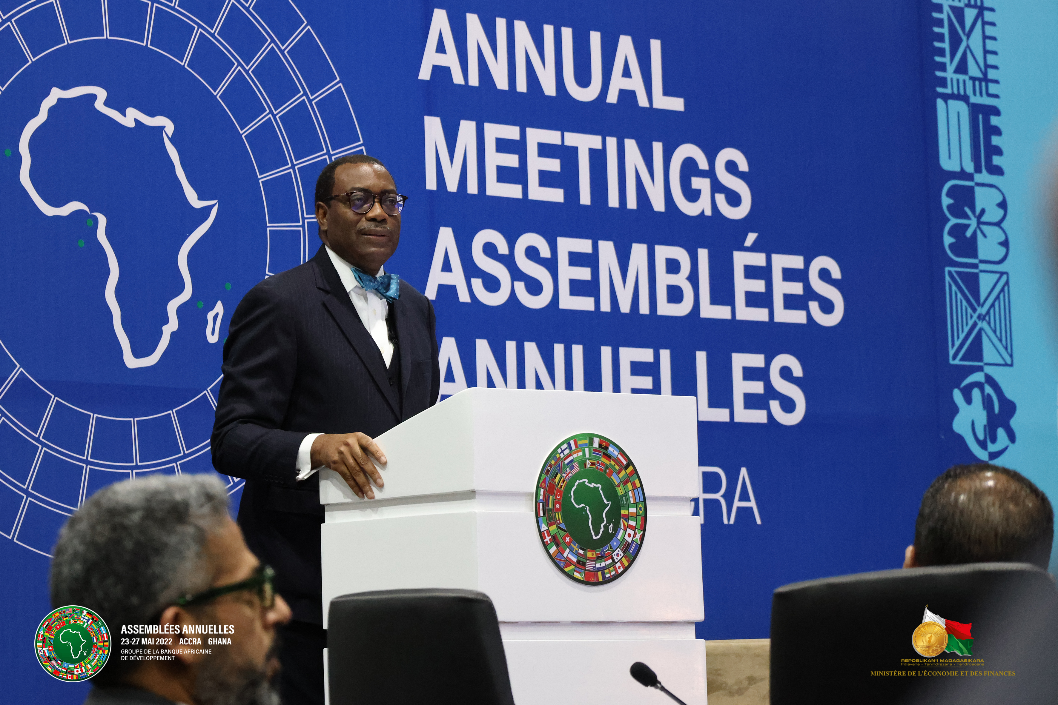 Accra, 25 Mai 2022 Les reunions s'enchaînent à Accra et le 25 Mai, les Gouverneurs des différents pays ont effectué un dialogue qui se concentrait surtout en un partage d'expériences, une exposition des besoins de chaque pays, ainsi que les différents problèmes rencontrés empêchant le développement. En général, il en est ressorti qu’il est devenu urgent de mobiliser les ressources pour tous les pays africains affaiblis par la covid19 et victimes des conséquences du changement climatique. Il est ainsi primordial de prioriser la résilience pour faire face aux diverses crises, pandémies, catastrophes et trouver des solutions sur le plan régional et non d'une manière individuelle. Il a également été question de beaucoup travailler et plus efficacement sur la réalisation des projets car un grand déficit est constaté en matière d'infrastructures en Afrique, mais il faut reconnaitre qu’il y a également un grand déficit en matière d’études; il faut d'abord détecter les moteurs de la fragilité, travailler sur la gouvernance financière, économique et politique. En ce qui concerne Madagascar, les perspectives de la BAD sont concordantes au PEM. Le pays est favorable à la réallocation de DTS. Madagascar a été bénéficiaire de l'ARC, qui a beaucoup aidé le pays de par son caractéristique géographie, étant une île qui est très souvent victime de catastrophes naturelles et qui deviennent de plus en plus fréquentes et agressives à cause du changement climatique. Madagascar est aussi favorable à une levée de fonds du FAD sur le marché financier.
