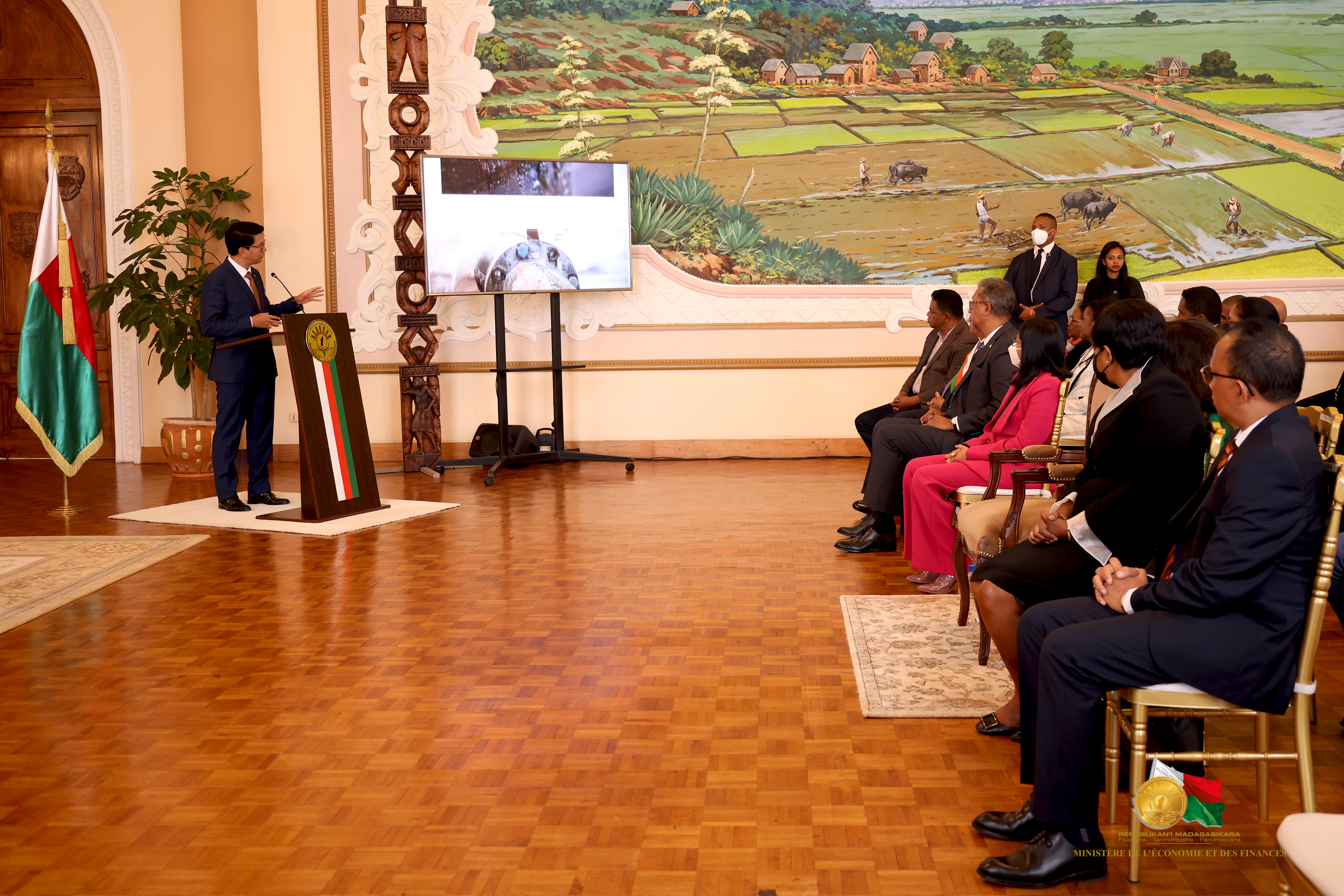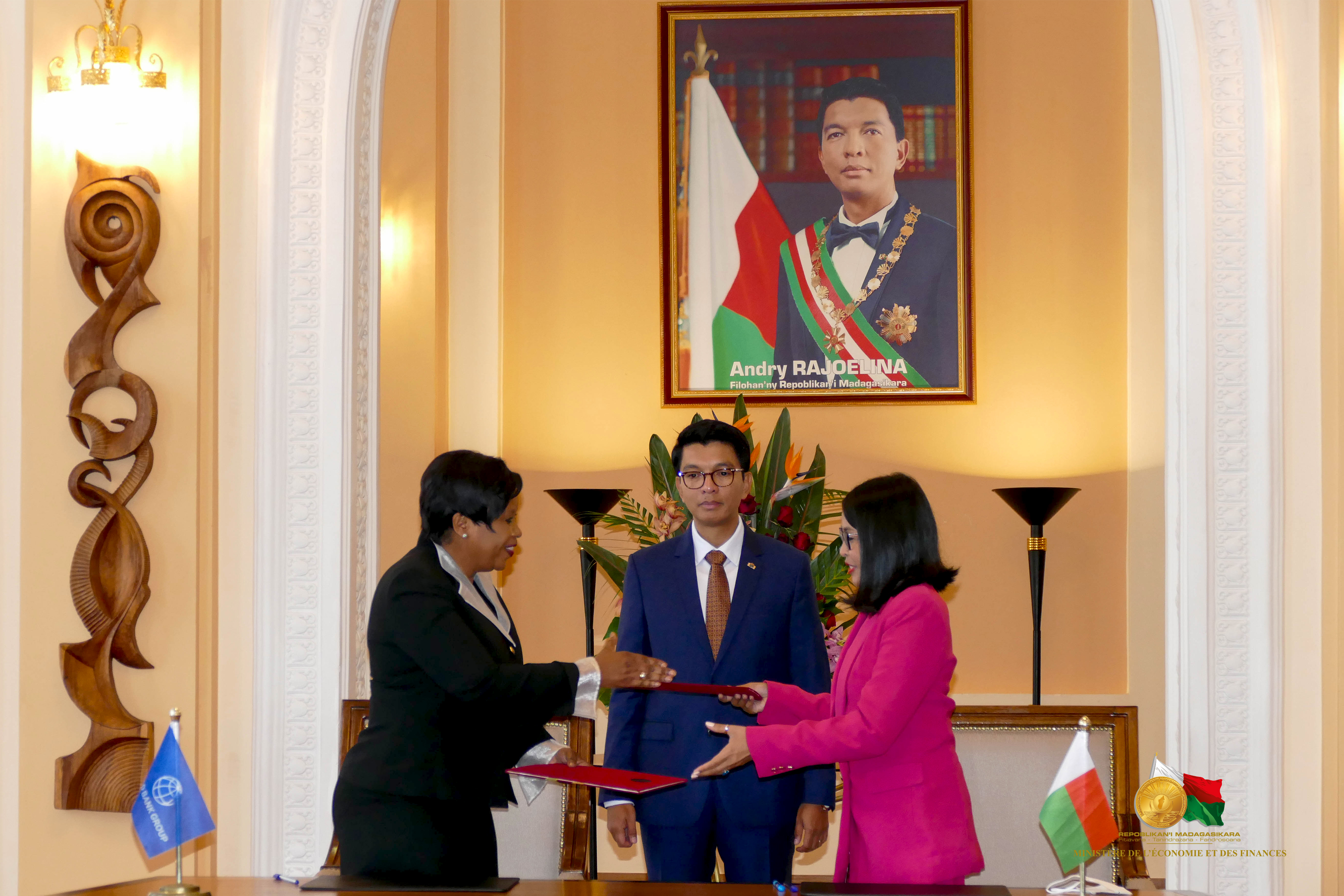 Iavoloha, 15 juin 2022 La Banque Mondiale, représentée par sa Représentante Résidente à Madagascar, Madame Marie-Chantal Uwanyiligira a octroyé ce mercredi 15 juin 2022, la somme de 220 millions de dollars US au Gouvernement de Madagascar, représenté par le Ministre de l'Economie et des Finances, Madame Rindra Hasimbelo RABARINIRINARISON pour la réalisation du projet d’Amélioration de l’Accès à l’eau Potable de Madagascar ( PAAEP). Ce financement dont la moitié est non remboursable est prévu améliorer la production en eau pour le Grand Antananarivo, à savoir une production d’eau additionnelle, sécuriser la production d'eau actuelle et réduire de facto les pertes d'eau. L’extension du service de l’eau pour le Grand Tana et les villes bénéficiaire est également prévu dans ce projet. Par ailleurs, un programme de branchement social ainsi que l’Amélioration de l'accès à l'eau dans les écoles et centres de santé sont attendus.