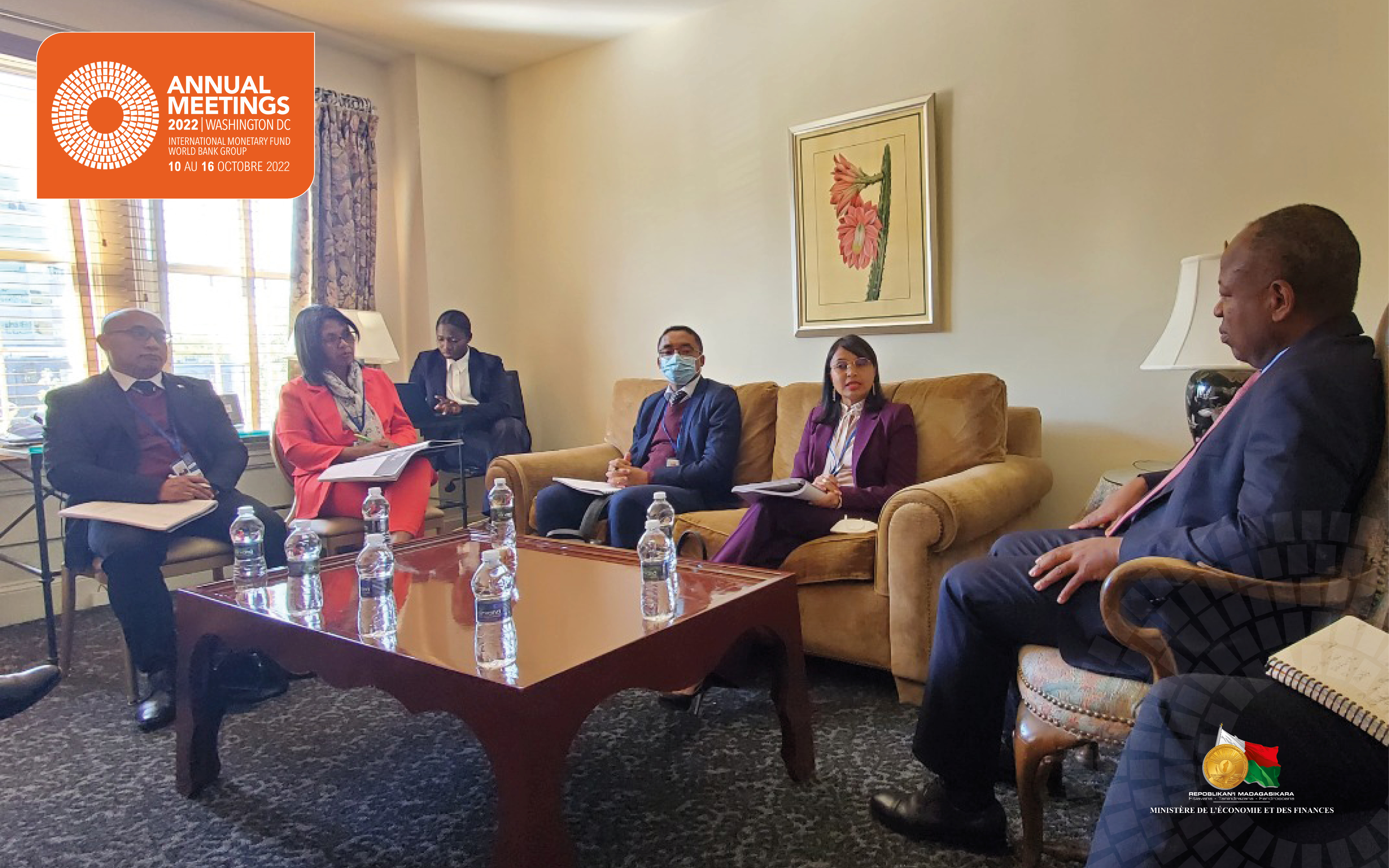 La délégation malgache conduite par Madame le Ministre de l'Economie et des Finances (MEF) a rencontré, en marge des Assemblées annuelles, le Directeur Général de l'Africa 50, Monsieur Alain Ebobissé et ses collaborateurs. Ce dernier n'a pas manqué d'exprimer sa satisfaction dans la coopération avec la Grande Île et a insisté sur l'importance du Partenariat Public-Privé (PPP) dans le processus de développement d'un pays. Ainsi, ont été abordés dans cette rencontre, (i) le recours au PPP pour l'électrification du Continent africain, notamment la mise en place d'une ligne de transport d'électricité, (ii) le secteur de l'énergie via le développement de centrales électriques comme en Egypte, au Nigéria, au Mozambique,... (iii) et le développement du marché des Technologies de l'Information et de la Communication qui projette la promotion et l'utilisation de la fibre optique pour l'augmentation des débits de connexion. Convaincue des projets de développement évoqués par Monsieur Alain Ebobissé, Madame Rindra Hasimbelo RABARINIRINARISON a invité ce dernier à la présentation du PEM qui se déroulera du 28 au 30 octobre 2022, pendant laquelle se tiendra une cérémonie de signature des partenaires qui souhaitent accompagner Madagascar dans sa réalisation, qui rappelons-le, se base sur le Partenariat Public-Privé pour le financement des projets.