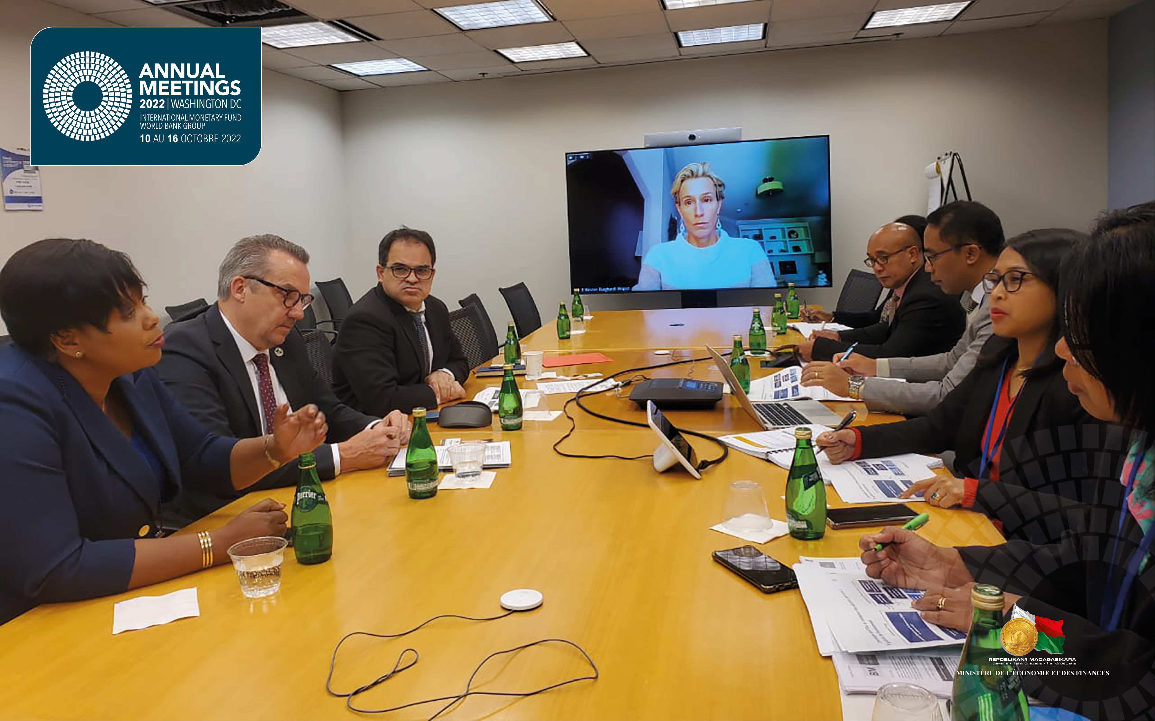 Toujours en marge des Assemblées Annuelles du groupe de la Banque Mondiale et du FMI, la délégation malgache conduite par le Ministre de l’Economie et des Finances, Madame Rindra Hasimbelo RABARINIRINARISON a rencontré l’équipe du Département des Finances de la Banque Mondiale, formée entre autres du nouveau Directeur de l’IDA (Association Internationale de Développement), Monsieur Dirk REINERMANN et du Responsable Stratégies et Opérations de la Banque, Monsieur Blanco ARMAS. Le Représentant Résident de la Banque Mondiale à Madagascar, Madame Marie-Chantal UWANYILIGIRA, a également assisté à ladite réunion. Les discussions ont été centrées sur le déploiement de l’allocation IDA-20, notamment au niveau du cadre de coopération et des principales innovations à intégrer dans le processus de financement. A savoir, une rallonge de crédits jusqu’à 50 ans, avec une certaine souplesse dans le choix des secteurs et instruments, et l’introduction des prêts à plus courtes durées qui permettront d’augmenter le volume de ressources disponibles auprès des pays donateurs de l’IDA. Pour le cas de Madagascar, un accord de principe a été donné dans le cadre de l’IDA-20 avec l’approbation de deux financements sur la protection sociale et pour faire face à l’inflation, notamment l’augmentation du prix à la pompe avec respectivement un montant de 150 millions USD et 50 millions USD. Toujours dans cet élan, Madagascar a été félicité et soutenu par Madame le Marie-Chantal UWANYILIGIRA pour les efforts de réformes. En effet, lors de l’année fiscale 2022, la Grande Ile a mis en place d’une manière satisfaisante trois points importants : le renforcement de la transparence de la dette, la viabilité budgétaire, et la gestion de l’endettement. Le Gouvernement a par ailleurs proposé 3 PPAs (mesures de performance et politique publique) pour l’année fiscale 2023