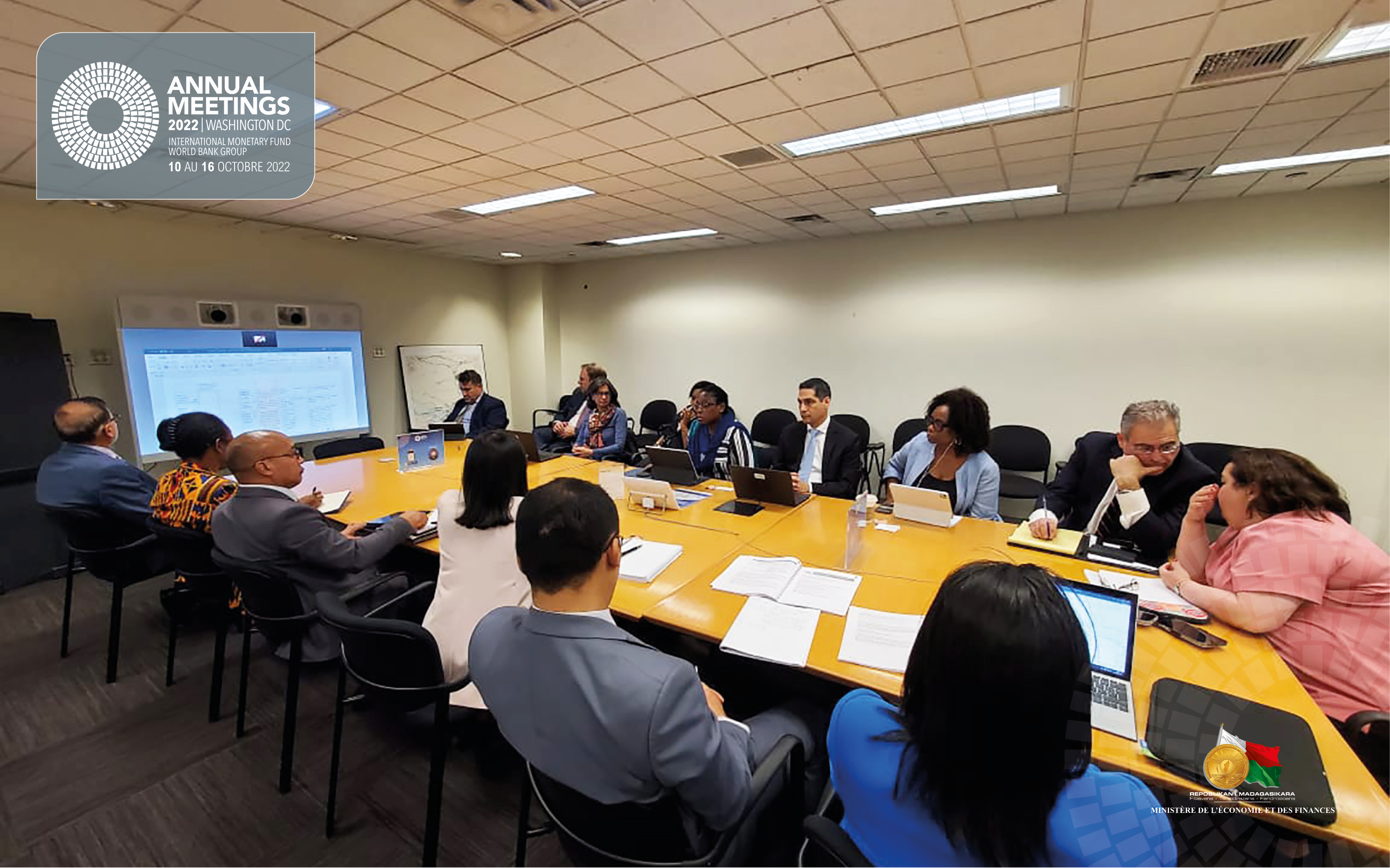Troisième journée de réunion à Washington. La délégation malgache s’est réunie avec une équipe de la Banque Mondiale sur les appuis Budgétaires, conduite par Mesdames Marie-Chantal Uwanyiligira et Idah Pswarayi-Riddihough, respectivement Représentante Résidente de la Banque à Madagascar et Directeur des Opération de la Banque Mondiale pour les Comores, Madagascar, Maurice et le Mozambique.