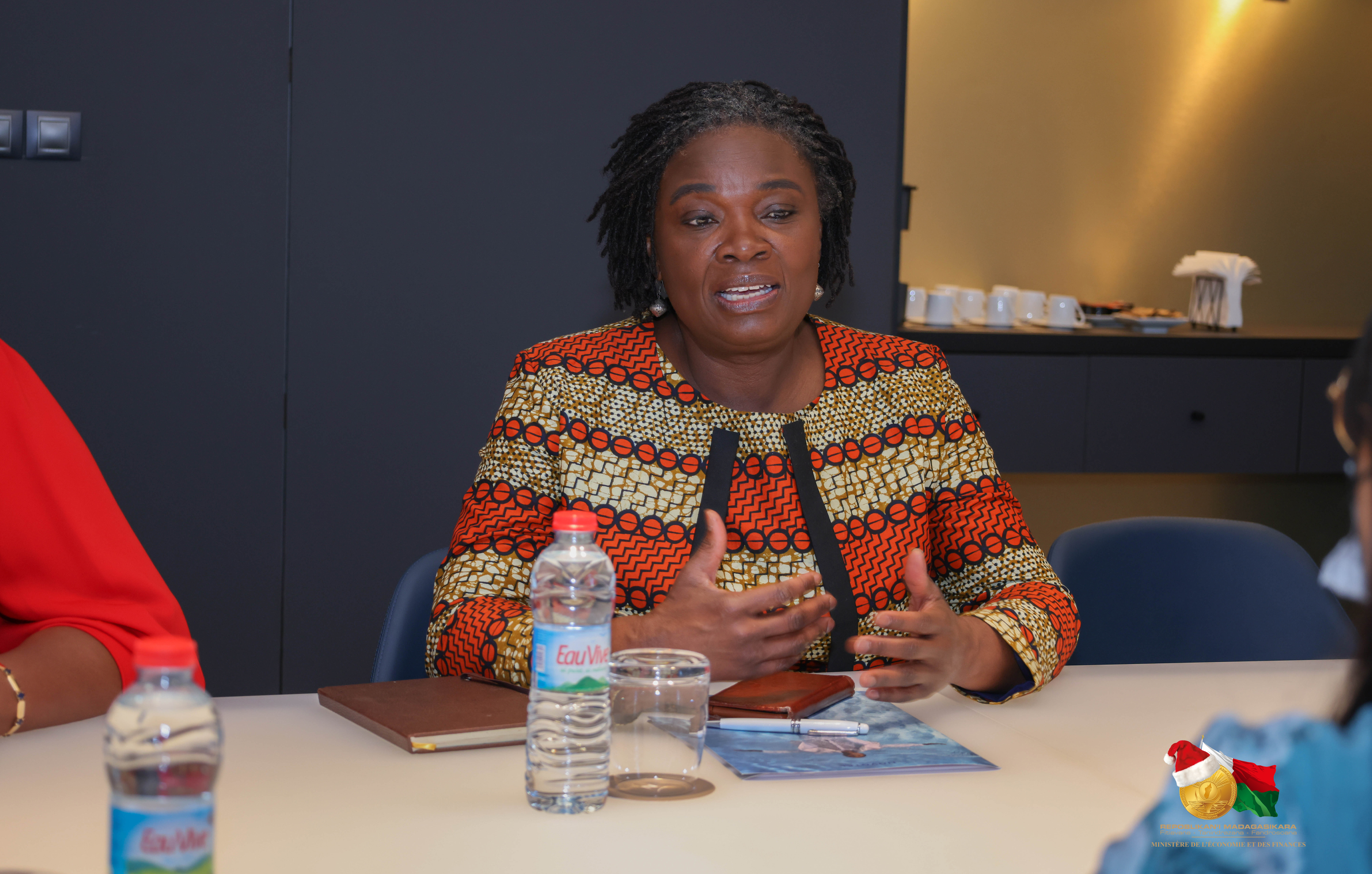 Dans le cadre de la visite de la Vice Présidente pour l'Afrique Australe et Orientale du groupe de la Banque Mondiale, Madame Victoria Kwakwa, une rencontre entre cette dernière, les représentants de l'institution à Madagascar, conduite par Madame Marie Chantal Uwanyiligira et le Ministre de l'Economie et des Finances, Madame Rindra Hasimbelo Rabarinirinarison, s'est tenue ce jour à Alarobia.