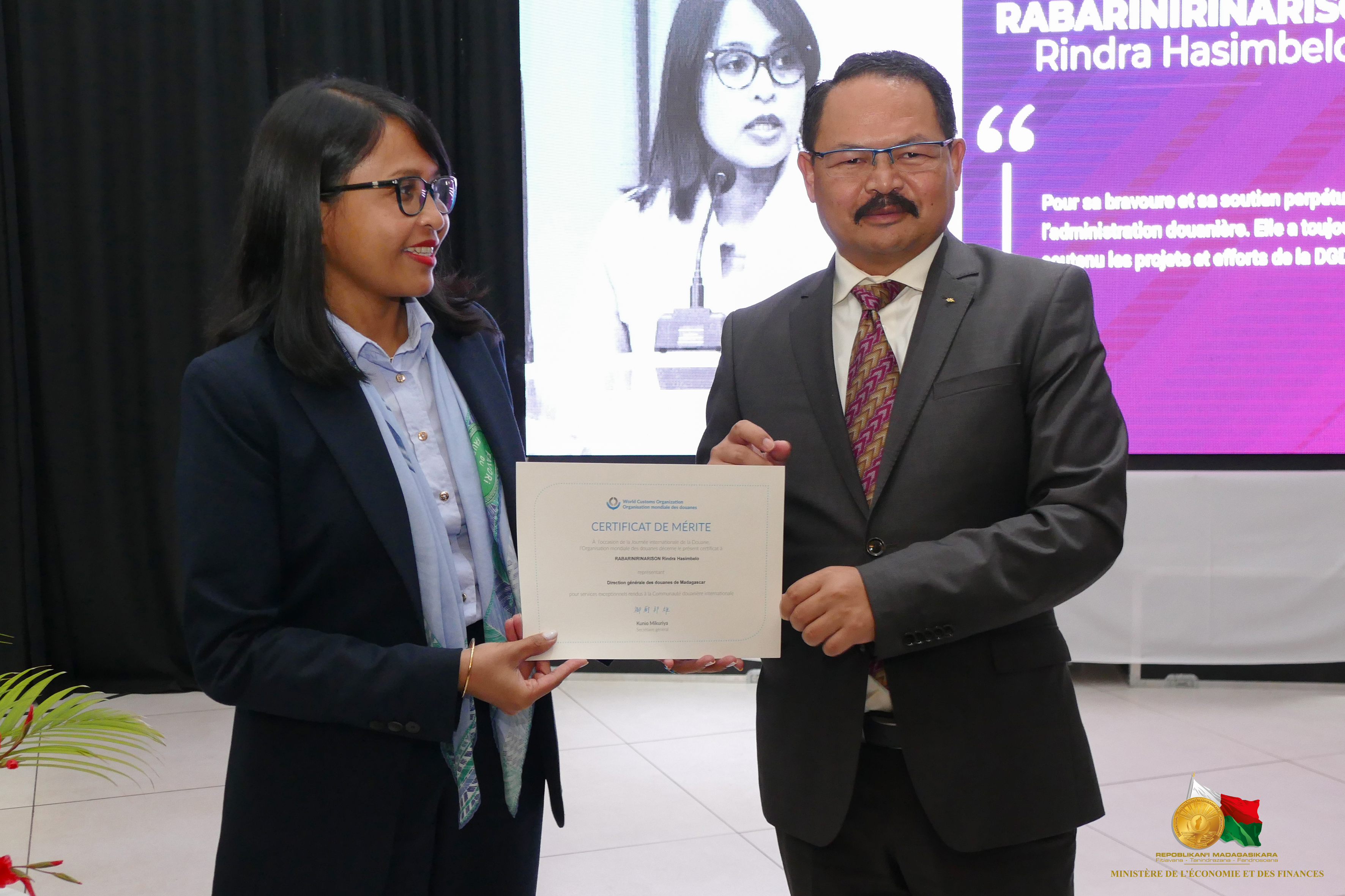 L’Organisation Mondiale des Douanes a choisi de mettre le capital humain à l’honneur ; ce qui coïncide avec le programme de développement de cette administration à Madagascar sous la houlette de son Directeur Général, Monsieur Lainkana Ernest Zafivanona. Selon les explications de ce dernier, la Douane malagasy contribue aux recettes de l’Etat à hauteur de presque 50% ; ces recettes-même qui servent à construire les écoles, à bâtir les hôpitaux, à payer les salaires. Au-delà de cette mission fiscale, elle assure également avec brio sa mission sécuritaire, en protégeant le pays des menaces extérieures diverses tout en sécurisant les ressources intérieures. Grâce aux Agents performants et au Département organisé et professionnel, la Douane fait partie des piliers du Département en charge des finances malgré les obstacles et crises diverses.