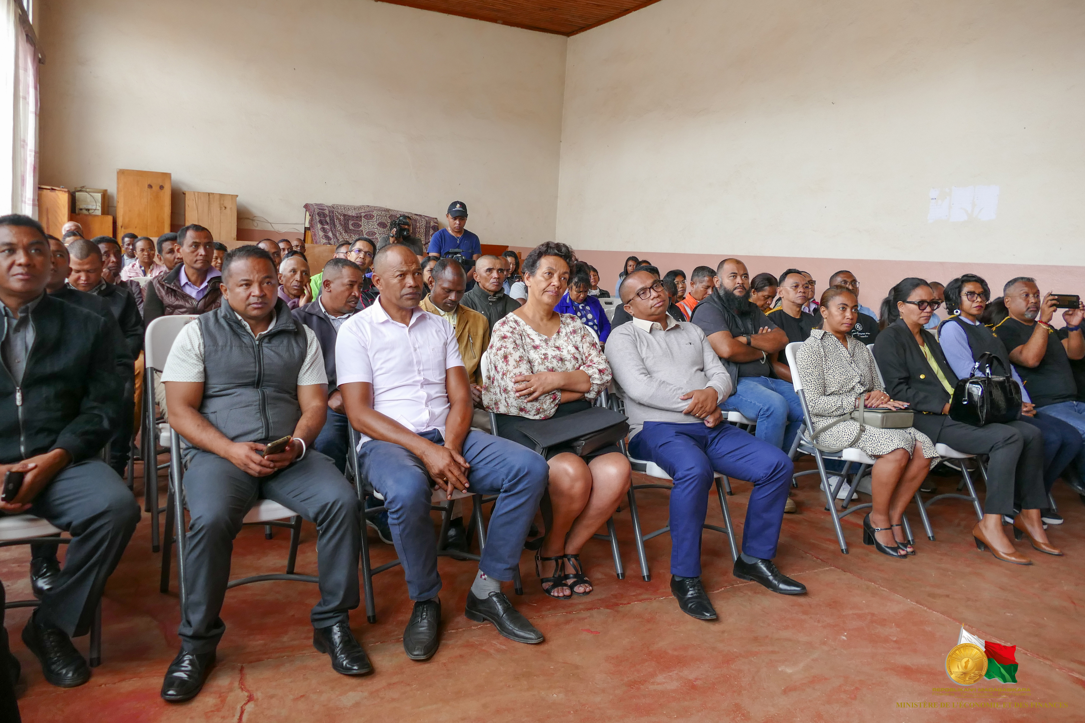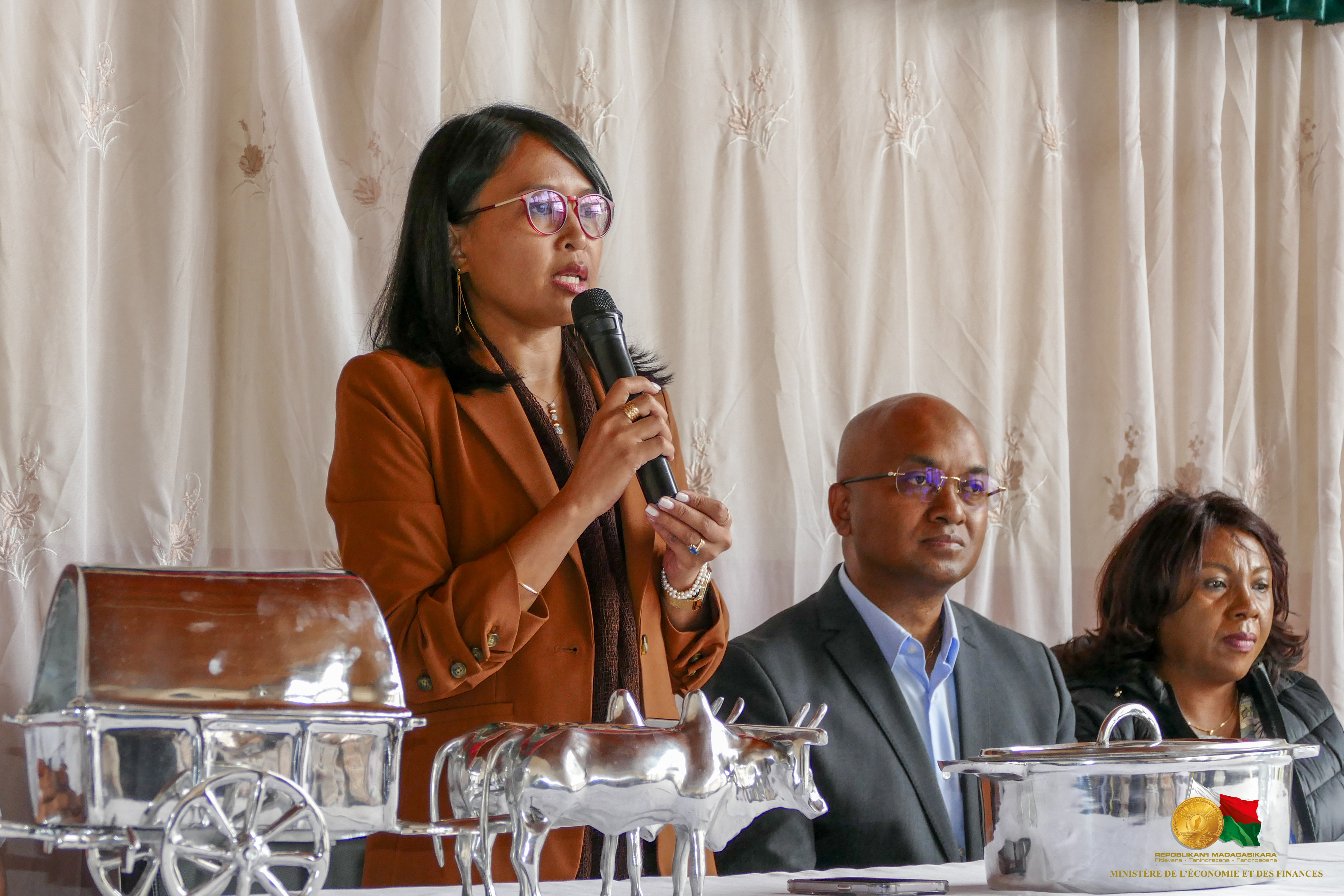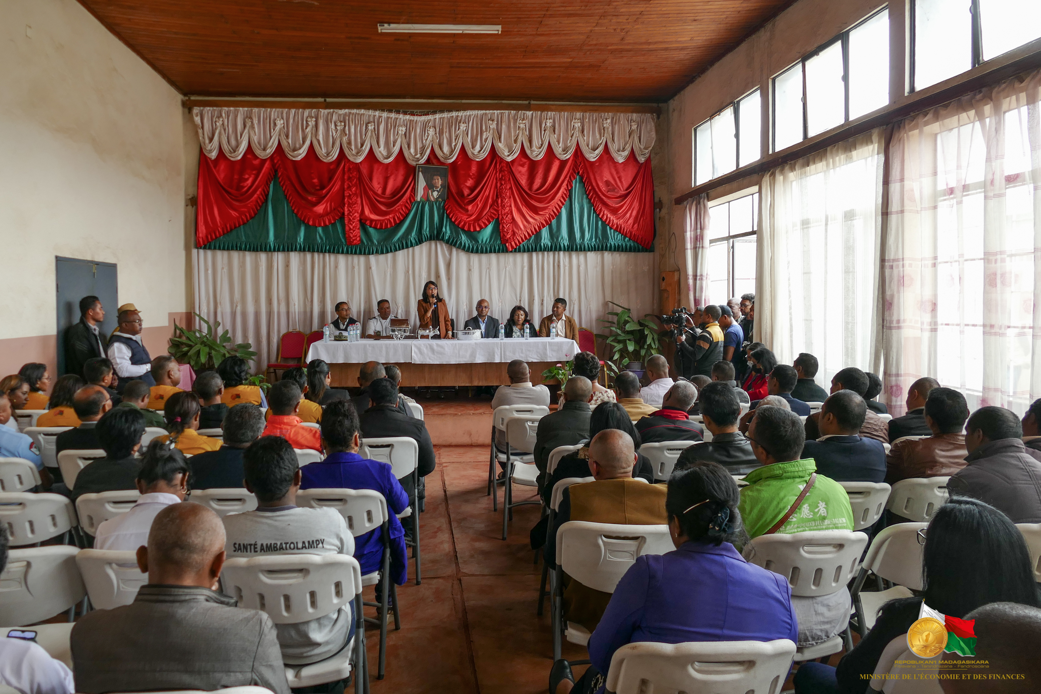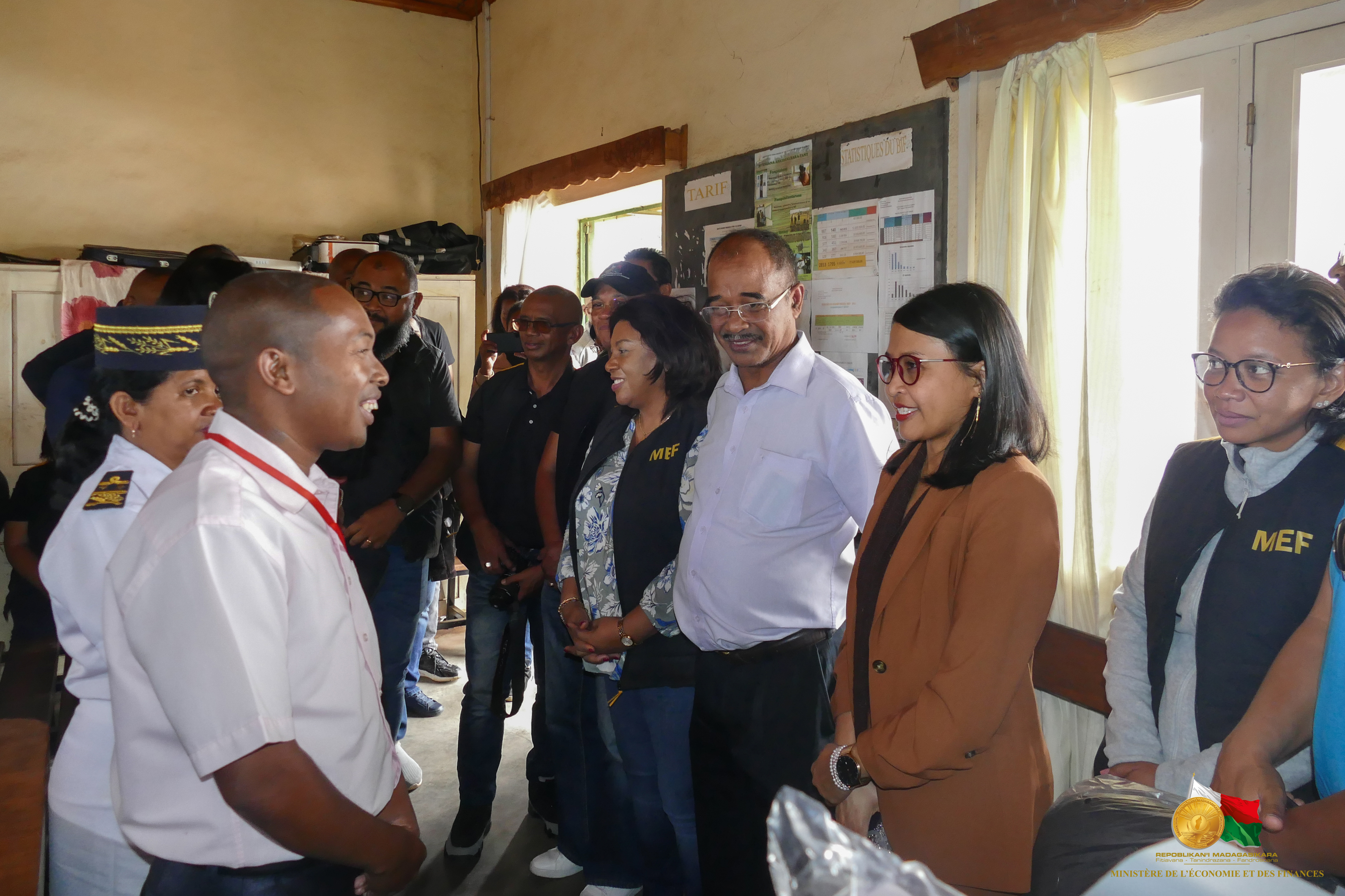 Le Minisitre de l'Economie et des Finances, Madame Rindra Hasimbelo RABARINIRINARISON, accompagnée de son staff et son cabinet ont procédé hier à une descente auprès des Perceptions Principales et Bureaux de District des localités bordant les routes nationales 7, 43 et 1 dans la réalisation du Velirano numéro 11 qui est le modernisation de Madagascar. Ce fut, pour la Ministre l'occasion d'échanger avec les autorités locales et Responsables des CTD et STD, partageant les visions du Président de la République dans le cadre de développement de Madagascar. Des échanges autour des principaux projets prioritaires du PEM ont eu lieu pour illustrer les efforts et avancées faites par le régime actuel sur le plan social principale ; ligne directive pour cette année 2023. Notamment la construction d'hôpitaux ou le développement de cantines scolaires. Par ailleurs, le projet Sahofika, opérationnel en 2027, a également été soulevé, étant donné l'importance des Energies renouvelables.