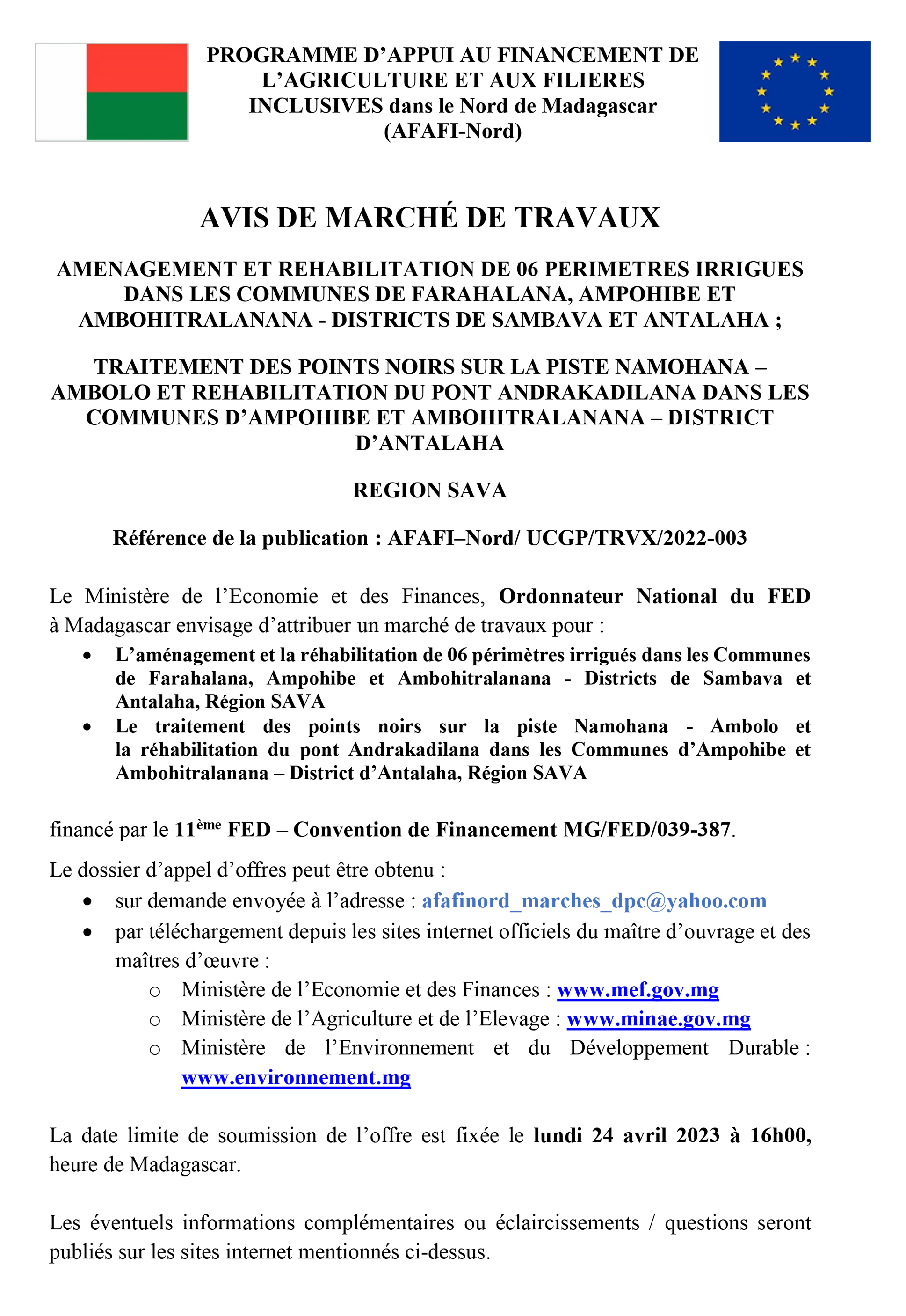 Lien de téléchargement DAO REHABILITATION SAVA