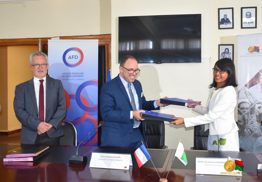 S’est tenue le 27 février 2023 dans les locaux du Ministère de l’Economie et des Finances la signature d’une convention de financement entre l’Etat Malagasy, par le biais du Ministère de l’Economie et des Finances, et l’Agence Française de Développement (AFD). Une convention qui concerne le Projet d’appui à la Commune Urbaine d’Antananarivo (CUA), d’une valeur de 8,3 millions d’euros et qui vise à « sécuriser les citadins utilisant la « mobilité douce ». La cérémonie a été honorée de la présence de l’Ambassadeur de France, SEM. Arnaud GUILLOIS, ainsi que du Ministre de l’Economie et des Finances, Madame Rindra Hasimbelo RABARINIRINARISON. Une convention qui permettra d’accroître la qualité de vie pour la santé de tous, tel qu’il est cité dans le Velirano n°05 du Président de la République, Andry RAJOELINA, ainsi que le Velirano n°12, visant l’autonomie et la responsabilisation des Collectivités Territoriales Décentralisées dont fait partie la Commune Urbaine d’Antananarivo. Une fois ces travaux effectifs, Antananarivo verra la réhabilitation et l’élargissement des trottoirs, la sécurisation des zones partiellement piétonnes, la création des itinéraires cyclables entre les polarités, la sécurisation des abords des établissements scolaires et des zones de marché, l’amélioration des zones d'attente des taxi-bé par les travaux de voirie, et enfin, l’éclairage de tunnels. En complément, un dispositif de pépinière urbaine sera mis en place afin de développer des espaces publics.