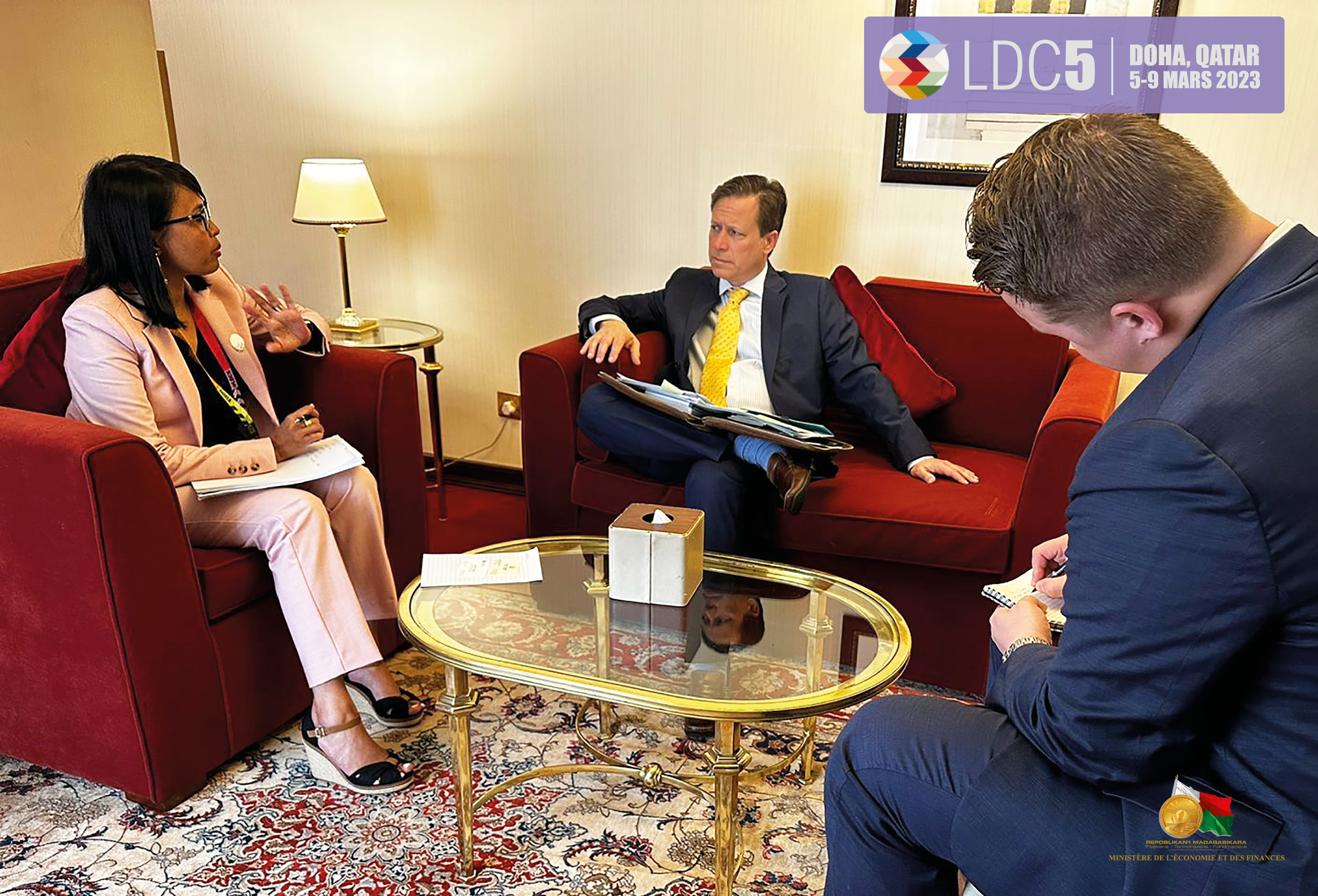 Toujours en marge de la LDC5, le "Chief Development Officier" US International Development Finance Corporation (IDFC), Monsieur Andrew M. HERSCOWITZ a rencontré ce jour le Grand Argentier, Madame Rindra Hasimbelo RABARINIRINARISON. Les deux parties ont échangé sur d'éventuelles collaborations avec le Secteur Privé notamment en matière d'investissements dans les projets en rapport à la protection de l'environnement. Ce représentant de l'IDFC a également évoqué son intérêt à appuyer le Secteur Privé en matière d'investissement pour le développement économique de Madagascar. |