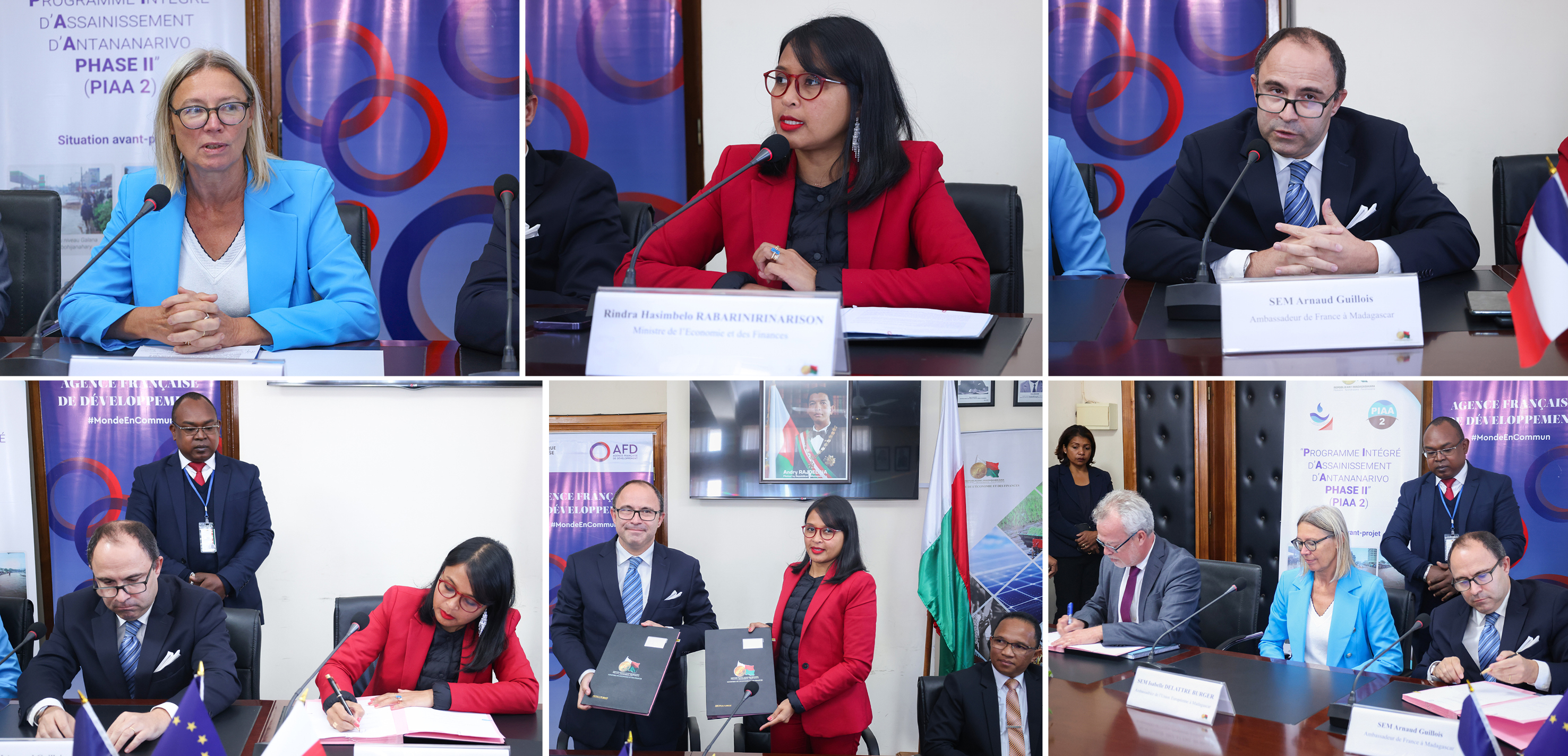 Dans le cadre de cette collaboration, une cérémonie de signature d’une convention de subvention d’un montant de 8 millions d'euros s’est tenue ce jour au Ministère de l’Economie et des Finances. Cette convention a été marquée par la Signature Tripartite entre le Ministre de l’Economie et des Finances, Madame Rindra Hasimbelo RABARINIRINARISON, le Directeur de l’Agence Française de Développement, Monsieur Yves GUICQUERO, et l’Ambassadeur de France à Madagascar, Monsieur Arnaud GUILLOIS.