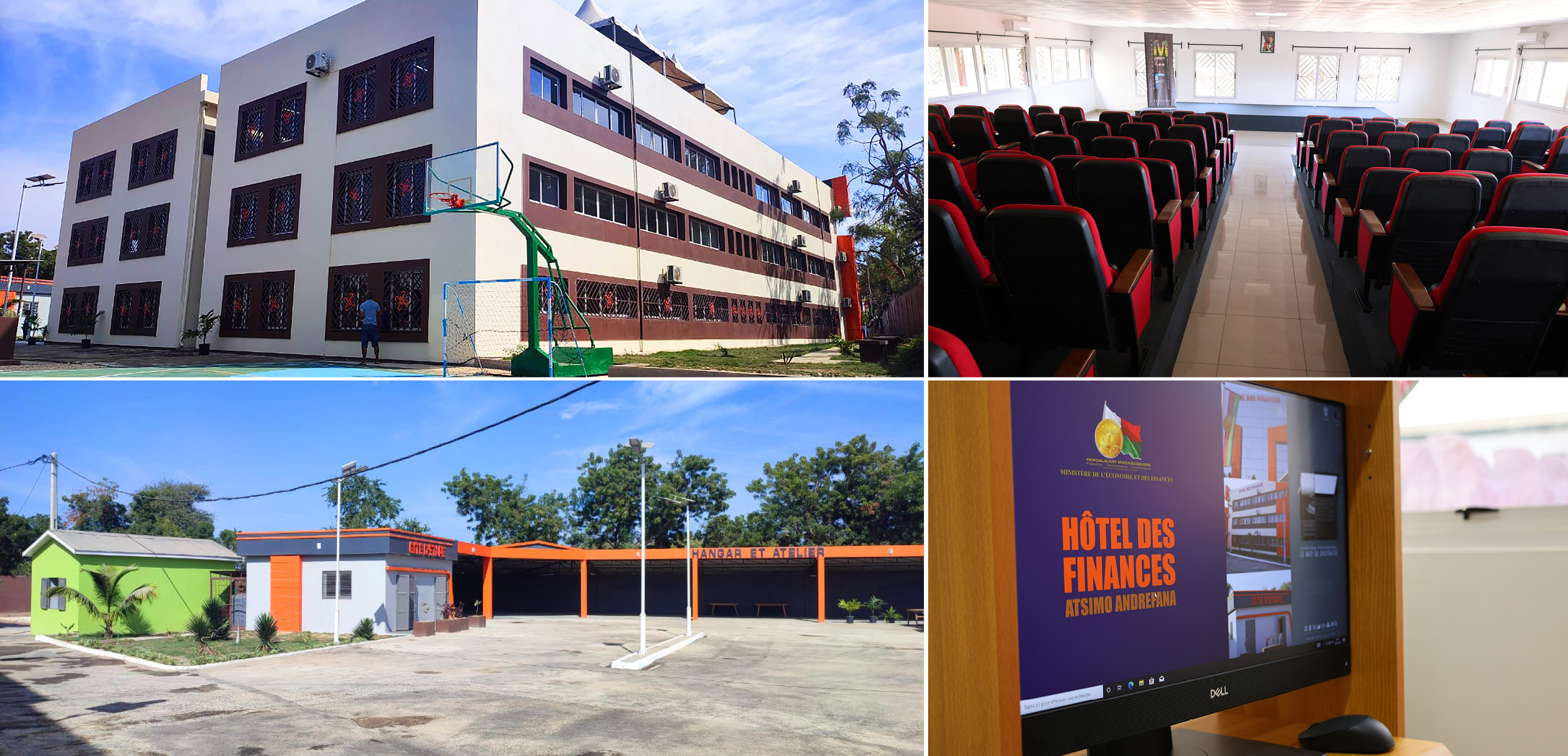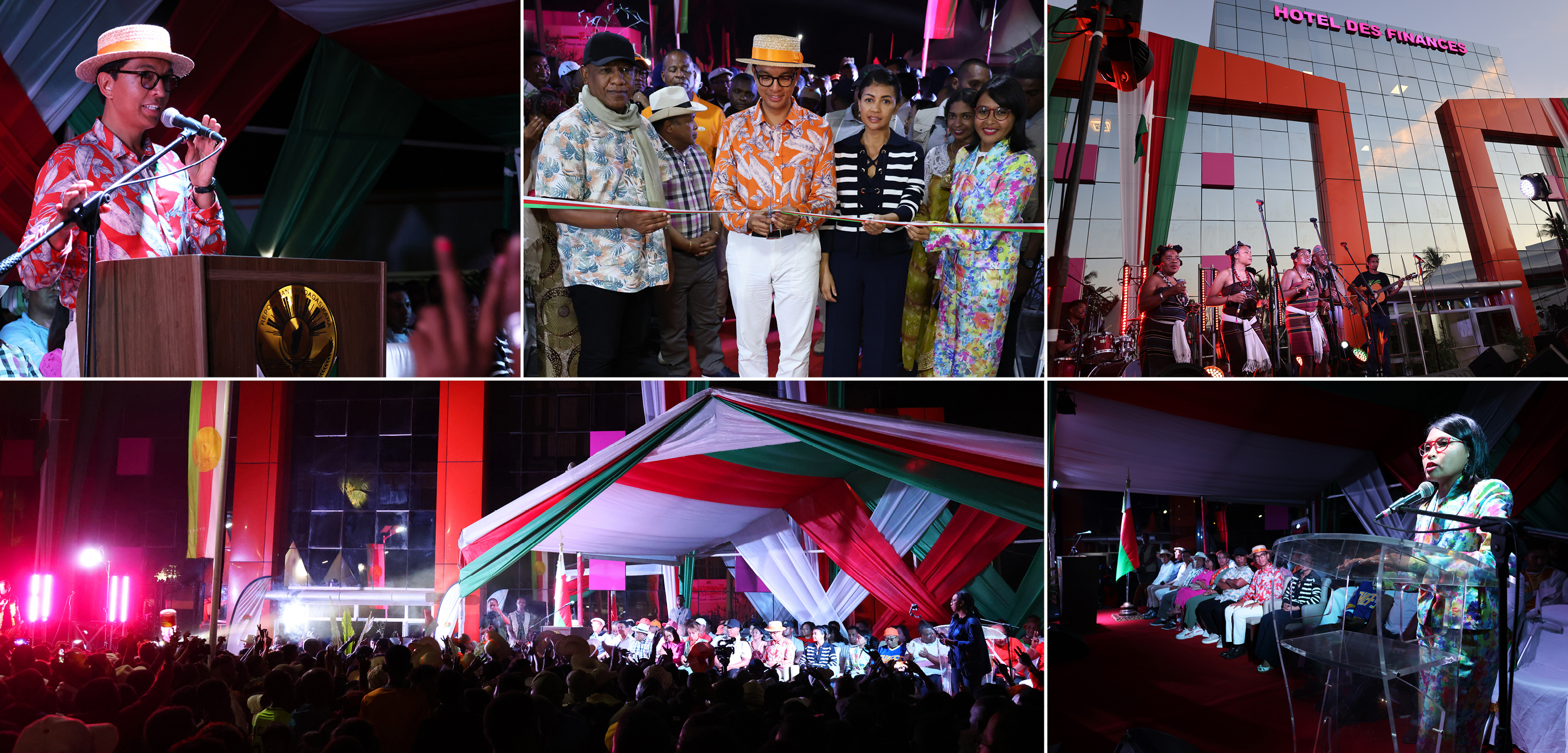 Le 4eme Hôtel des Finances a été inauguré aujourd'hui en grandes pompes dans la Cité du Soleil en présence du Président de la République, SEM Andry RAJOELINA, du Premier Ministre Christian NTSAY, et des membres du Gouvernement, dont la Ministre de l'Economie et des Finances Madame Rindra Hasimbelo RABARINIRINARISON.