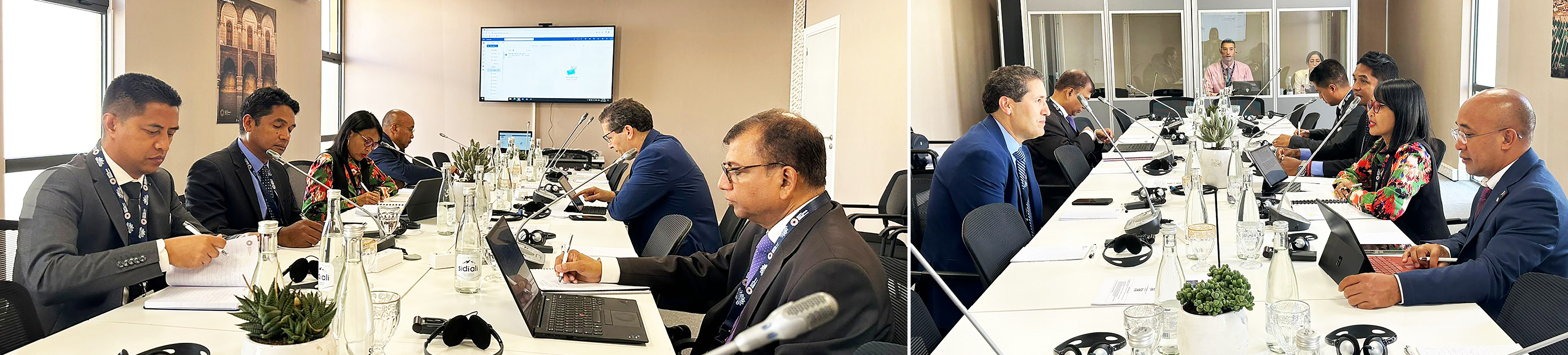 La délégation malgache, a tenu une réunion avec Monsieur ABDELHAK S. SENHADJI, Directeur Adjoint du Département des Finances Publiques du FMI et Monsieur SAILENDRA PATTANAYAK, Chef de division adjoint de la gestion des finances publiques auprès du département des affaires fiscales, aujourd'hui, durant les Assemblées du groupe de la Banque Mondiale et du Fonds Monétaire International à Marrakech. Une réunion prometteuse en termes de coopération et d'assistances techniques.