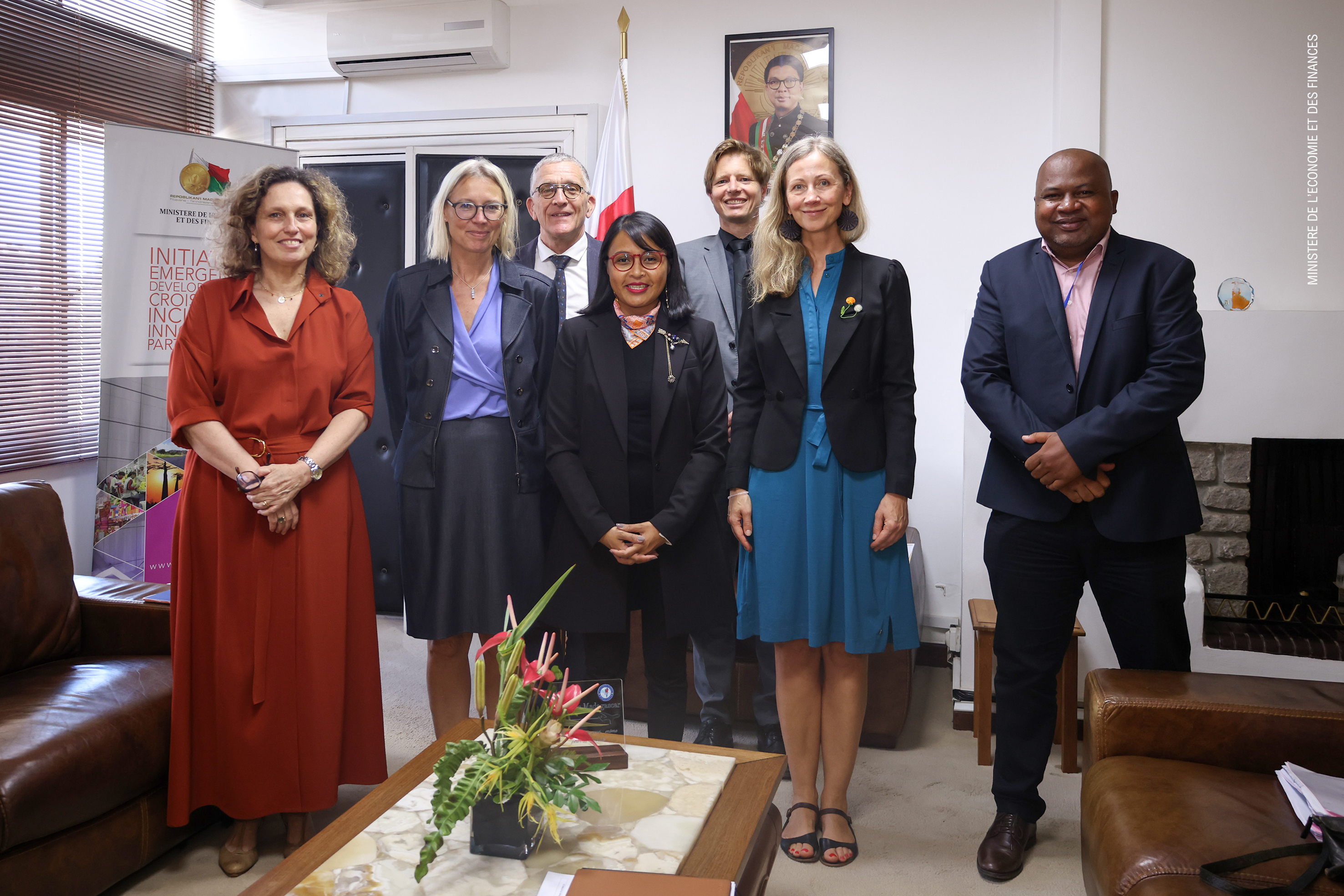 La délégation de l’Union Européenne a été composée de Madame Isabelle Delattre, Ambassadeur à Madagascar, Monsieur Arnaud Borchard, de la Délégation de l’Union Européenne à Madagascar, Madame Sylvie Millot et Madame Natalia Lazarewicz, de l’International Partnership, et Monsieur Sander Van Kooten , de la Banque Européenne d’Investissement.