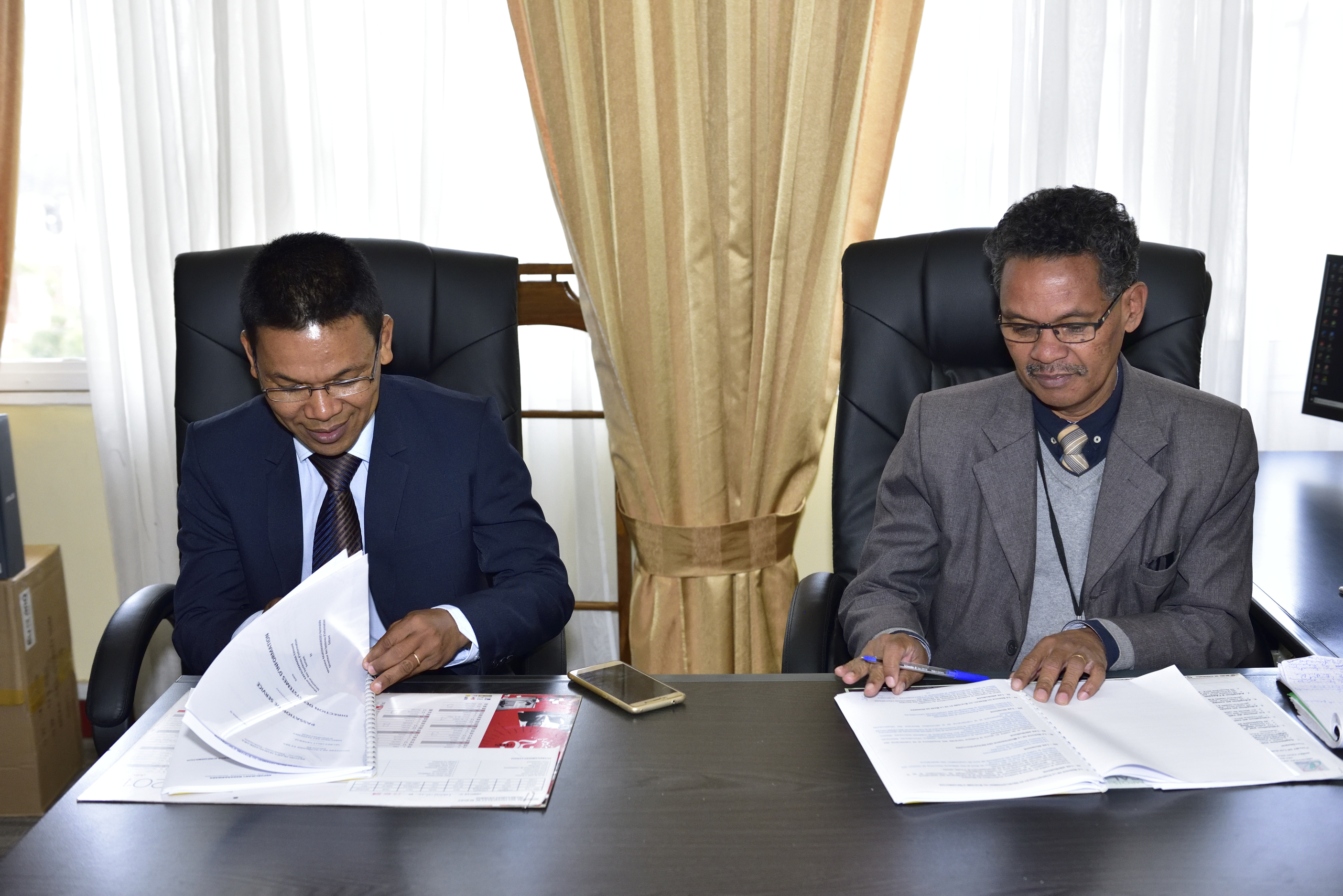 Systèmes d’Information du MEF : M. RAJAOMANDROSO Herimalala à sa tête.Antananarivo, le 13 juin 2019. Dans la nouvelle structure mise en place au sein du Ministère de l’Economie et des Finances, la Direction des Systèmes d’Information (DSI) est désormais dirigée par M. RAJAOMANDROSO Herimalala. La passation de service avec les deux (2) directeurs, DSI et DSIC sortants, à savoir, M. Edmond RAFALIMANANA (DSI), celui des Finances et du Budget, et Mme FONODIRA ISANDRATRY Fenosoa Mireille (DSIC), celle de l’Economie et du Plan, se sont tenues les 12 et 13 juin 2019. La DSI est une direction du Ministère de l’Economie et des Finances qui est rattachée directement au Secrétariat Général. Elle est chargée de la gouvernance et de la gestion du système d’information du MEF. Conformément à l’organisation générale du Ministère, ses missions consistent à: