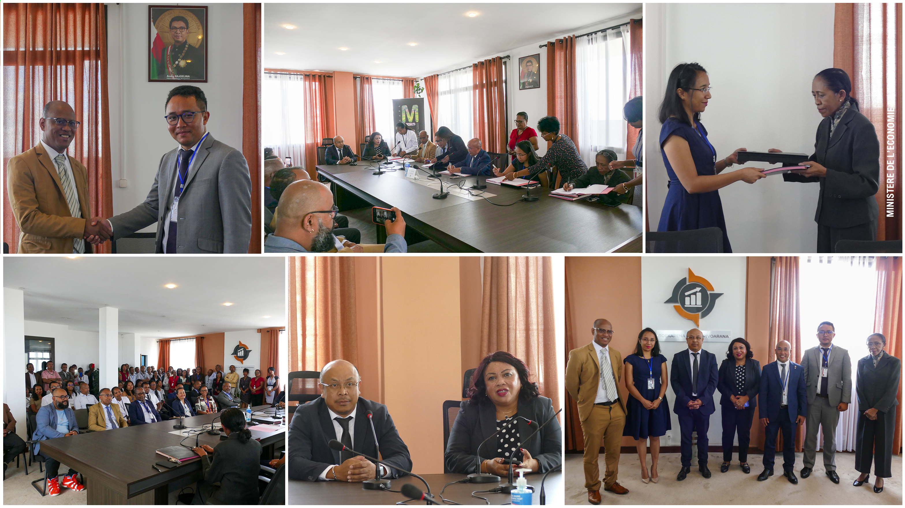 • La dernière concerne la passation entre le Directeur Général de l’Economie et du Plan Monsieur RAMIANDRISOA Tiarinisaina Olivier, le Directeur de la Planification Monsieur RAOBISON Michaël Alberteau Directeur de la Planification/DGEP - avec le nouveau Directeur des Etudes et de la Programmations Monsieur RAKOTO Andriamboavonjy Dimby.
