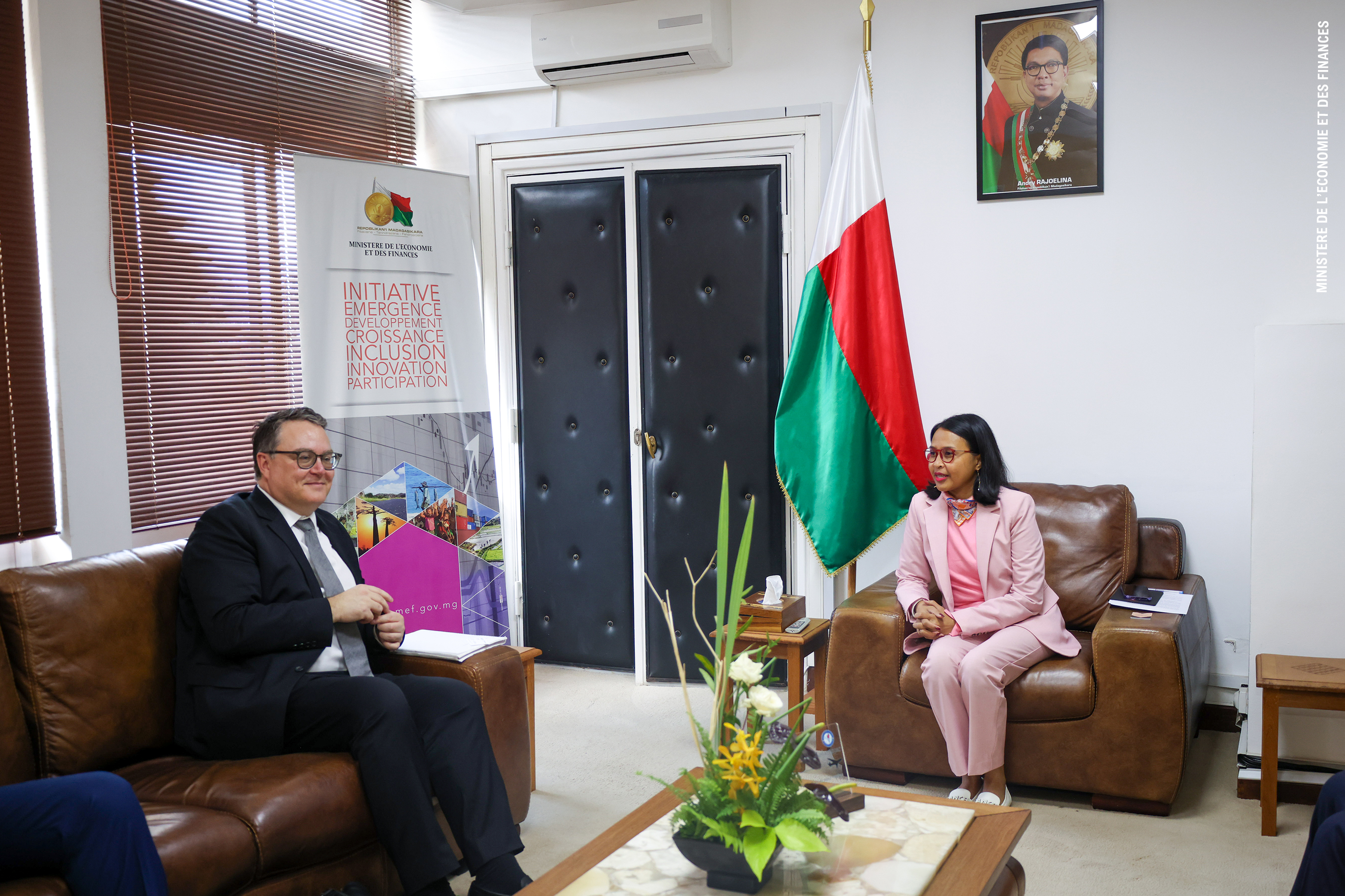 Monsieur Luc Laviolette Chef du Secrétariat du Mécanisme de Financement Mondial a rendu une visite de courtoisie à Madame Rindra Hasimbelo RABARINIRINARISON Ministre de l’Economie et des Finances, ce jour à Antaninarenina.