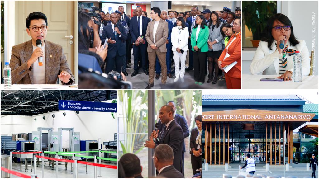 Dans le cadre de l'amélioration des services offerts aux usagers aux frontières , le Chef de l’Etat SEM Andry RAJOELINA, accompagné des Membres du Gouvernement concernés, dont Le Ministre de l’Economie et des Finances Madame Rindra Hasimbelo RABARINIRINARISON, ont effectué une descente à l'aéroport international d’Ivato.