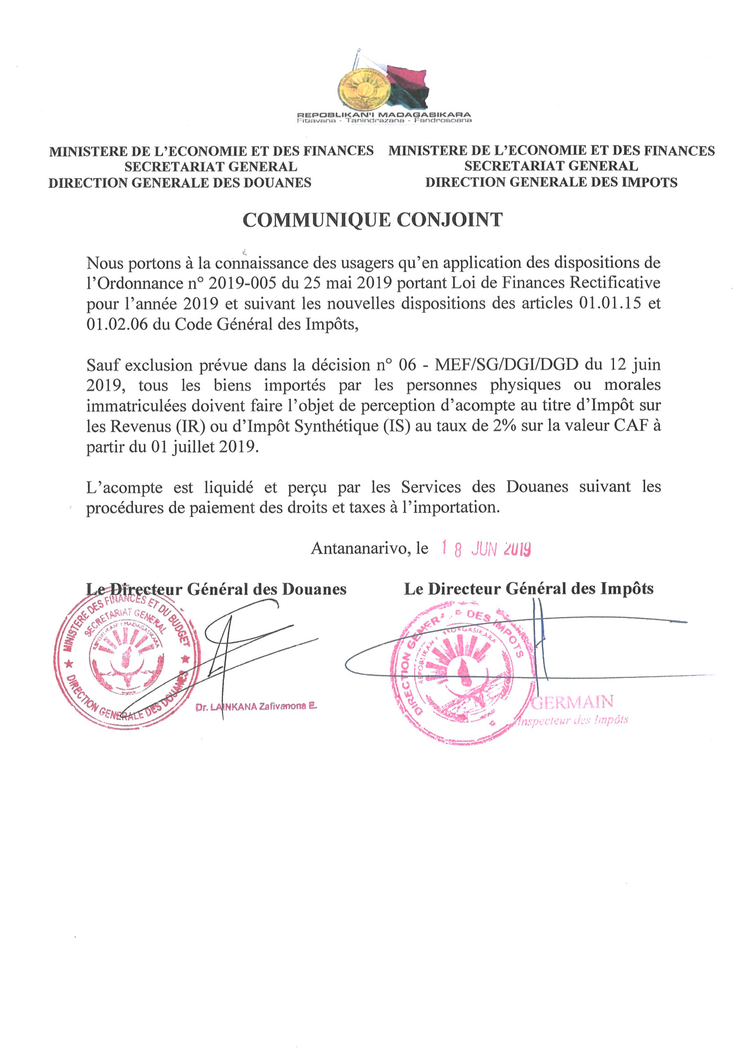 Trésor Douanes Impôts Banky Foiben'i Madagasikara
