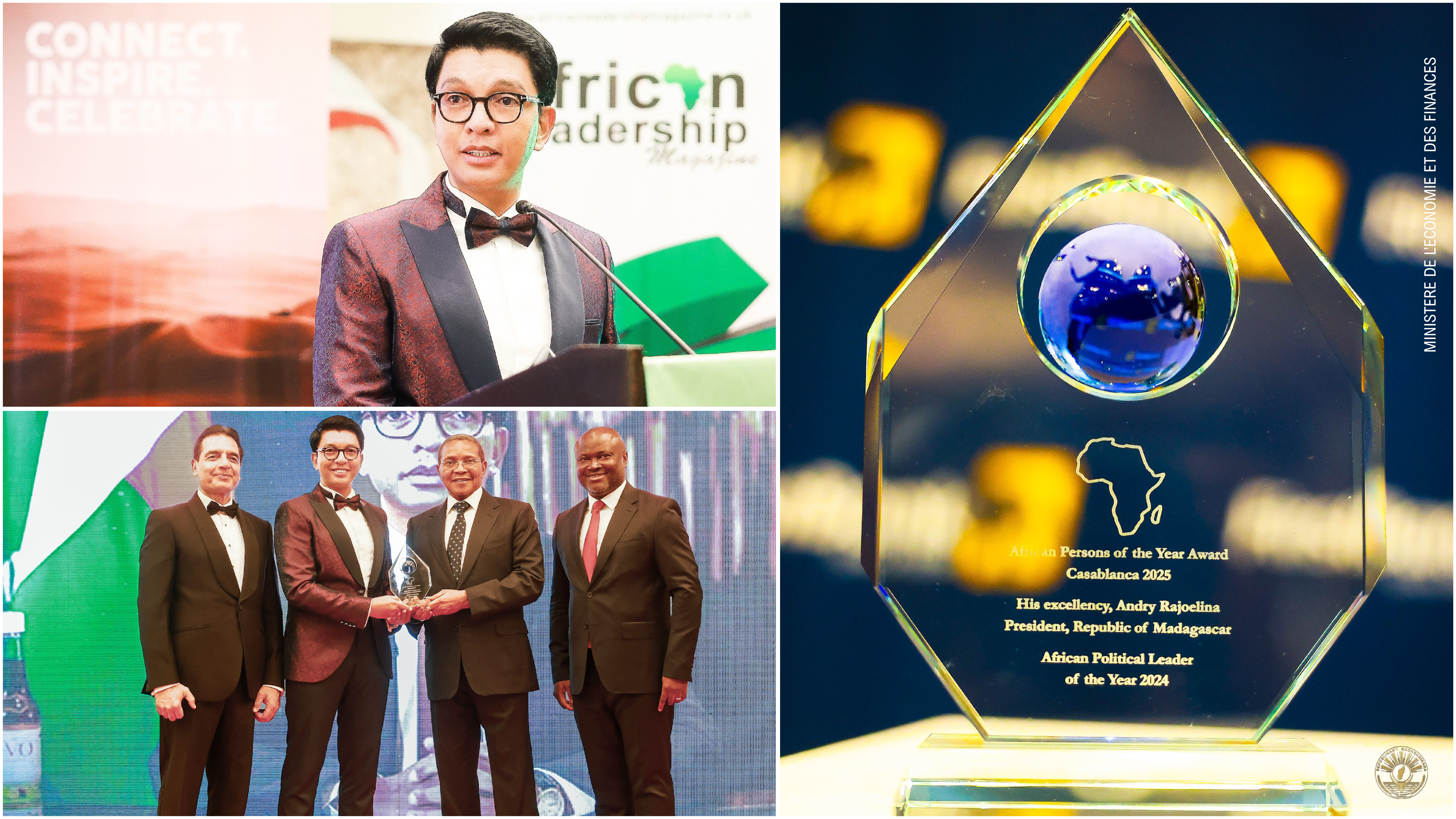 Le Président de la République de Madagascar, Son Excellence Monsieur Andry RAJOELINA, a été sacré « leader politique africain de l’année » par l’African Leadership Magazine, l’une des distinctions qui mettra l’accent sur son engagement pour le développement du pays ainsi que sur son rôle dans le renforcement de la coopération africaine.