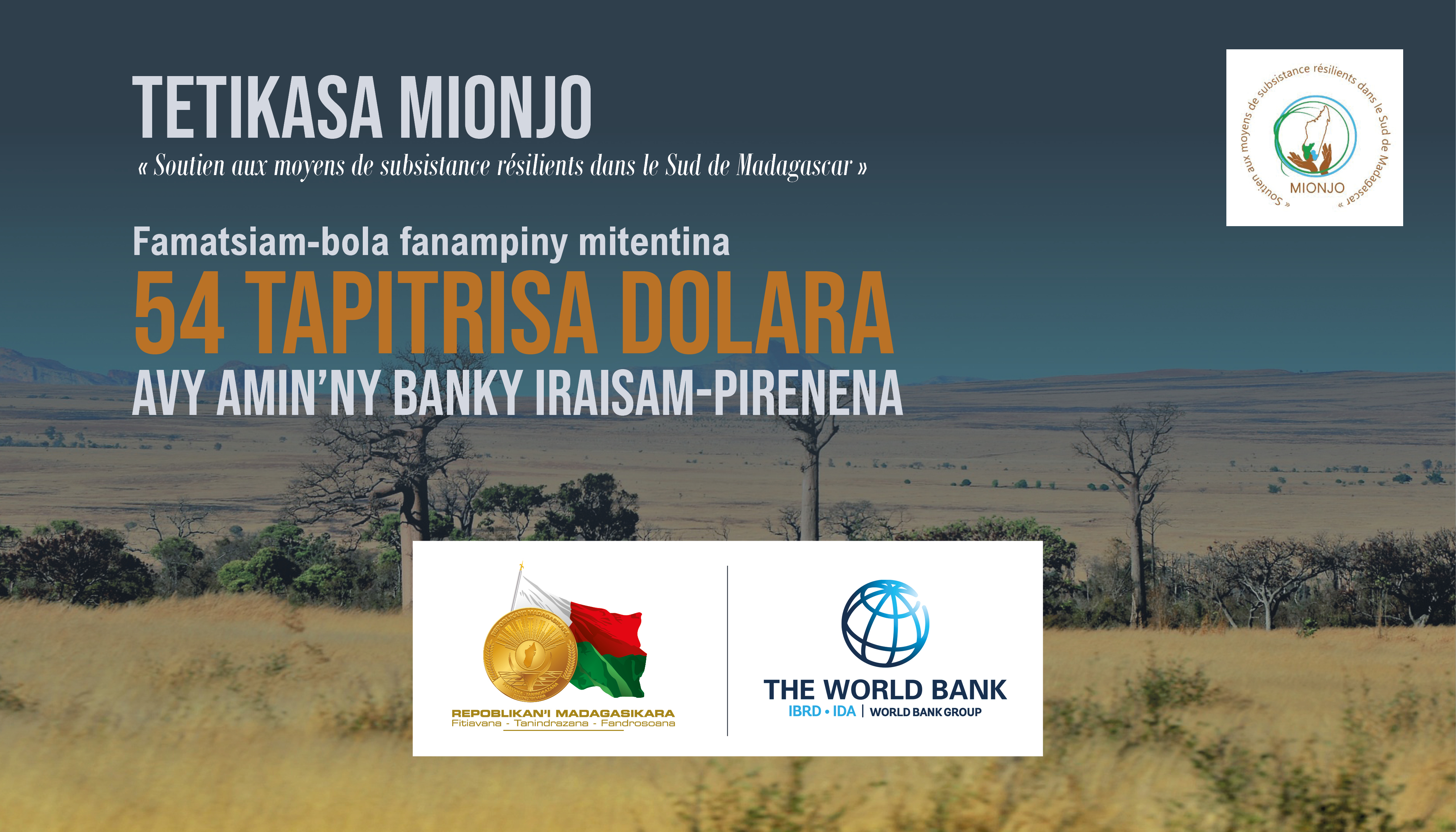 Dans les régions du Sud de Madagascar, où se conjuguent vulnérabilités extrêmes, pauvreté structurelle et chocs climatiques récurrents, le projet MIONJO se positionne comme un instrument stratégique de développement. Porté par le Gouvernement de Madagascar, avec l’appui financier de la Banque mondiale à travers l’Association internationale de développement (IDA), ce programme lancé en 2020 poursuit un objectif clair : renforcer la résilience des populations, en particulier des jeunes et des femmes, en améliorant l’accès aux services sociaux de base, en dynamisant les moyens de subsistance, et en consolidant les capacités de gouvernance locale. Grâce à un nouveau financement additionnel de 54 millions de dollars approuvé en juin 2025, MIONJO touchera 900 000 bénéficiaires supplémentaires, portant à 2,3 millions le nombre total de personnes appuyées dans les régions d’Androy, Anosy et Atsimo-Andrefana.