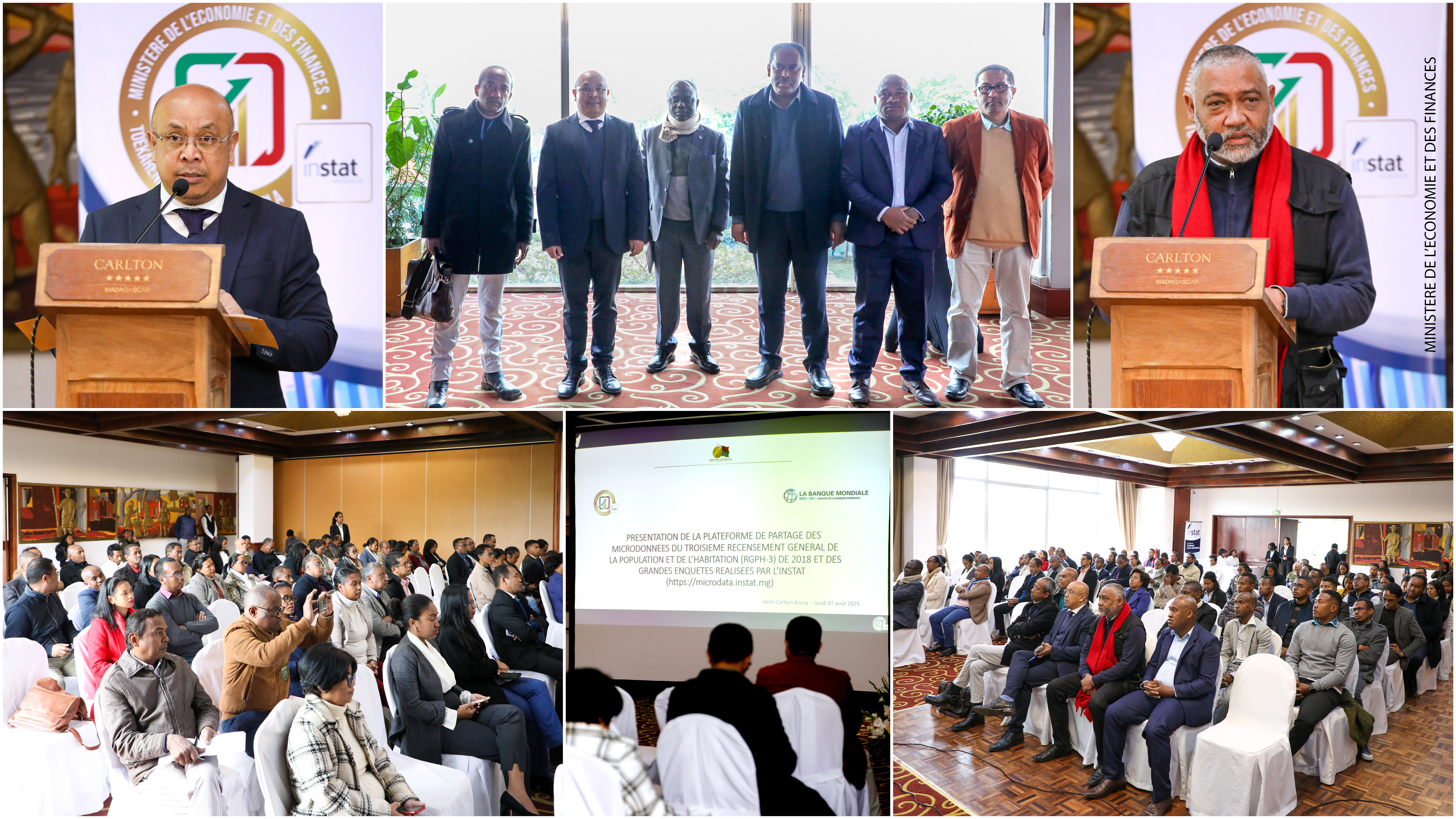 Le Ministère de l’Économie et des Finances, à travers l’INSTAT et avec l’appui technique et financier du Projet STATCAP-II de la Banque Mondiale, a procédé ce jour, à la présentation officielle de la plateforme de partage des microdonnées issues du troisième Recensement Général de la Population et de l’Habitation (RGP3H) ainsi que des principales enquêtes réalisées par l’INSTAT.