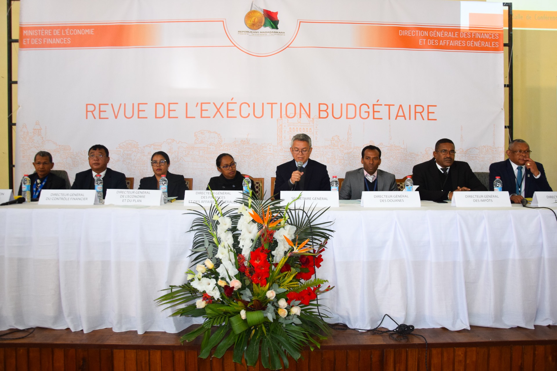 Antananarivo, le 25 juillet 2019. La revue de l’exécution budgétaire du deuxième trimestre 2019 s’est tenue ce jour à Anosy. C’était l’occasion pour les responsables des Directions Générales au sein du Ministère de l’Economie et des Finances (MEF) notamment la Direction Générale des Impôts (DGI), la Direction Générale du Trésor (DGT), la Direction Générale des Douanes (DGD), la Direction Générale de l’Economie et du Plan (DGEP), la Direction Générale des Finances et des Affaires Générales (DGFAG), la Direction Générale du Contrôle Financier (DGCF) et l’Autorité de Régulation des Marchés Publics (ARMP) de faire le point sur la situation économique et sur les réalisations en matière de dépenses et de recettes durant le deuxième trimestre de cette année. Présidant l’événement, Bien Aimé Raoelijaona, Secrétaire Général du MEF, a insisté sur le renforcement de la culture de résultats, la transparence et la redevabilité de l’Administration publique. Les indicateurs économiques annoncent de bonnes performances par rapport au premier semestre 2018. Le Directeur Général de l’Economie et du Plan parle entre autres d’une hausse des activités dans le domaine des travaux publics, une amélioration de la production énergétique et des arrivées touristiques. En termes de recettes, les prévisions fiscales pour les six premiers mois ont été dépassées, avec 1 469 milliards d’Ariary récoltés sur les 1 455 milliards d’Ariary prévus par la Loi de Finances Rectificative (LFR). Les recettes douanières ont également dépassé les objectifs fixés, avec un taux de réalisation de 102%, soit 1 335 milliards d’Ariary contre 1 309 milliards d’Ariary prévus. L’application des mesures d’orientations fiscales et douanières telles que l’amélioration de la gestion de la TVA, l’optimisation du contrôle fiscal, la mise en œuvre de la stratégie de contrôle des zones franches a permis de surpasser les objectifs. Quant aux dépenses, une amélioration du taux d’engagement pour les cinq derniers mois de l’année est de mise. Les taux d’engagement sont respectivement de 22,44% pour le budget général, 15,40% pour le budget annexe et 30,85% pour le compte particulier du Trésor. En ce qui concerne la performance des secteurs, l’administratif vient en tête avec 342 indicateurs atteints contre 48 pour le secteur productif, 40 pour les infrastructures et 23 pour le volet social. Le taux de réalisation des indicateurs de performance dans les quatre secteurs est de 38%. 1 468 marchés publics sont enregistrés sur le Système Informatisé de Gestion des Marchés Publics (SIGMP) durant le premier semestre, soit seulement 10% du nombre des marchés attribués tous les ans. 62% des marchés concernent les fournitures, contre 17% pour les travaux. La mise en application effective du nouveau guide de l’exécution budgétaire a permis l’amélioration de la qualité du travail des acteurs budgétaires et par ricochet, de l’exécution du budget et à cela s’ajoute l’amélioration de la gestion des deniers publics. En effet, ce guide prévoit le raccourcissement de délais dans l’exécution du budget, ayant pour effet la fluidité du processus. Par ailleurs, les Etablissements Publics Nationaux (EPN) sont appelés à clôturer leurs comptes administratifs 2018 pour pouvoir bénéficier de leurs subventions au titre de l’année 2019. A noter que seulement 08 EPN sur 122 ont clôturé leur compte administratif 2018 et 89 ont remis leur budget 2019.