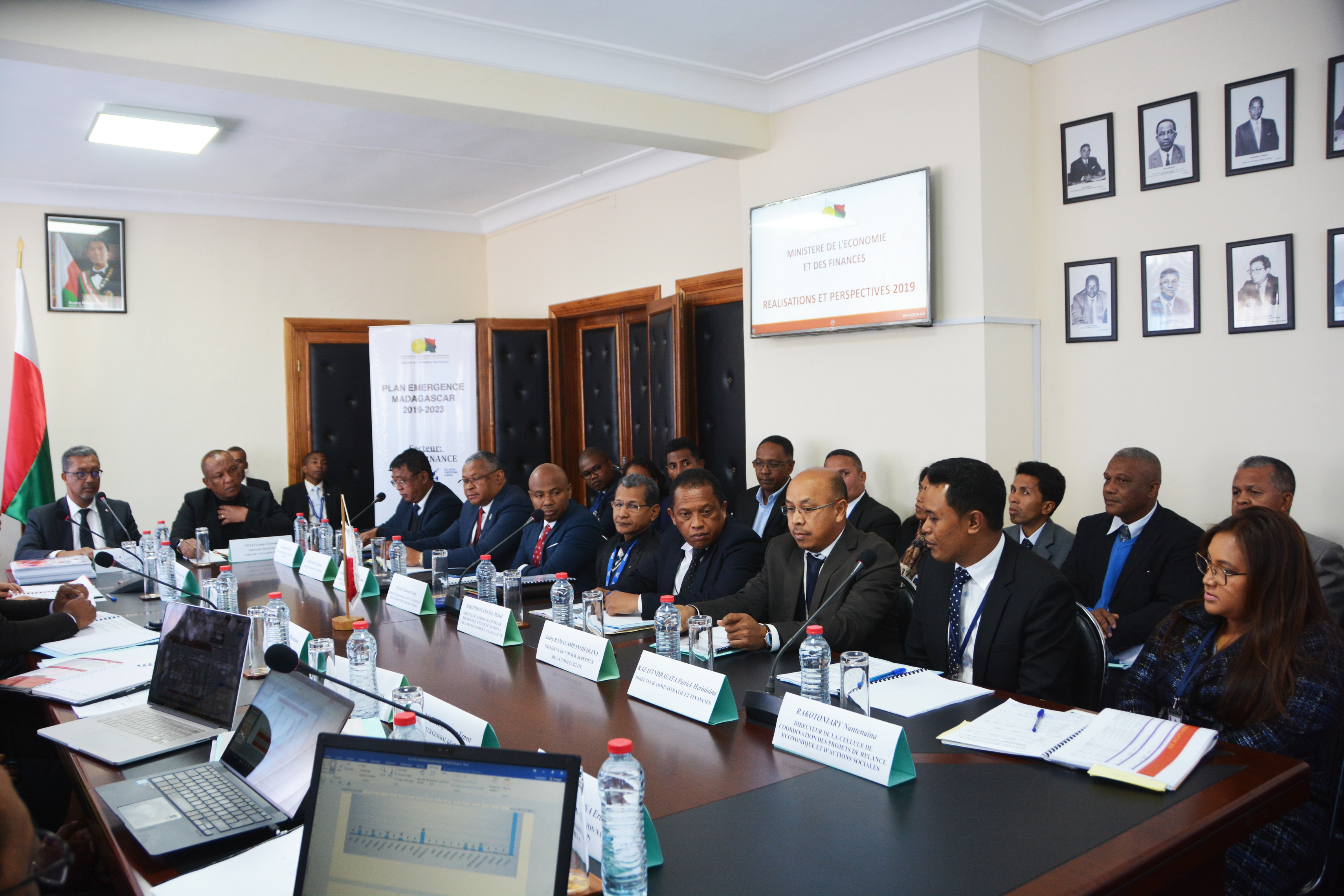Antananarivo, le 08 août 2019. Une séance de travail présidée par le Premier Ministre, Chef du Gouvernement, s’est tenue ce jour au Ministère de l’Economie et des Finances (MEF). L’objectif étant de partager et de discuter avec les responsables au sein du MEF de la nouvelle vision sur trois domaines de gestion : administration publique, finances publiques et économique. Zéro tolérance face à la corruption, réformes dans les finances publiques, accélération des procédures administratives, telles ont été les grandes lignes de la nouvelle méthodologie de travail partagée par le Premier Ministre, NTSAY Christian, lors de cette réunion. Le Ministère de l’Economie et des Finances (MEF) s’est engagé à mettre en pratique ses directives. D’ailleurs, les réformes au niveau des procédures des marchés publics ont déjà été entamées, et un guichet unique a été mis en place à Antsahavola, afin d’accélérer les procédures de passation de marchés. Aussi, des efforts ont également été effectués en termes d’élargissement de l’assiette fiscale actuellement grâce aux réformes initiées au niveau de la Direction Générale des Douanes et celle des Impôts. Une optimisation du processus de contrôle dans la chaîne des dépenses publiques est également en cours au niveau du MEF, et cela en vue d’alléger la lourdeur des procédures administratives. La séance de travail de ce jour entre dans le cadre de l’initiative du Premier Ministre, qui a commencé auprès du Ministère de l’Education Nationale et de l’Enseignement Technique et Professionnelle, et se poursuivra dans les autres départements ministériels.