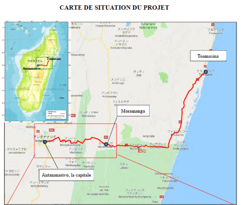 Le Mardi 03 Septembre 2019, l’Accord de Don pour le « Projet d'Amélioration du Pont de Mangoro et du Pont d'Antsapazana sur la Route Nationale N°2 (Antananarivo-Toamasina) » a été signé entre le Ministre de l’Economie et des Finances, Monsieur RANDRIAMANDRATO Richard, et le Représentant Résident de la JICA, Monsieur UMEMOTO Shinji. Le montant du don s’élève à deux milliards six cent millions de Yen japonais, soit l’équivalent d’environ quatre-vingt-dix milliards d’Ariary. Cette signature a été précédée de la signature de l’Echange de Note dudit projet, le 30 août 2019 à Yokohama Japon, entre les Représentants du gouvernement du Japon et celui de Madagascar, en marge de la visite de Son Excellence Monsieur Andry RAJOELINA, Président de la République de Madagascar venu assister à la TICAD7 au Japon. A l’état actuel, le Pont de Mangoro et le Pont d’Antsapazana sur la RN2 (voir la carte : page 2) ne permettent que le passage à une seule voie, et les véhicules ne peuvent pas se croiser, ce qui cause un goulot d’étranglement routier. L’objectif de ce projet est d’élargir chaque pont à deux voies, dotées par chaque côté de trottoirs pour les piétons, dans le but de résoudre le problème de la congestion du trafic et d’améliorer la sécurité sur les ponts. Avec la réalisation de ce projet, les deux ponts qui font actuellement 4.5m de largeur seront transformés en ponts de deux voies avec 7m de chaussée, et 1.5m de trottoirs de chaque côté (voir le dessin prévisionnel : page 3). Selon le planning actuel, le Pont d’Antsapazana s’achèvera au mois de Mars 2022, et le Pont de Mangoro au mois de Novembre 2022. Ce n’est pas la première fois que le Japon construit des ponts à Madagascar. Depuis 1996, six (6) ponts ont été déjà construits sur la RN2 et la RN7. Bien que 20 ans aient passé depuis l’installation pour certains, ces infrastructures restent toujours en bon état, ce qui démontre un gage de qualité de la technologie japonaise. Evidemment, ce projet est fortement en lien avec le « Projet d’extension du Port de Toamasina » en cours de réalisation avec le prêt concessionnel du Gouvernement du Japon. Ce projet d’envergure de 411 millions de dollars américains vise à quadrupler le volume du fret traité au niveau du grand port d’ici 2035. Parmi les marchandises déchargées à ce port, une grande majorité est acheminée par la RN2 vers la capitale. Logiquement, l’accroissement de la capacité du port doit être accompagné par l’amélioration de la capacité de transport de la RN2. C’est dans ce contexte que le « Projet d'élaboration du schéma directeur de développement de l'axe économique Tananarive - Toamasina (TaToM) » a été réalisé (2016-2019). Cette coopération technique sous forme d’étude de développement, mise en œuvre par l'Agence Japonaise de Coopération Internationale (JICA), a conclu que l’amélioration de la capacité de transport de la RN2 est indispensable à la croissance de la zone économique stratégique qui relie les deux villes.
