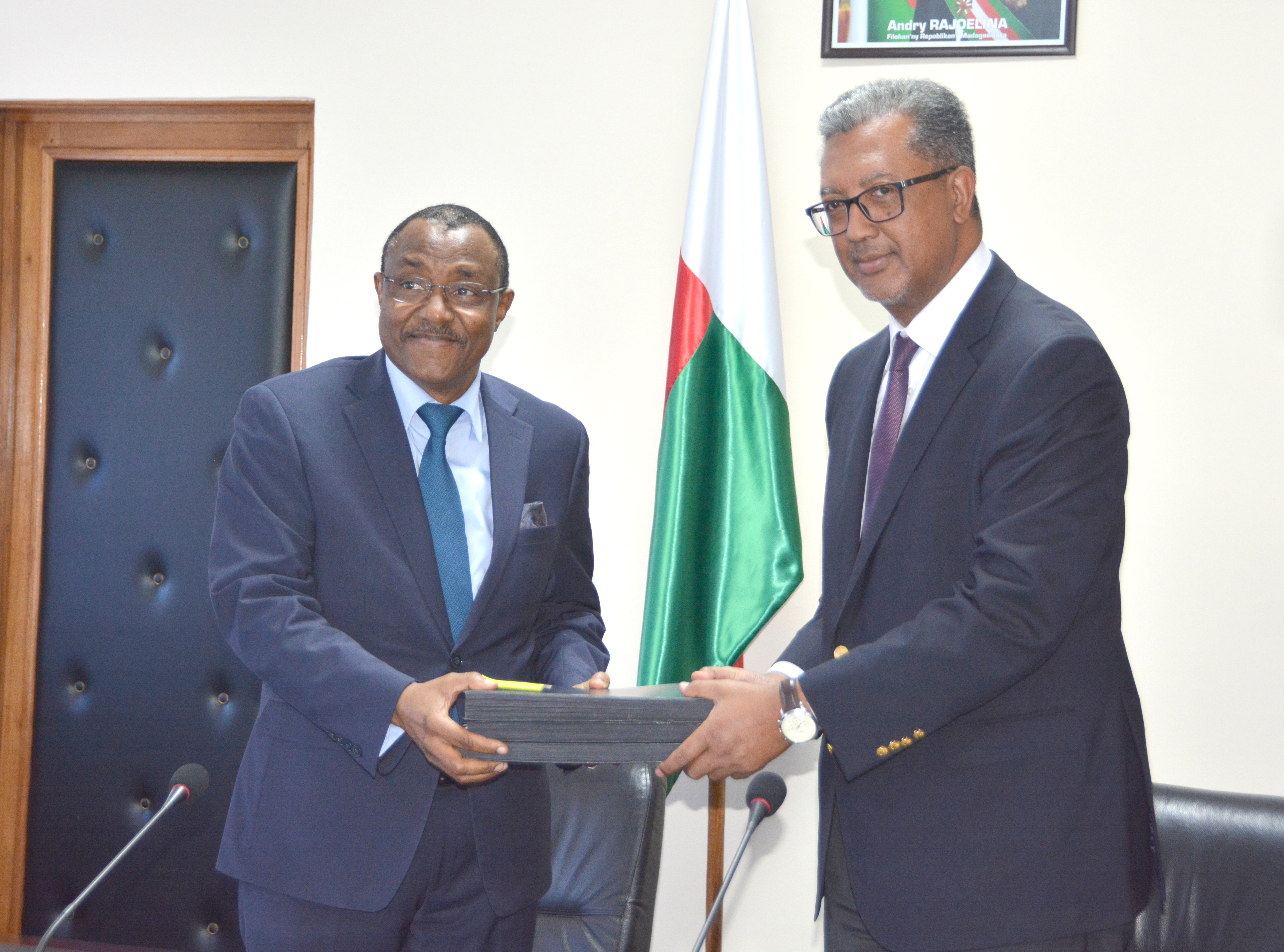 Antananarivo, le 10 octobre 2019. Le Ministère de l’Economie et des Finances (MEF) et l’ARC Insurance Company Limited ont procédé à la signature d’un contrat portant sur une police d’assurance sécheresse, afin de marquer l’adhésion de Madagascar à la mutuelle d'assurance panafricaine ARC, dans les locaux du MEF à Antaninarenina, le 10 octobre 2019. Cette signature entre dans le cadre du lancement du programme ADRIFI quipermettra aux pays, membres régionaux de la Banque Africaine de Développement, de prévenir et de mieux réagir aux catastrophes, d’orienter les mesures de gestion des risques prise à l’échelle nationale et de renforcer leurs capacités en matière d’évaluation des risques aux sécheresses, de développement de système d’alerte précoce et des plans de contingence. Le programme facilitera également l’obtention d’appui financier en faveur de Madagascar, dans le cadre de sa participation active, depuis 2015, au mécanisme de transfert des risques souverains de l’Africa Risk Capacity (ARC). L’ARC, African Risk Capacity, est une mutuelle d’assurance au niveau de l’Union Africaine. Elle fournit aux pays, membres participants, des fonds de secours en cas de catastrophes naturelles, et les appuie à développer un modèle de couverture paramétrique sur la sécheresse ainsi qu’à élaborer un plan de contingence. C’est dans ce contexte qu’un mécanisme de protection financière a été mise en place pour ces pays membres afin qu’ils puissent se relever après les passages des catastrophes. Le paiement des primes d’assurance est la condition requise pour bénéficier de l’appui apporté par l’ARC. Par ailleurs, afin d’apporter son aide à ces pays membres pour le financement de ces primes, la BAD/FAD a élaboré le programme ADRIFI, et prend ainsi en charge les primes d’assurances durant les 5 premières années de leur adhésion. Pour sa part, ADRIFI Madagascar a bénéficié d’un financement de 1.5 Millions USD.
