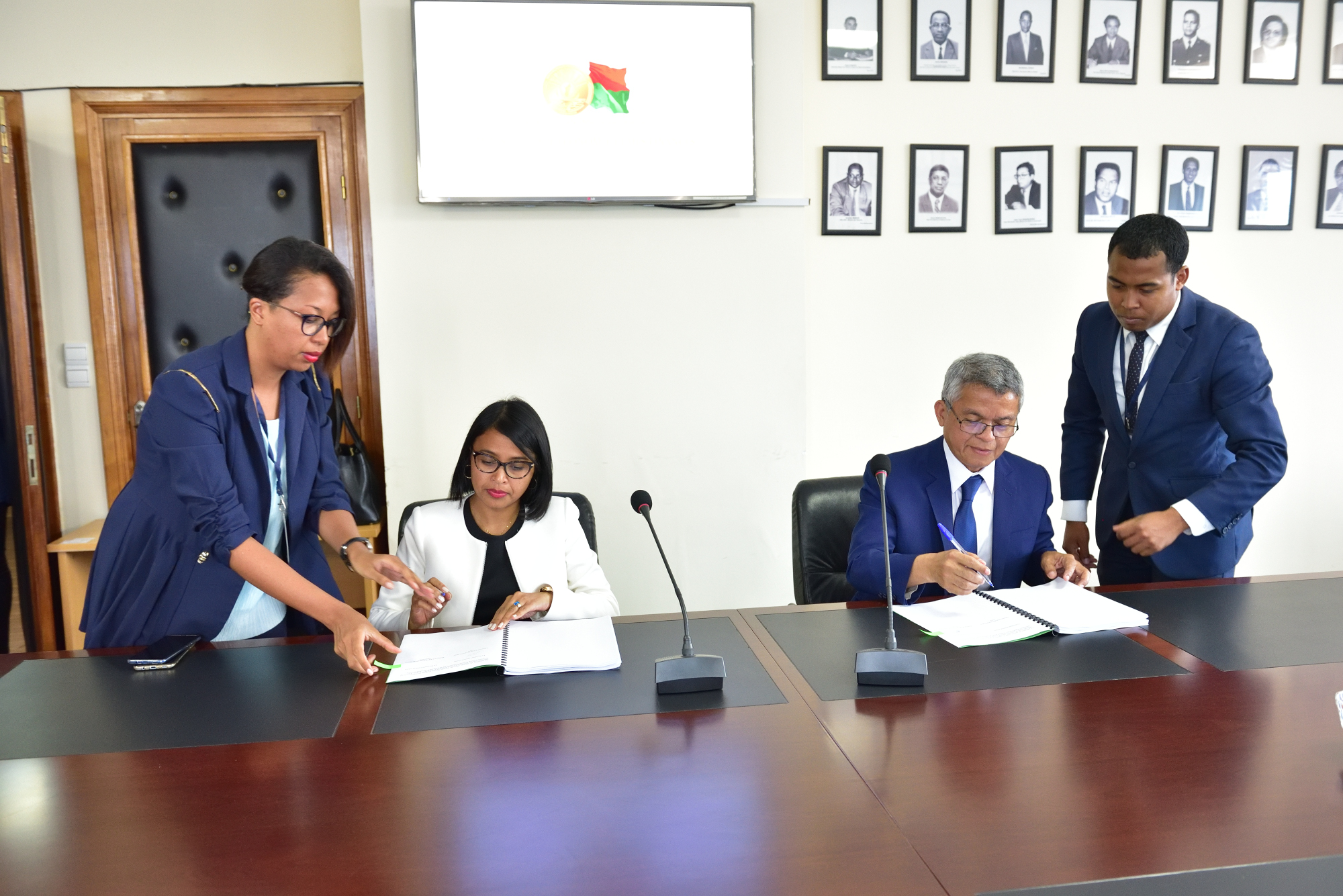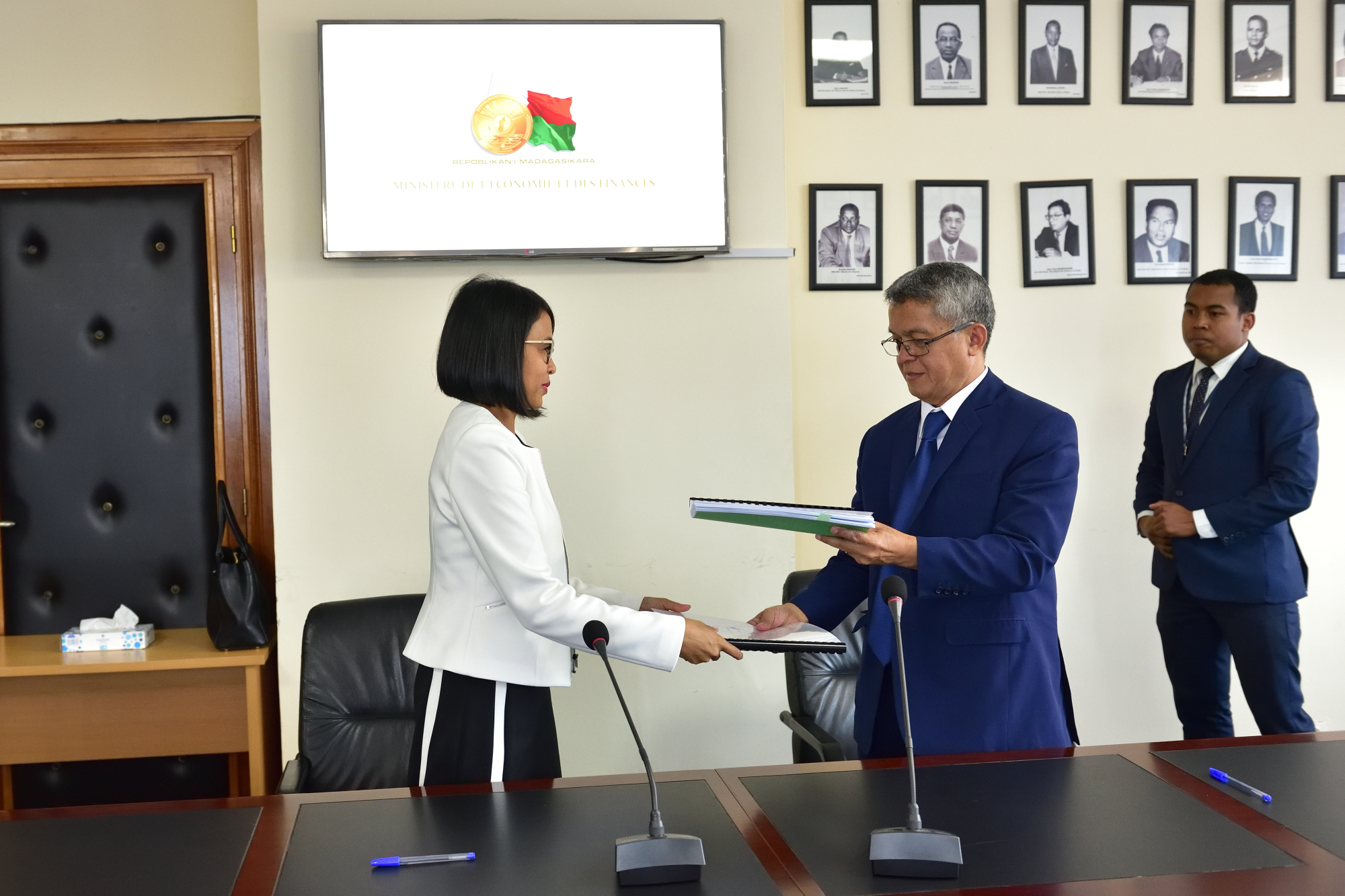 Suite aux récentes nominations en Conseil des Ministres, Madame RABARINIRINARISON Rindra Hasimbelo devient Secrétaire Général du Ministère de l’Economie et des Finances et succède ainsi à Monsieur RAOLIJAONA Bien Aimé, ayant occupé ce poste de Mars 2019 à ce jour. La passation de service entre les 2 Secrétaires généraux, entrant et sortant, s’est tenue ce jour dens les locaux du Ministère de l’Economie et des Finances à Antaninarenina. En marge de la cérémonie, Monsieur RAOELIJAONA Bien Aimé a tenu à remercier ses collaborateurs pour le travail effectué lors de son mandat. Madame RABARINIRINARISON Rindra Hasimbelo, quant à elle, a mobilisé ses collaborateurs pour une continuité des tâches qui lui sont attribuées pour l’atteinte des objectifs assignés au Ministère de l’Economie et des Finances. Avant cette nomination, le nouveau Secrétaire Général était Présidente de la Commission Nationale des Marchés. |