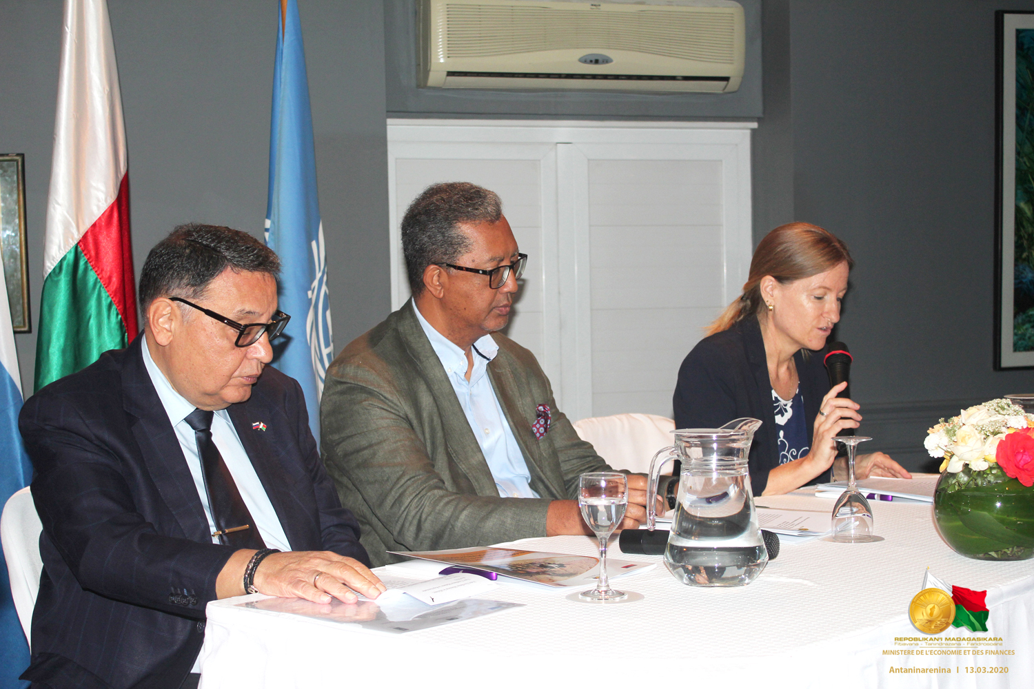 Un nouveau projet en faveur du Développement des facteurs vitaux de production, eau et énergie, dans le Grand Sud de Madagascar lancé Antananarivo, 13 mars 2020 - Le Ministre de l’Économie et des Finances (MEF), M. Richard Randriamandrato, le Représentant Résident du Programme des Nations Unies pour le Développement (PNUD), Mme Marie Dimond et l’Ambassadeur de la Fédération de la Russie à Madagascar, SEM Stanislav Akhmedov, ont lancé un nouveau projet de Développement des facteurs vitaux de production, eau et énergie dans le Grand Sud de Madagascar. D’un montant total de 4 millions USD, ce projet est co-financé par le PNUD et la Fédération de Russie à hauteur de 2 millions USD chacun et mis en œuvre par le Ministère de l’Économie et des Finances pour une période de deux ans, de 2020 à 2021. Madagascar a en effet bénéficié de l’appui du Trust Fund for Development (TFD), une collaboration entre la Fédération de la Russie et le PNUD, pour la mise en œuvre de ce projet qui va bénéficier aux Régions Androy, Anosy et Atsimo Andrefana. L’objectif est d’améliorer dans ces trois régions l’accès aux facteurs de production eau et énergie, de soutenir une production agricole durable et promouvoir la mise en place de zone de transformation au niveau de six communautés rurales des régions concernées. La hausse de la productivité économique et une augmentation des revenus contribueront à améliorer les conditions de vie des ménages locaux. D’ici 2021, le Ministère de l’Économie et des Finances avec l’appui du PNUD œuvrera pour la mise en place de 4 mini centrales solaires de capacité 100 KWc chacune et fournira 2000 kits photovoltaïques dans les localités les plus reculées, construira 10 infrastructures d’adduction d’eau potable (puits, pompe, bornes fontaines, impluvium) et réhabilitera 10 infrastructures hydro-agricoles. En matière de promotion d’activités économiques, 3600 femmes et jeunes seront soutenus pour le développement d’activités génératrices de revenus et les capacités de 1000 producteurs seront renforcées en techniques moderne de production, de transformation et de commercialisation et appuyés pour l’acquisition de matériels et d’intrants. Par ailleurs, deux (02) zones de transformation économiques intégrées aux centrales solaires seront mises en place pour appuyer les petites et moyennes entreprises dans leurs activités de transformation, de conservation ou de commercialisation de produits agricoles, pêche ou élevage. Ce projet implique différents partenaires dans sa mise en œuvre dont le Ministère de l’Énergie et des Hydrocarbures, le Ministère de l’Industrie, du Commerce et de l’Artisanat, le Ministère de l’Eau, de l’Assainissement et de l’Hygiène, le Ministère de l’Agriculture, de l’Élevage et de la Pêche, les ONG locales ; le secteur privé ; les autorités locales ; les établissements publics comme ADER, ORE, etc. Pour plus d’information : Pour le MEF, Cellule Communication DGEP : Pour le PNUD :