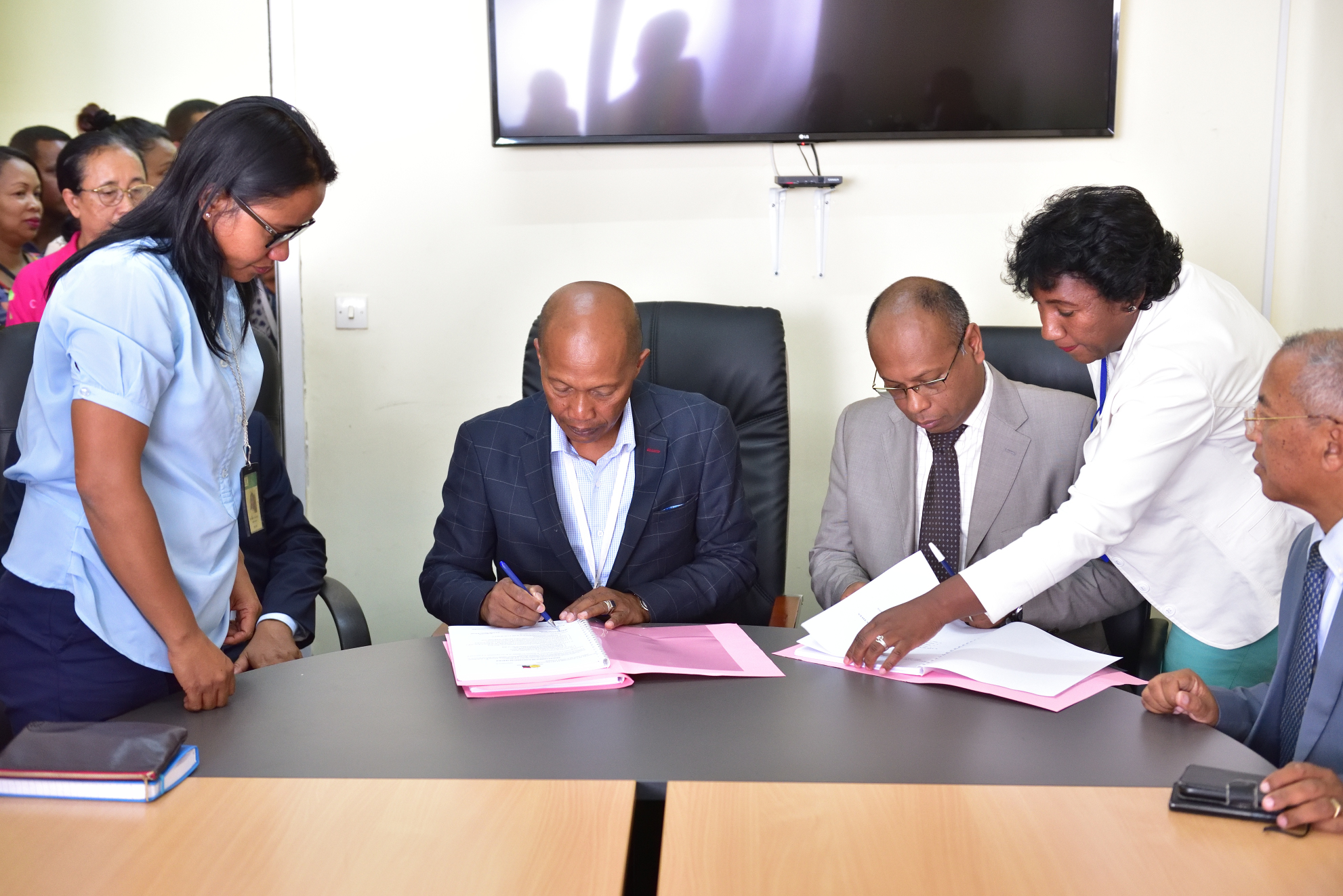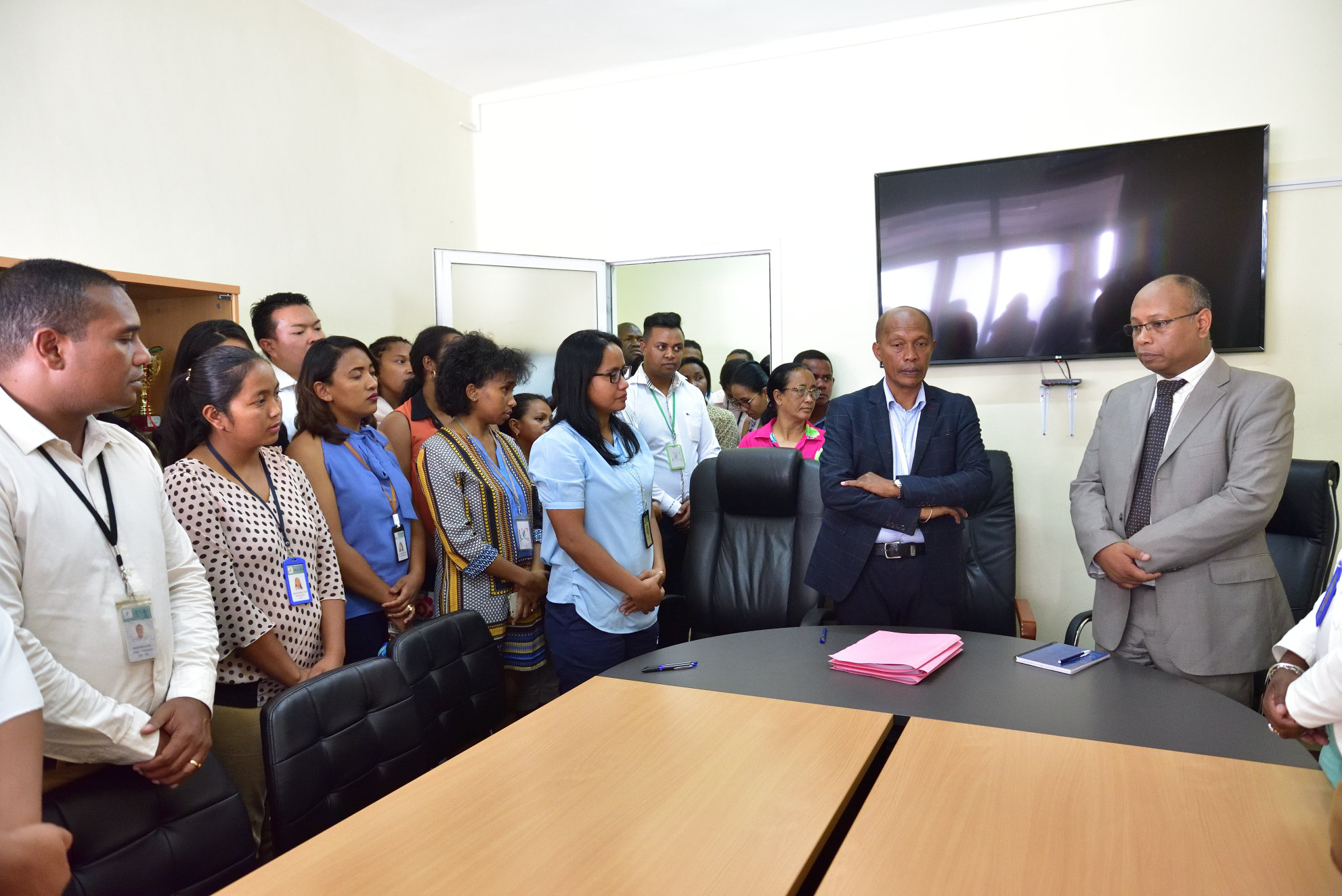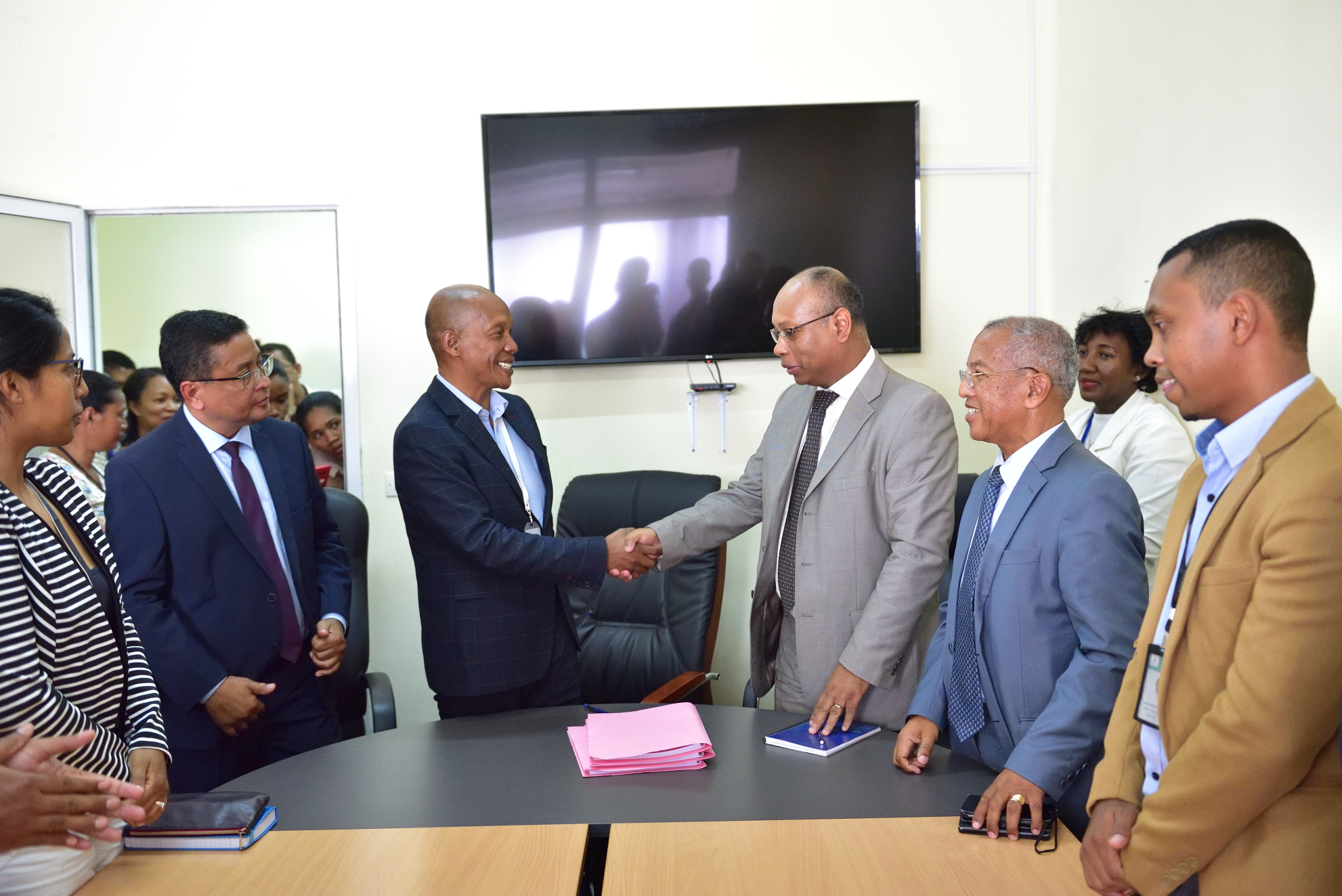 Suite à sa récente nomination au niveau du Conseil des Ministres, en date du 11 Mars 2020, la cérémonie de passation de service entre Monsieur RABEHARISOA Rija, Directeur de l’Audit Interne entrant, et son prédécesseur Monsieur RAVELOSON Herinirina, s’est tenue le jeudi 12 mars 2020 au sein du bâtiment du Ministère de l’Economie et des Finances à Antsahavola. Elle s’est déroulée dans la salle de réunion de ladite Direction, en présence de monsieur le Directeur de Cabinet p.i, Monsieur RAJOELISON José Richard, et de 2 Conseillers Techniques du Cabinet du MEF à savoir Monsieur ANDRIMAMPANDRY Mamy et Madame RANAIVOSON Rojoniaina, ainsi que tout le personnel de la DAI. Monsieur le Directeur de Cabinet a tenu à remercier Monsieur RAVELOSON Herinirina pour ses bons et loyaux services qu’il a consacré à l’Administration, notamment à la Direction de l’Audit Interne ; il a ensuite présenté et félicité le nouveau Directeur, en mettant en exergue son parcours professionnel, en rapport particulier avec le milieu de l’Audit. En effet, le poste de Directeur auquel Monsieur Rija RABEHARISOA vient d’être nommé lui est familier puisqu’auparavant, il a déjà eu l’occasion de travailler avec le MEF, lors de la réforme des Finances publiques au sein du Comité de Réflexion et de Réforme des Organes de Contrôle (CRROC 2001-2006), et dans le cadre du projet « Fanjakana ho an’ny daholo-be » avec l’Union Européenne en 2015. Enfin, le nouveau directeur s’est exprimé en remerciant en premier lieu le Gouvernement, les hauts responsables de lui avoir accordé leur confiance et il a également assuré les autorités présentes de son dévouement envers son pays à travers le slogan : « asam-panjakana manompo firenena ». En ce sens, il compte sur la collaboration de tous ses collègues de la DAI dans l’accomplissement des travaux déjà entamés ainsi que pour l’atteinte des nouveaux objectifs à fixer, en l’occurrence les réformes qu’il doit apporter selon la limite de ses compétences au nom de la fonction Audit Interne au niveau du MEF, pour servir les visions de l’Administration Publique, notamment dans le cadre de l’IEM. Cellule Communication DAI