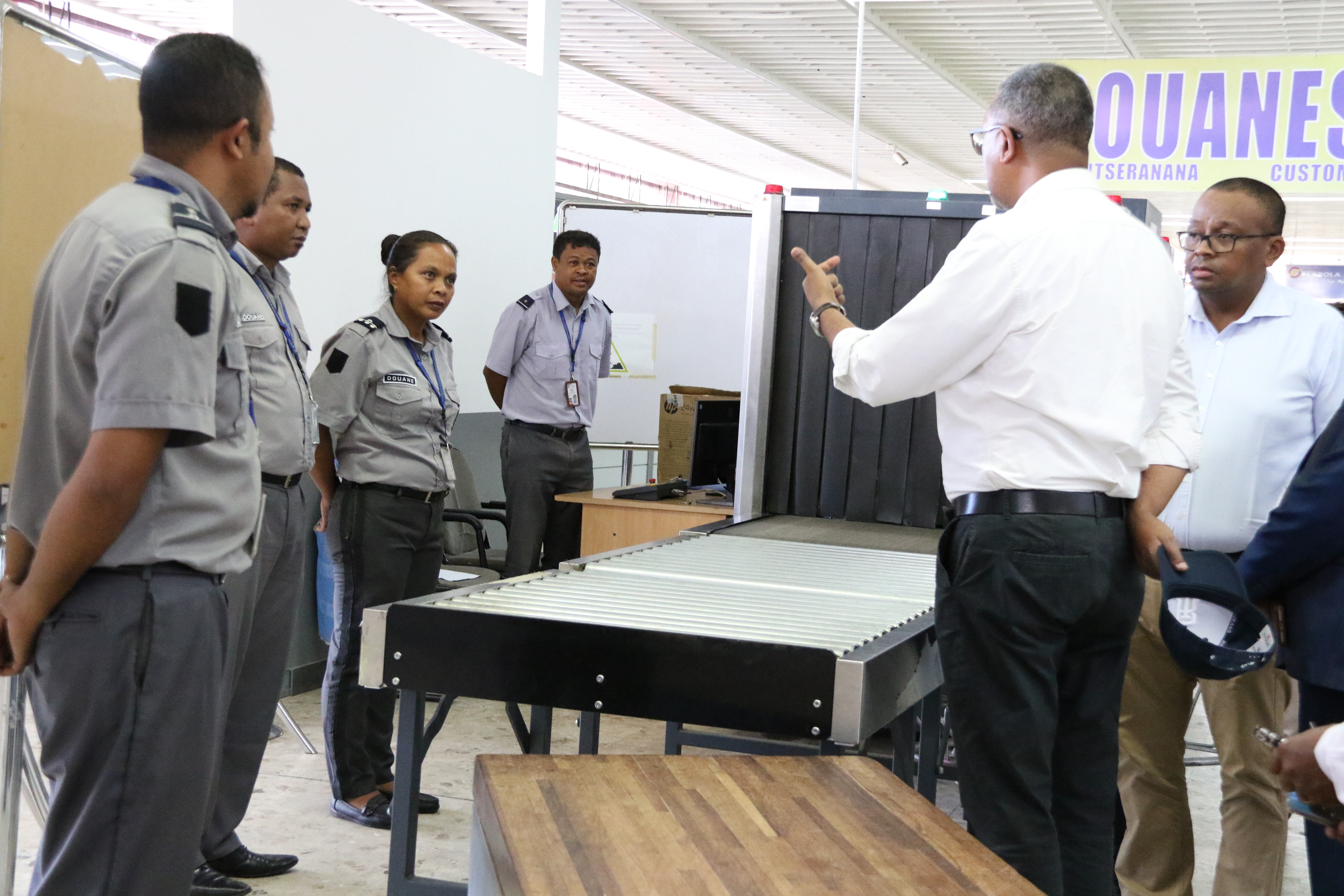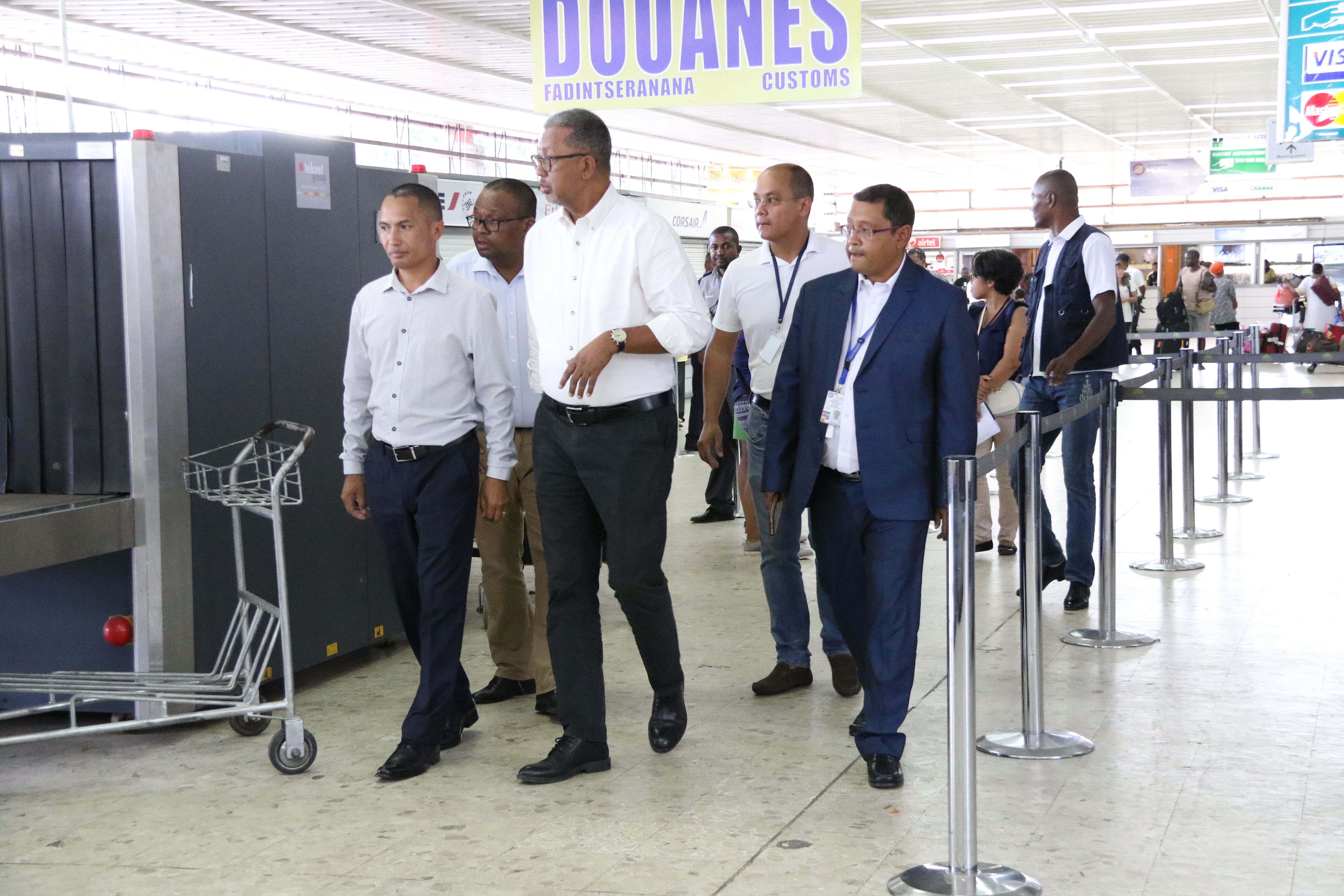 Le Ministre de l’Economie et des Finances visite le dispositif douanier à l’aéroport international d’IvatoIvato, 17 février 2019 Suite au cas des dernières saisies et les rumeurs sur de prétendues mauvaise pratiques douanières, le Ministre de l’Economie et des Finances, Richard J. RANDRIAMANDRATO a effectué ce dimanche 17 février 2019, une visite du dispositif douanier au niveau de l’aéroport international d’Ivato. Le ministre a signalé que ces trafics occasionnaient des pertes économiques considérables pour le pays. Situation inacceptable selon le ministre. Malgré les efforts déjà entrepris par l’administration douanière ces derniers temps, de nombreuses failles restent encore à combler car le système actuel ne permet pas de totalement traquer les trafics. Le Grand argentier est déterminé à prendre les mesures nécessaires et de faire en sorte qu’elles soient respectées. Durant sa visite, Il s’est entretenu avec les douaniers en service ce jour et a insisté sur la vigilance dont devrait faire preuve chaque agent. En effet, il leur a signifié le code de conduite à avoir en tant que douanier : « respect et fermeté » Selon le ministre : « le moment est venu de prendre les mesures et de montrer que nous sommes déterminés à appliquer les règles et textes en vigueur. Madagascar est un Pays de droit ». A la Suite de la visite, le Ministre de l’Economie et des Finances a invité toutes les entités travaillant à l’aéroport d’Ivato de coopérer dans l’atteinte de ces objectifs.