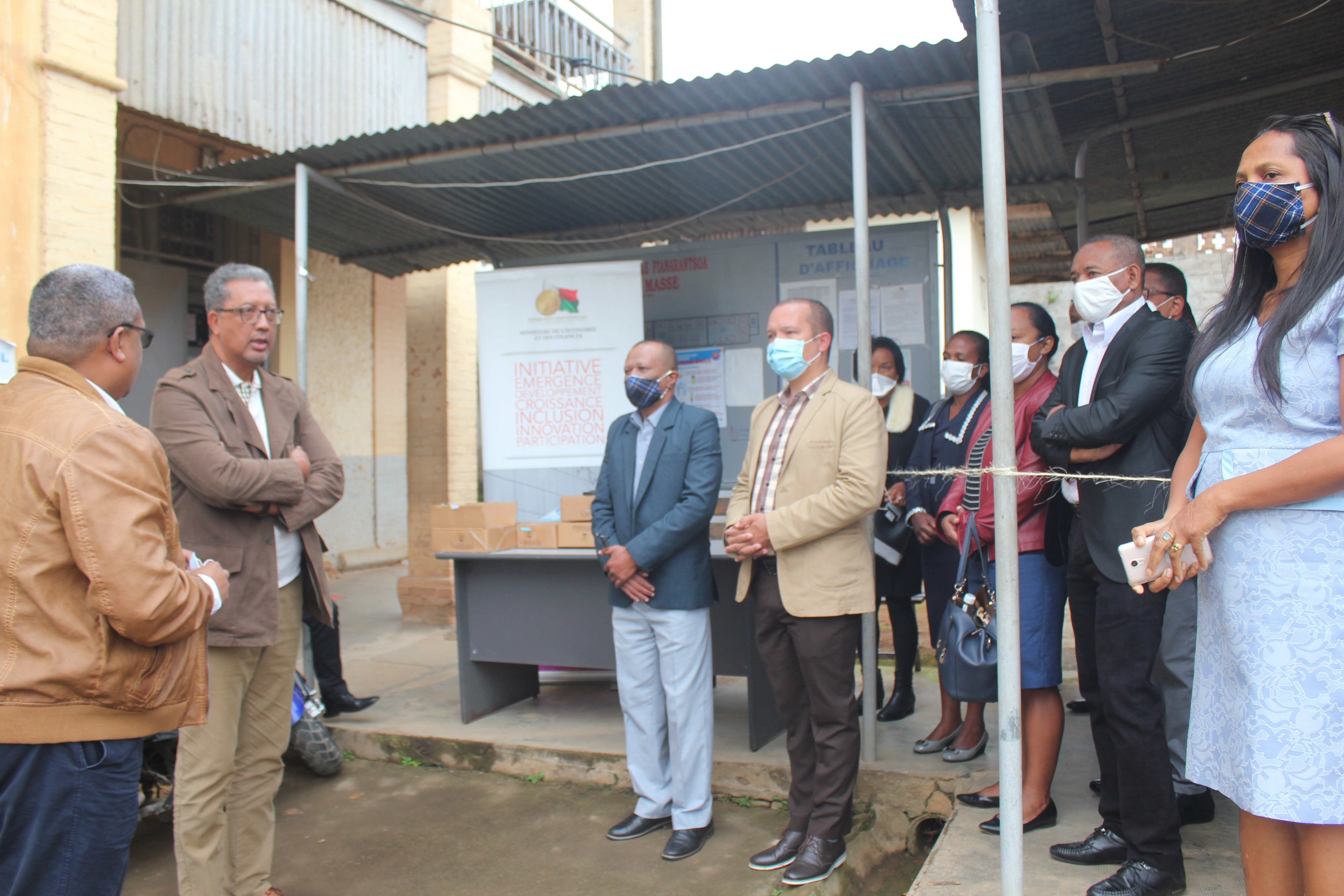 Fianarantsoa, le 22 avril 2020. Figurant parmi la délégation présidentielle qui s’est rendue à Fianarantsoa dans le cadre de la mission de lutte contre le coronavirus, le Ministre de l’Economie et des Finances Richard Randriamandrato a profité de l’occasion pour faire un tour d’horizon sur le fonctionnement des directions et services régionaux du Ministère de l'Economie et des Finances (MEF) dans la Région Haute Matsiatra. Le Ministre a notamment évoqué le projet de construction d’un bâtiment administratif unique qui centralisera toutes les directions et services régionaux du MEF (Impôts, Douanes, Finances, Economie, Instat… ). Cette centralisation aura comme principal objectif : mieux servir les usagers des services publics du MEF. Concernant la lutte contre le COVID-19, qui est d’ailleurs, le principal objet de la descente présidentielle à Fianarantsoa, le Ministre de l’Economie et des Finances a indiqué que « le pays fait face à une véritable guerre ». Il a ajouté que « cette guerre implique un changement des priorités. Elle entraîne une urgence sociale et une urgence sanitaire qui obligent le gouvernement à concentrer ses efforts sur les priorités sociales comme la santé, l’éducation, les femmes et les enfants… » Ces changements de priorité, consécutifs aux urgences imposées par la crise sanitaire figureront dans la Loi de finances rectificative qui est actuellement en cours de préparation. La réalisation du Plan Emergence Madagascar (PEM) , conformément aux directives du Président de la République Andry Rajoelina sera également mise en exergue dans cette Loi de finances rectificative 2020. Au cours de ses visites, le Ministre était accompagné du Gouverneur de la Région Haute-Matsiatra et du Directeur Général des Finances et des Affaires Générales du MEF.