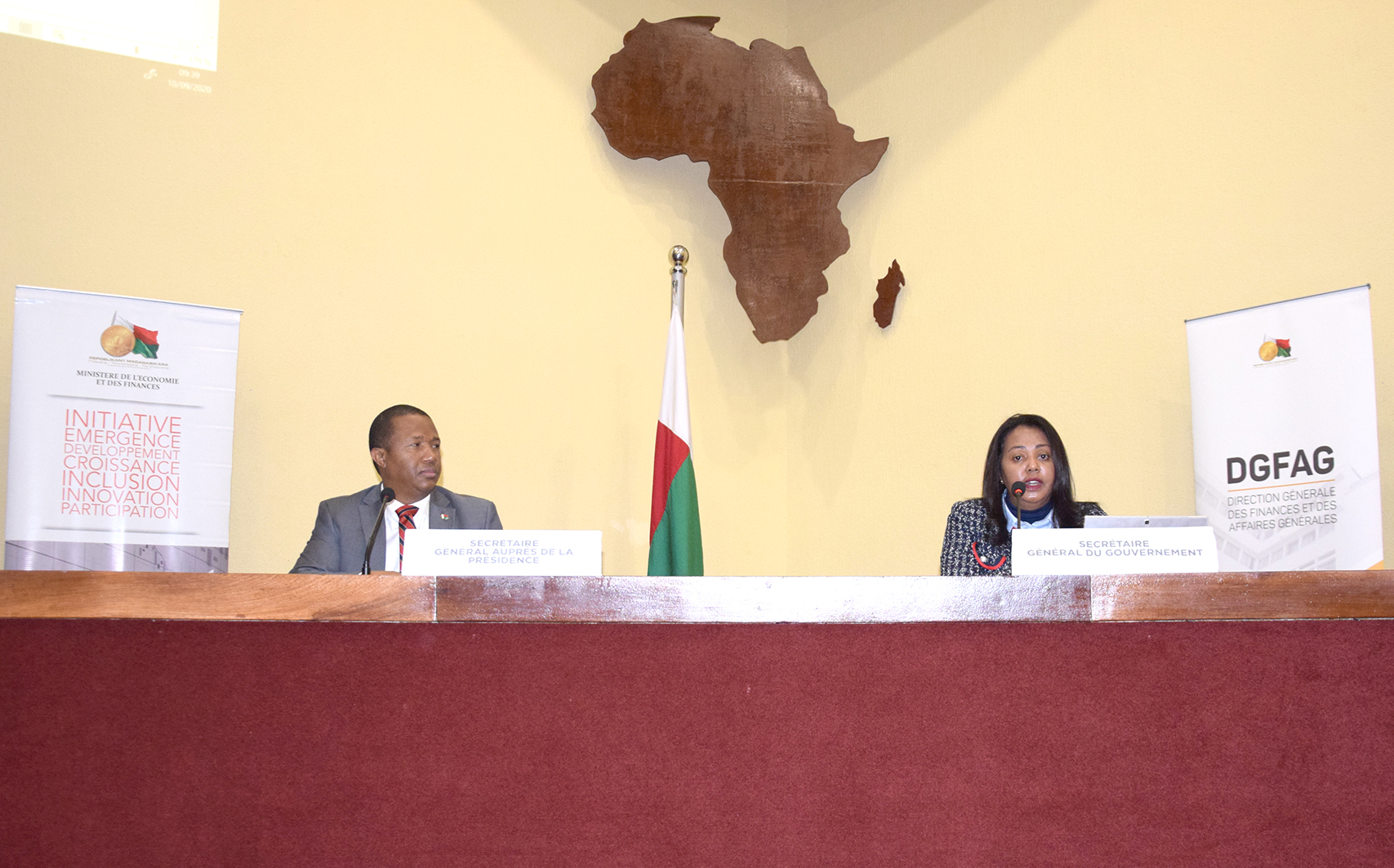 Ao anatin’ny fanomanana ny Lalàna hifehy ny fitantanambolam-panjakana 2021 dia nisy ny fivoriana nataon’ireo Sekretera jeneraly mandritra ny andron’ny 10 sy 11 septambra 2020 mba entina hamerana sy hanitsiana ny CDMT (Cadrage de Dépense à Moyen Terme) natolotr’ireo Departemanta isan-tsokajiny eny anatin’ireo Minisitera sy Andrim-panjakana, manaraka ireo zavatra noferan’ny lasitra ara-faobe sy ny tetibola. Tanjona amin’izany ny fanamoràna ny fandraisana fanapahakevitra sy ny fankatoavana izany volavolan-dalàna mifehy ny fitantanambolam-panjakana 2021 izany eny anivon’ny Filan-kevitry ny Minisitra. Ireo volavolana CDMT dia tokony ho mora vakiana, miainga amin’ny zava-misy marina sy azo tanterahana, mifanentana amin’ny zavatra takiana. Marihana fa tokony ahitana taratra ny laharampahamehana napetraky ny Fitondram-panjakana izany tetibola narafitra izany indrindra noho ny toe-draharaha sarotra eo amin’ny lafiny toekarena izay nentin’ny Krizy ara-pahasalamana nitranga teto amin’izao tontolo izao noho ny COVID-19. Noho izany dia tsy maintsy miroso amin’ny famaritana ny laharam-pahamehan’ny fanadaniam-bola isika araka any fanambarana nataon’Andriamatoa Valery RAMONJAVELO Sekretera Jeneralin’ny Fiadidiana ny Repoblika, nandritra ny fotoam-panokafana ny fivoriana. Nandritra ity fivoriana naharitra roa andro ity dia nandalo tsirairay nanohana ny lahan’asa ireo Sekretera Jeneraly avy amin’ny Minisitera tsirairay. Ny tanjona moa dia endrika efa madio sy milamina no volavolan-dalàna hatolotra hankatoavin’ny Filankevitry ny Minisitra. Tao anatin’ny antonta-taratasy lasitra ho an’ny fanomanana ity lalàna hifehy ny fitantanambolam-panjakana ho an’ny taona 2021 ity, dia nangatahana tamin’ny Minisitera sy ny Andrimpanjakana ny hijereny ny volavola atolotr’izy raha mifanaraka amin’ny Politika ankapoben’ny Fanjakàna, hametraka ho laharampahamehana ny fanohizana ireo tetikasa efa natomboka ny taona 2020, hikendry ny tombony lehibe azo eo amin’ny lafiny sosialy sy ny toekarena amin’ny alalan’ny fametrahana ho laharampahamehana ireo tetikasa izay manana tahirin-kery amin’ny famoronana asa sy hitarika amin’ny fampitomboana ny toekarena ary farany mijery ny mety ho fiaraha-miasa sy fifamenoan’ireo fanapahakevitra sy asa, izay mitondra amin’ny fampandrosoana iaraha-misitraka sy lovain-jafy. Ny Sekretera Jenerelin’ny Governemanta, Ramatoa RAZANADRAINIARISON Rondro Lucette kosa no nitarika ny fotoana rehetra nandritra ny roa andro nanatanterahana ny fivoriana. Ny Ekipan’ny Minisiteran’ny Toekarena sy Fitantanambola izay notarihin-dramatoa RABARINIRINARISON Rindra Hasimbelo, Sekretera Jeneraliny, miaraka amin’ Andriamatoa RANDIMBIARISOA Oliva, Tale Jeneralin’ny Fitantanambola sy ny raharaha ankapobeny ary ireo mpiara-miasa aminy kosa no nandravona ny tolo-kevitra rehetra nivoaka tao ary handrafitra ny volavolan-dalàna hifehy ny tetibola 2021 izay ho atolotra ho dinihan’ny Filankevitry ny Minisitra.