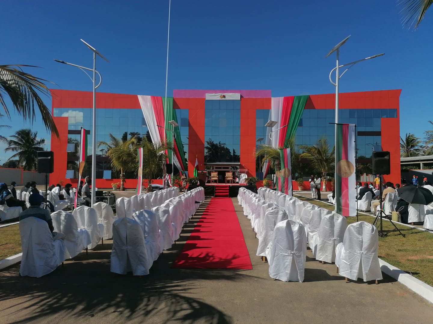 Ce 18 septembre 2020, le Président de la République de Madagascar, Andry RAJOELINA a inauguré l’Hôtel des Finances à Besopaka dans la ville de Sambava. Il s’agit d’un bâtiment administratif « manara-penitra » comprenant 85 salles dont 66 bureaux. Financée sur ressources propres internes de l’Etat, la mise en place de l’Hôtel des Finances de Sambava marque une étape importante dans la mise en œuvre de la décentralisation effective, et concrétise le Velirano n°3 qui est de rapprocher les services publics des citoyens. Selon le Ministre de l'Economie et des Finances Richard RANDRIAMANDRATO , ce bâtiment ultramoderne, le premier du genre à être installé en région, abrite les différents départements de ce ministère, à savoir les directions et services régionaux des Impôts, des Douanes, du Contrôle Financier, de la Solde et des Pensions, du Trésor, de l’Economie et du Plan, du Budget, des Marchés Publics,…. La mise en place de ce guichet unique répond au souci du ministère de se rapprocher des contribuables, et contribue à l’instauration d’une administration plus efficiente et plus efficace. La circulation des informations entre les différents services publics sera plus fluide, le traitement des dossiers administratifs sera plus facile et les fonds publics seront plus sécurisés. Grâce à ce système de guichet unique, les usagers gagneront du temps et verront leurs dépenses de déplacement réduites. «Les usagers et les contribuables n’auront plus à se déplacer dans différents lieux pour jouir de leurs droits comme la pension de retraite ou pour payer les impôts ou les taxes douanières », explique le Ministre de l’Economie et des Finances. Une meilleure gestion des deniers publics figure également parmi les premiers avantages de la création de cet « Hôtel des Finances ». A noter que le district de Sambava compte au total 2 214 agents de l’Etat, dont 108 du Ministère de l’Economie et des Finances, 900 pensionnés. Les échanges douaniers tournent autour de 1 147 milliards d’ariary, et les recettes fiscales atteignent les16 milliards d’ariary Grâce à sa modernité et sa beauté, cette infrastructure publique, munie d’un espace vert contribue également à l’embellissement de la ville de Sambava. Lors de la cérémonie, le Président de la République a annoncé qu’une « Maison de la Vanille » sera également érigée dans la région SAVA, connue pour être la capitale mondiale de la vanille, d’ici l’année prochaine.