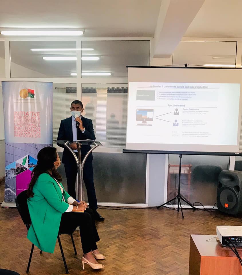 Ao anatin’ny fanatanterahana ny fandaharanasa « initiatives digitales », ny Foibempitondrana ankapobeny momba ny hetra, izay miara-miombona antoka amin’ny tetikasa « Gouvernance Budgétaire et Croissance Inclusive (GBCI)» tantanan’ny PNUD, ny Filankevitra ambony momba ny fitanana kaonty (CSC), ny holafitry ny « experts comptables et financiers » eto Madagasikara (OECFM) ary ny Banky Foiben’i Madagasikara (BFM), dia nanatontosa ny lanonana fanombohana ara-pomba ofisialy ny hetsika ametrahana ny sehatra ahafahana mandefa ireo tatitra momba ny fitantanambola amin’ny alalan’ny tambazotra fifandraisan-davitra izay antsoina hoe « e-bilan » ny andron’ny Alakamisy 24 septambra, tao amin’ny toeram-piasana misy ny Foibempitondrana momba ireo orinasa lehibe eny Amparibe.. Ao anatin’ny rijan-teny manankery momba ny hetra, ireo mpandoa hetra dia tokony handefa eny anivon’ireo ivotoerana momba ny hetra izay mikirakira ny antotan-taratasin’izy ireo ny taratasy maneho ny tatitra momba ny fitantanambolany ahitana taratasy karazany maro. Ny fanaterana an-tanana ireny antotan-taratasy misy ny tatitra momba ny fitantanambola ireny dia tsy ilaozan’ny zavatra manahirana, na ho an’ny orin-draharaha misahana ny hetra, na ho an’ny mpandoa hetra, mandritra ny fanomanana sy ny fandraisana ireo tatitra momba ny fitantanambola. Ho an’ny orin-draharaha misahana ny hetra tokoa mantsy, io zavatra tsy maintsy ataon’ny mpandoa hetra io dia miteraka filaharana lavareny ho famitàna an-tsakany sy an-davany io hetsika izay tsy misaraka amin’ny fanambarana ara-ketra io. Ambonin’izany, ny fitahirizana ireo antotantaratasy eo anivon’ny orin-draharaha momba ny hetra dia tsy manome antoka ny fiarovana ireo angom-baovao tsy hiparitaka. Ny singa « e-bilan » izay mifanjohy amin’ny fanambaran-ketra amin’ny alalan’ny tambazotram-pifandraisan-davitra dia hahafahan’ireo orinasa mandefa ireo tatitra momba ny fitantanambola sy ireo tovana miaraka aminy (« liasse fiscale »), amin’ny endriny manaraka ny fenitra, mialoha ny fanamarinana ataon’ny « expert-comptable », izay arahan’ny fametrahana azy amin’ny fomba ofisialy eo anivon’ny orin-draharaha misahana ny hetra. Amin’ny alalan’ny « e-bilan » dia andrasana ny fanamoràna ny fanatanterahana ireo fomba entina manoratra sy mametraka ireo antotantaratasy fitantanam-bola ho an’ireo mpandoa hetra sy ireo mpiaramiombona antoka aminy manokana etsy andaniny, ary ny fametrahana amin’ny tokony ho izy ny fikirakirana sy ny fiarovana ireo angom-baovao ataon’ny orin-draharaha misahana ny hetra. Ho an’ireo orinasa, ny fametrahana ny e-bilan dia hanampy amin’ny fampihenana ireo asa, ireo fandaniana ary amin’ny fampitomboana ny fahafaha-mamokatr’izy ireo. Farany fa tsy ny kely indrindra, ny tetikasa « e-bilan » dia iray amin’ireo ezaka lehibe ataon’ny DGI eo amin’ny lafiny ady atao amin’ny kolikoly. Ilaina tokoa mantsy ny manamarika fa ankehitriny dia mihamaro ireo orinasa mamoaka tatitra ara-bola roa samihafa amin’ny alalan’ny filalaovany ireo vola maty arakaraky ny fitadiavany ny fahazoana ireo tsenam-baro-panjakana na ny taratasy ataony entiny hanambarana ny tatitra ara-bola hikajiana ireo hetra. Ny fangaraharana entin’ny « e-bilan » dia antoka lehibe ho an’ny fanatsarana ny fitantanana ireo vola miditra avy amin’ny hetra.