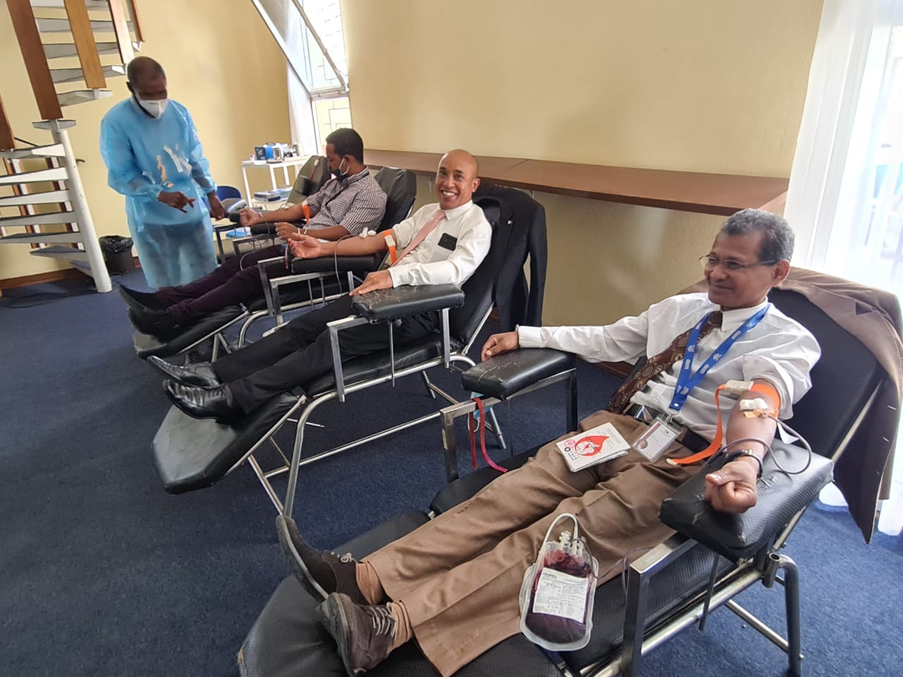 DON DE SANG AU PROFIT DE L'HOPITAL JOSEPH RAVOAHANGY ANDRIANAVALONA (HJRA) A l’initiative de l’équipe de volontariat du Ministère de l’Economie et des Finances issue de la Direction Générale de l’Economie et du Plan (DGEP) et dans le cadre de leurs activités sociales, une collecte de sang a été organisée dans la journée du 22 octobre 2020 dans les locaux du Bâtiment Plan Anosy. Les Autorités ainsi que les Agents au sein du Ministère de l’Economie et du Plan ont répondu présents suite à l’invitation lancée par la DGEP. Afin de s’assurer que tous les protocoles requis en ce sens soient respectés, des médecins issus de l’Hôpital Joseph Ravoahangy Andrianavalona (HJRA) ont été mobilisés et se sont rendus dans les locaux du plan Anosy pour tous les prélèvements. Le don de sang de ce jour va contribuer à soutenir la banque de sang de ce centre hospitalier.