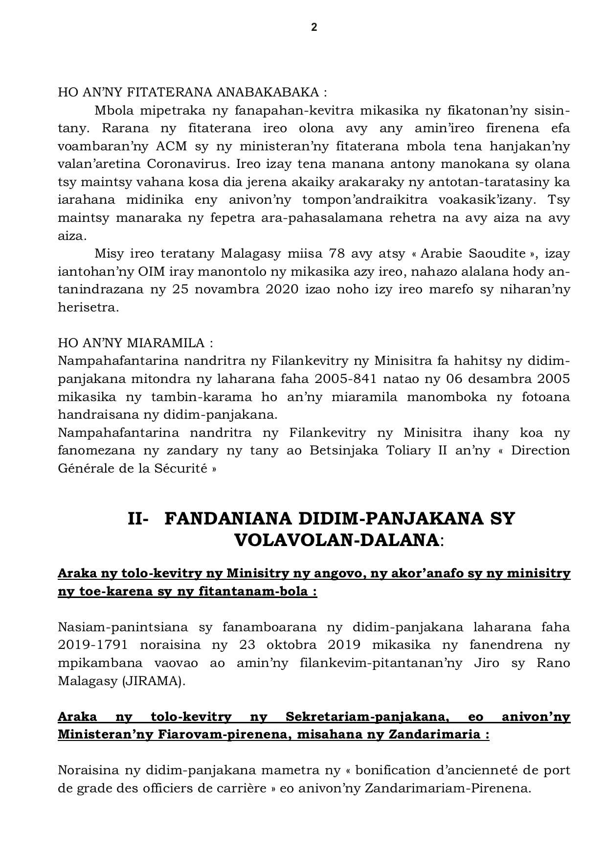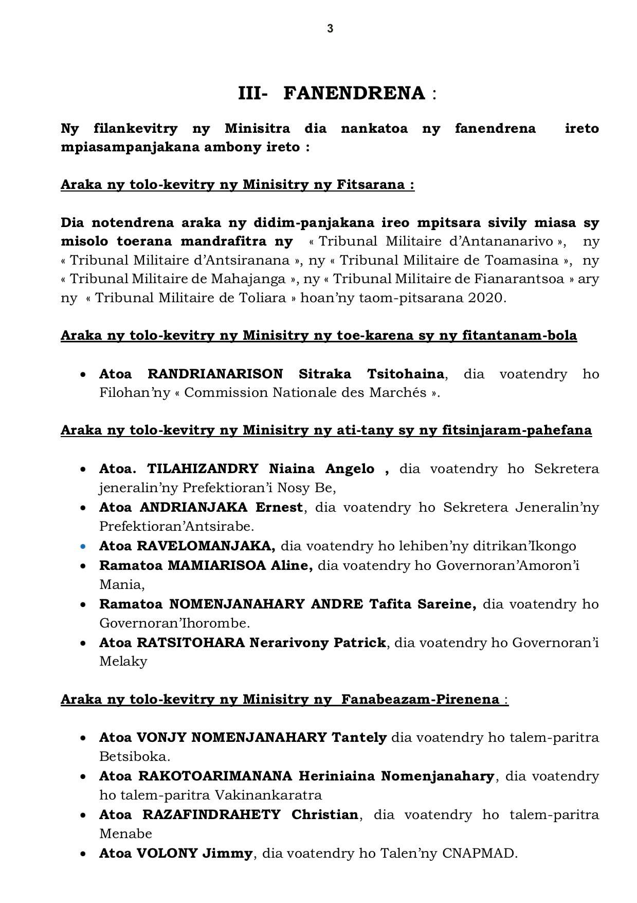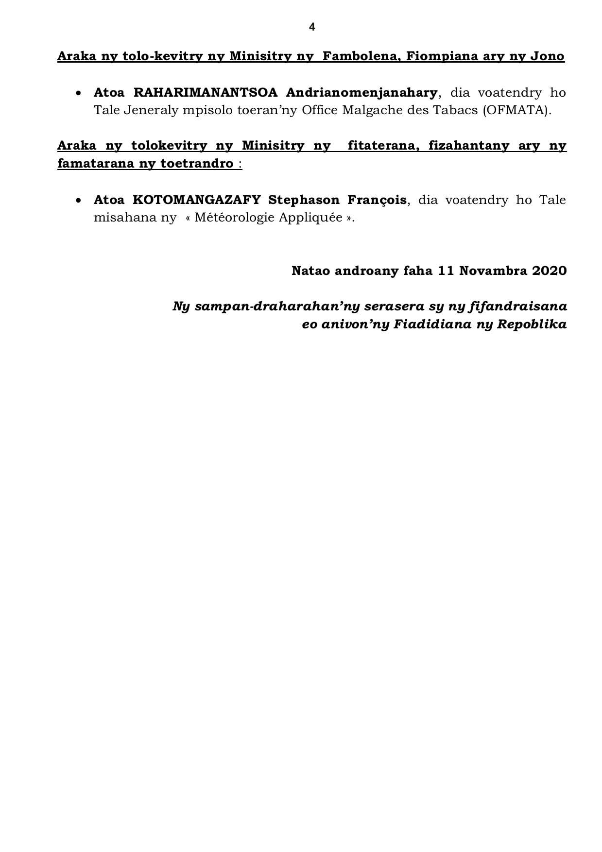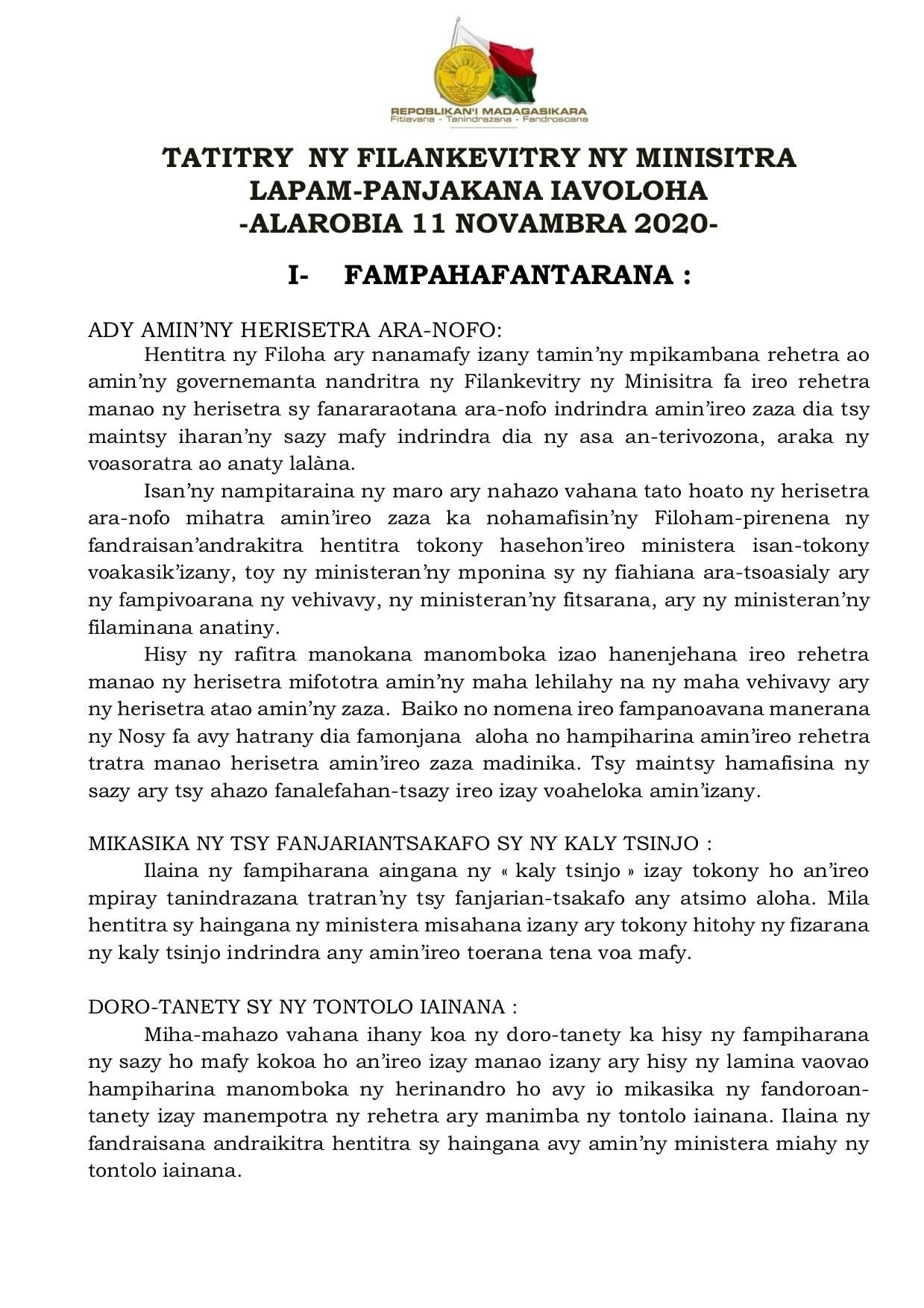 Tatitry ny Filankevitry ny Ministra natao ny 11 novambra