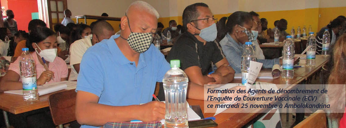 Fampiofananan’ireo « Agents de dénombrement » Nanomboka ny alarobia 25 Novambra 2020 teo ny fiofanan’ireo olona miisa dimy amby valopolo (85) voafantina ho « Agents de dénombrement » ho an’ny « Enquête de Couverture Vaccinale (ECV) ». Naharitra enina (6) andro izany fampiofanana izany ary ny teknisian’ny INSTAT no nanatanteraka azy. Nofanina mahakasika ny tanjona sy ny vokatra andrasana amin’ny fanadihadiana izy ireo. Nampahafantarina azy ireo ihany koa ny fitaovana entina manangona ny antontanisa eny amin’ny tokatrano ary nofenoina tamin’ny fanaovana fanisana tokatrano andrana izany fampiofanana izany. Aorian’izao fiofanana izay notanterahina teny Ambolokandrina izao, dia tsy maintsy handalo fitsapam-pahaizana izy ireo mialohan’ny hanatanterahana ny asa fanisana izay hanomboka ny 06 novambra izao ary haharitra 29 andro. Aorian’izany fanisana tokantrano izany kosa na « dénombrement » no hanomboka ny tena fanadihadiana kasaina atao manerana ny faritra 22.