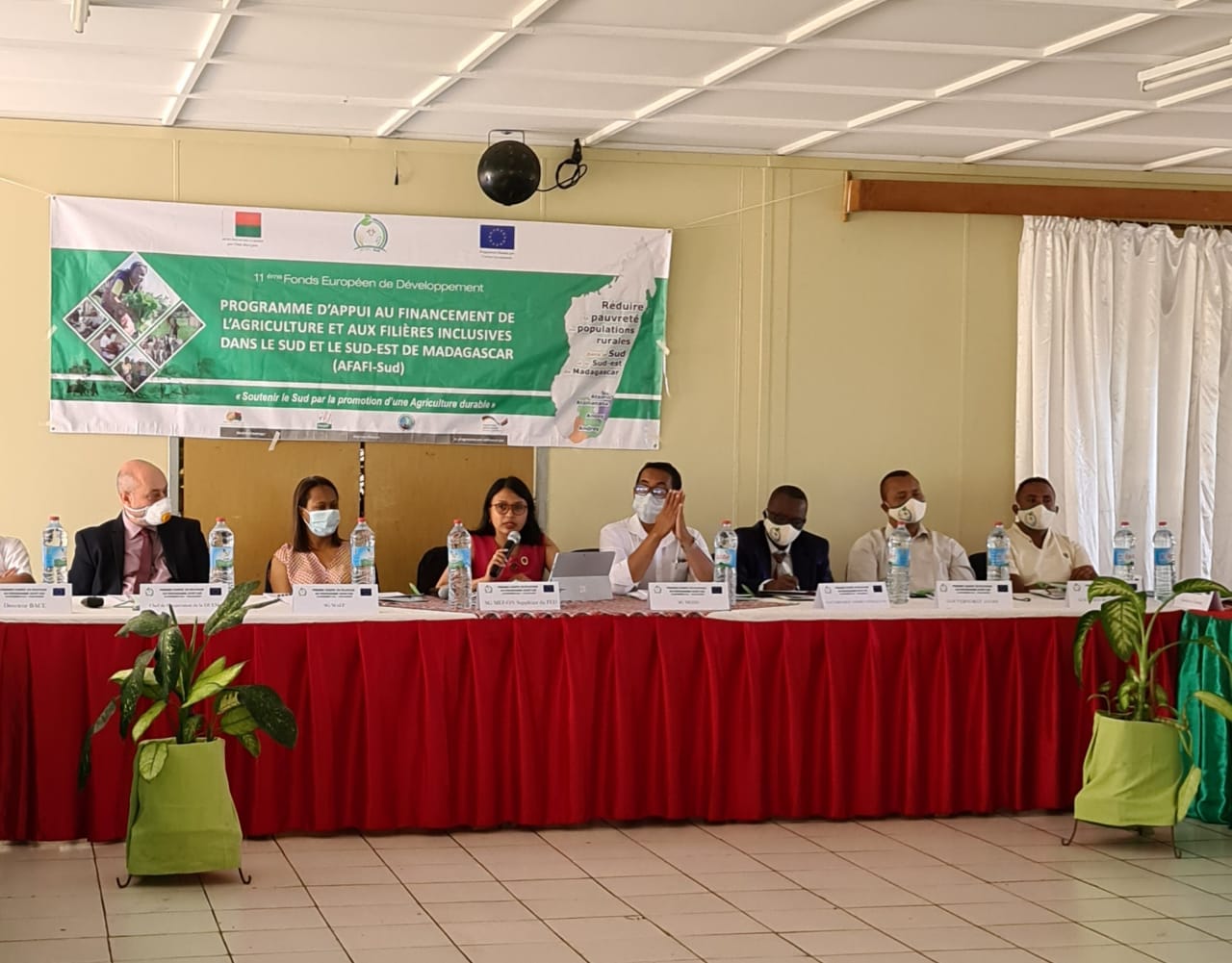 Taolagnaro, le 09 décembre 2020. Une mission du Comité de Pilotage du Projet AFAFI SUD se tient actuellement à Taolagnaro pour, entre autres, suivre l'évolution du cadre les résultats et l'avancement général du Programme et pour garantir l’atteinte des objectifs inscrits dans le programme. "Cette rencontre a pour but de donner les orientations et axes stratégiques pour l'atteinte des objectifs du programme en tenant compte des priorités et politiques nationales et en respect aux Velirano n°09 et 10 du Président de la République Andry Nirina Rajoelina", a rappelé Madame le Secrétaire Général du Ministère de l'Economie et des Finances, en sa qualité d'Ordonnateur National Délégué du Fonds Européen, maître d’ouvrage du Projet. Le programme AFAFI Sud a pour objectif de contribuer à la réduction de la pauvreté de la population dans le Sud et le Sud-Est de Madagascar. Il a été élaboré et mis en œuvre dans le but de lutter contre la pauvreté, l'insécurité alimentaire, la malnutrition et la précarité des conditions de vie au niveau de trois régions de la Grande Ile, à savoir Androy, Anosy et Atsimo Andrefana. Cette réunion va définir et valider les plans de travail annuel inscrits dans le cadre du programme pour l'année 2021, et de formuler des recommandations stratégiques pour la bonne mise en œuvre du Programme. Pour la journée du 10 décembre 2020, le Comité fera une descente auprès des sites bénéficiaires du financement à commencer par le bureau du GIZ, qui est également un partenaire, ensuite auprès du « Farmer Bunisess School » à Taolagnaro même, après à Manatantely et enfin à Ifarantsa.