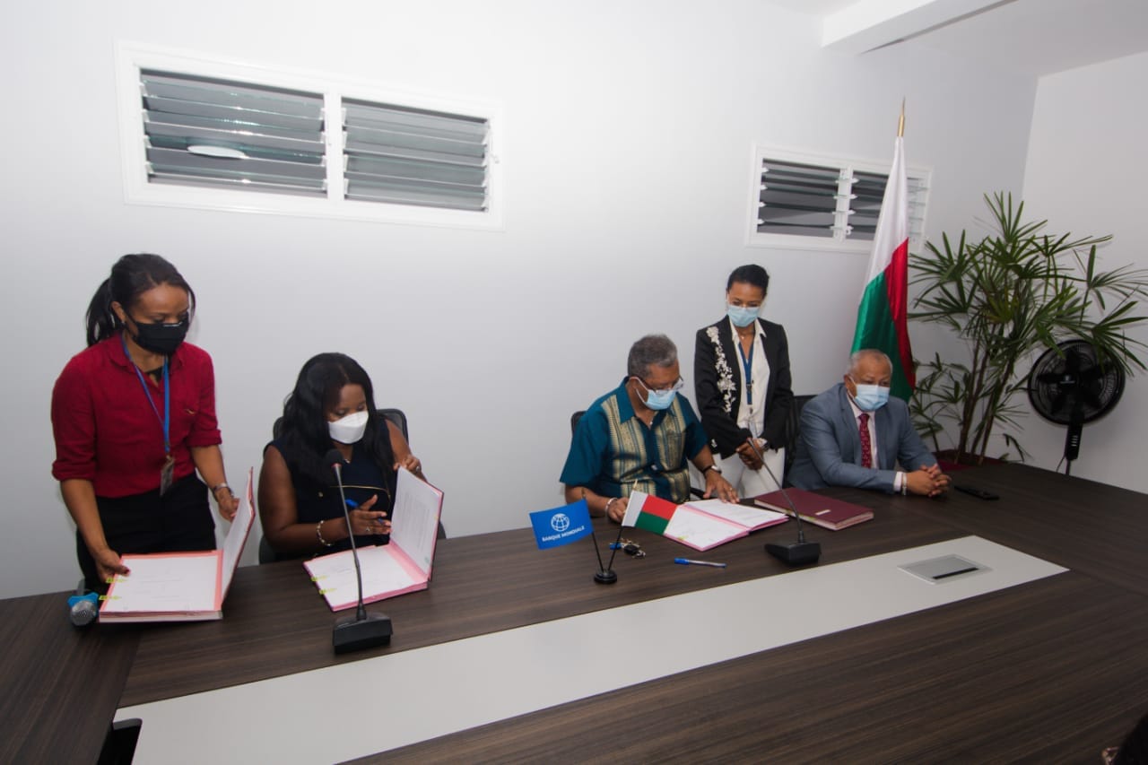 Antananarivo, le 17 Décembre 2020. Deux conventions de financement additionnel ont été signées ce jour entre l’Etat Malagasy, représenté par le Ministre de l’Economie et des Finances, Monsieur Richard Randriamandrato et la Représentante de la Banque mondiale à Madagascar, Madame Marie-Chantal Uwanyiligira. Elles ont été approuvées par le Conseil d'administration de la Banque mondiale le 10 décembre 2020. La cérémonie de signature a également vu la présence du Ministre de l’Aménagement du Territoire et des Travaux Publics, Monsieur Hajo Andrianainarivelo.