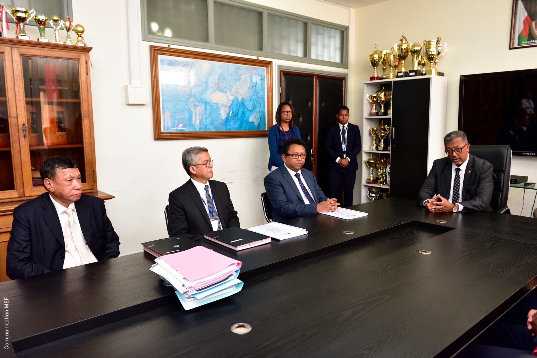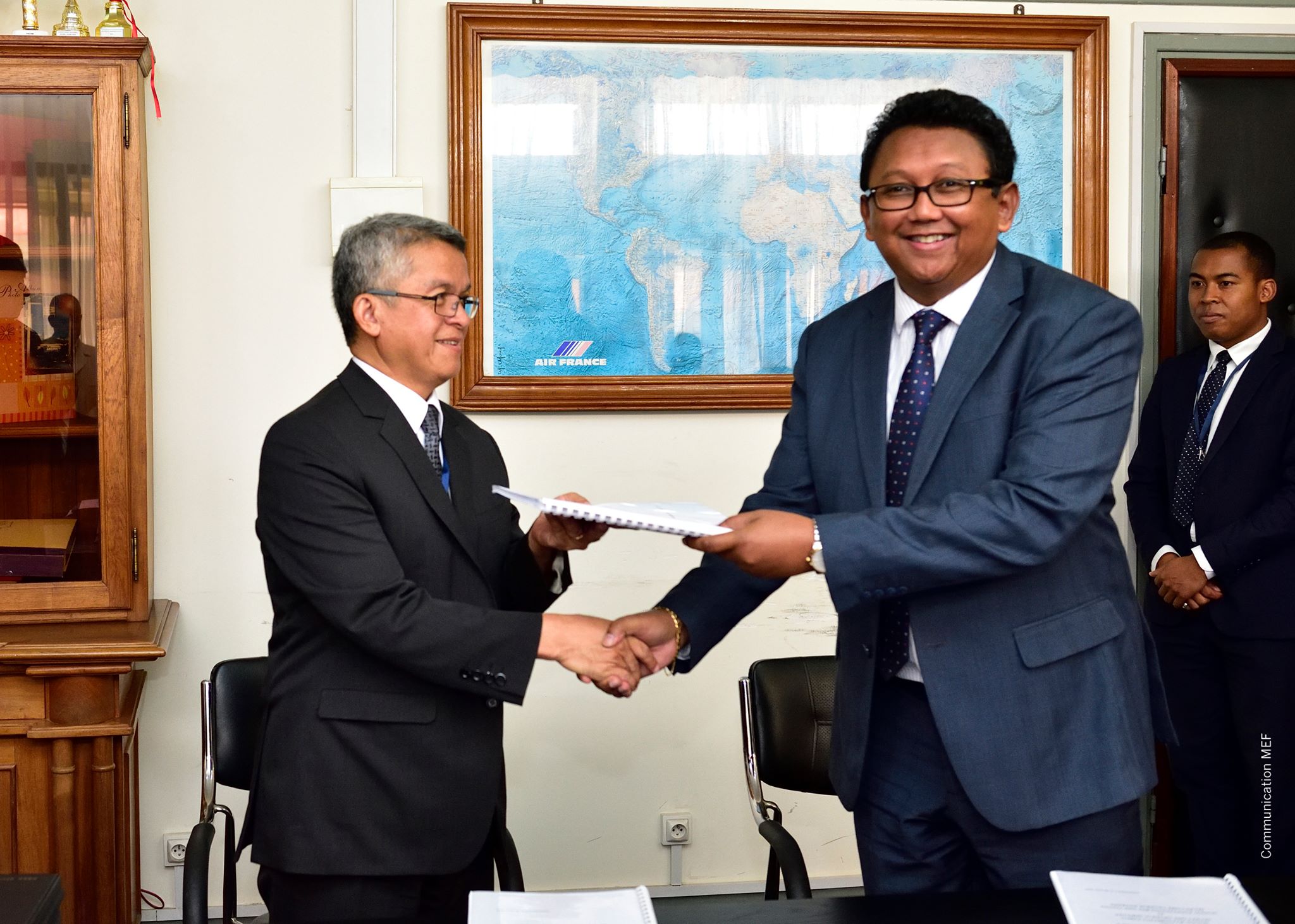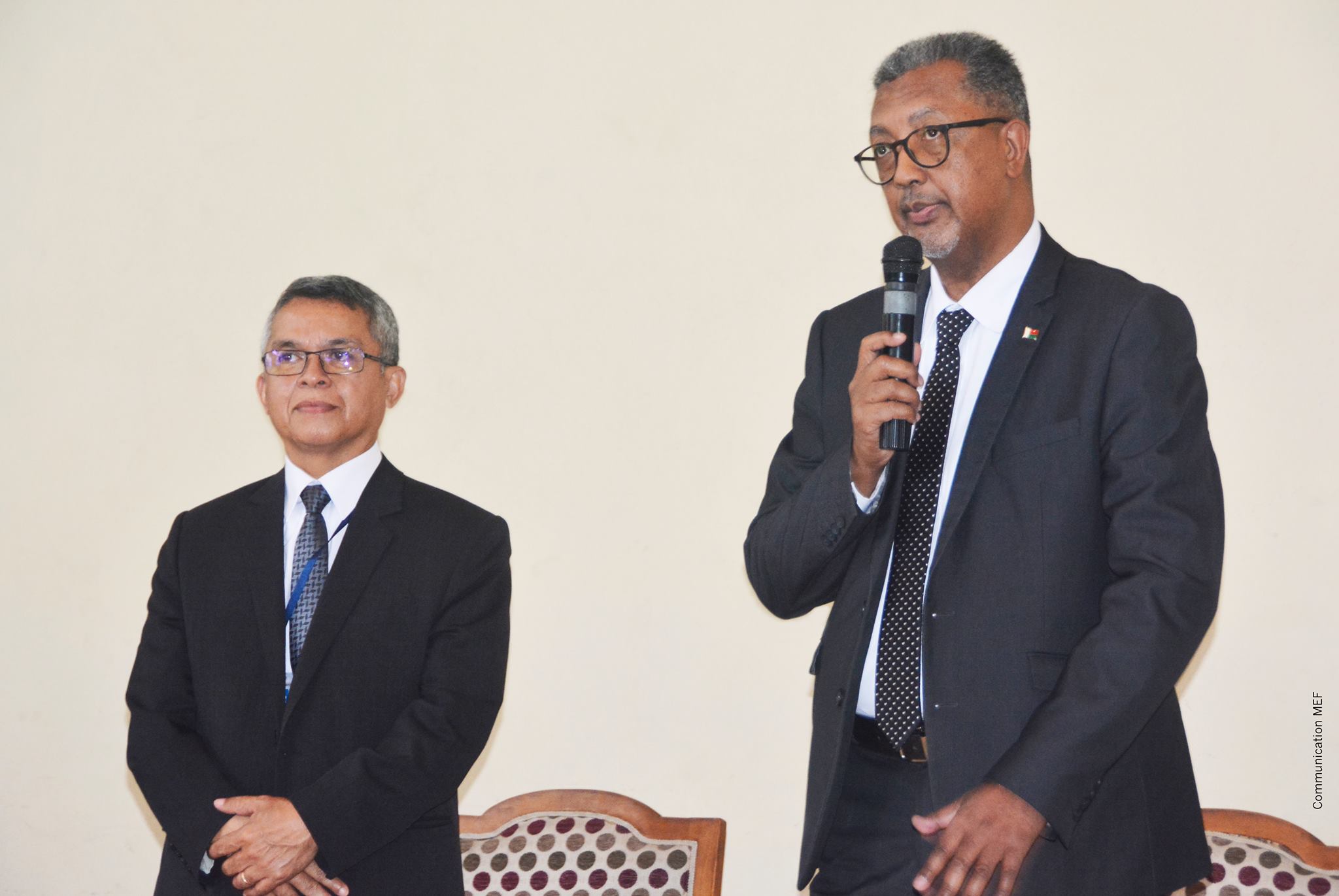 Passation de service entre les Secrétaires Généraux sortants et le Secrétaire Général EntrantCe matin s'est déroulée la cérémonie de passation entre les secrétaire généraux sortants du ministère de l'Economie et des Finances, Falihery Rajaobelina, et du plan, Jean Gabriel Randrianarison, et le secrétaire général entrant, Bien Aimé Raoelijaona, héritant des deux départements fusionnés. Outre les nominations des SG, se sont faites également les désignations de nouveaux directeurs généraux des finances et affaires générales, de l'autorité de régulation des marchés public, du trésor, de la cellule de coordination des projets de relance économique et d'actions sociales, du directeur de l'administration et de la finance, ainsi que de la présidente de la commission nationale des marchés publics. Profil du nouveau Secrétaire Général du Ministère de l’Economie et du Plan