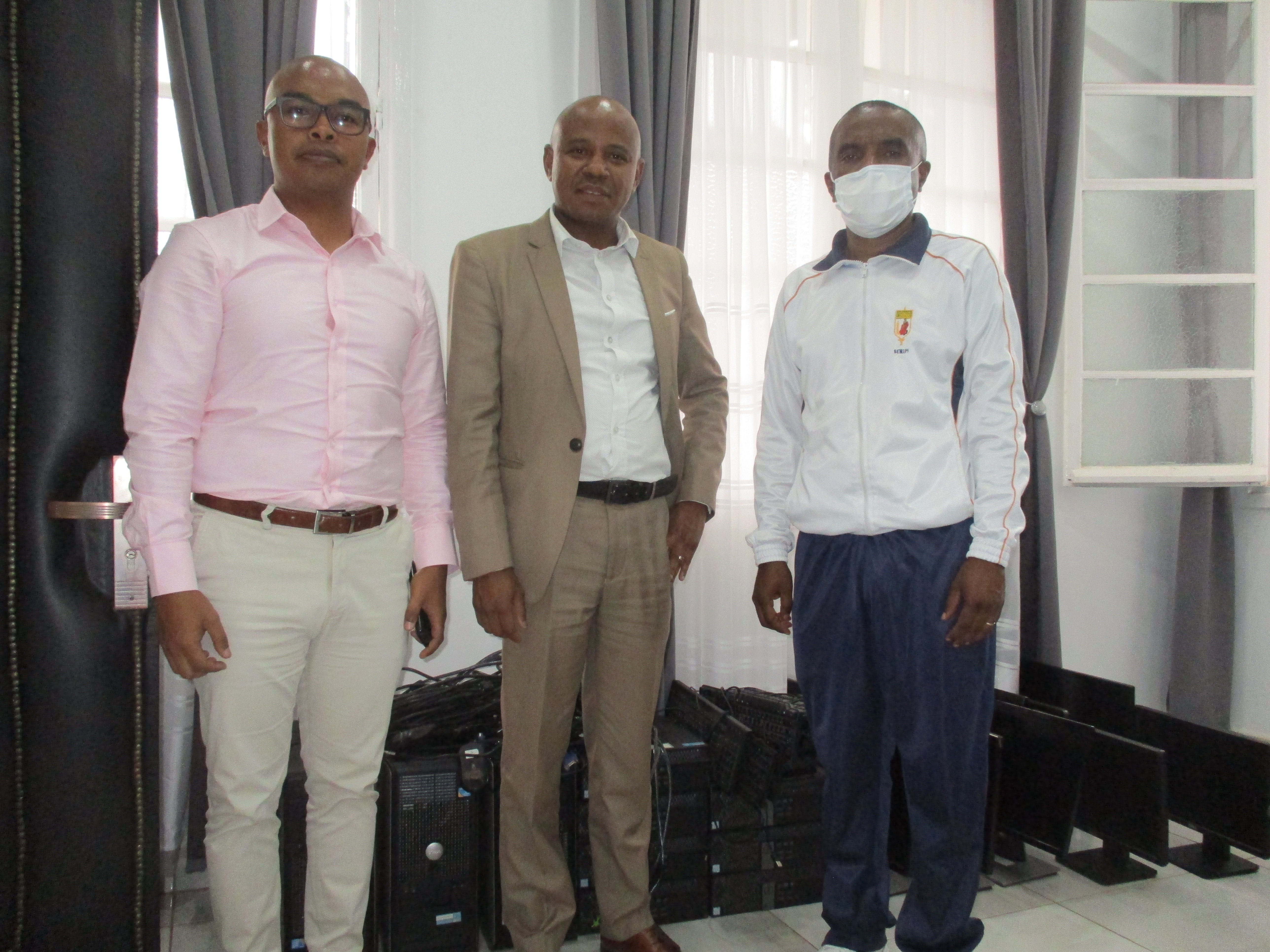 Le Ministère de l’Economie et des Finances en appui au Ministère de la Défense Nationale Le Ministère de l’Économie et des Finances, par l’intermédiaire de l’INSTAT, a mis à disposition du Ministère de la Défense Nationale le lundi 23 novembre 2020 un lot de 10 ordinateurs de bureau performants. Ces équipements informatiques constituent la contribution du Ministère pour le renforcement des équipements déployés au profit du Centre de Coordination opérationnel de lutte conte le Kere dans la partie Sud de Madagascar. Le Ministre de l’Économie et des Finances a été représenté par Monsieur Mande Isaora Zefania ROMALAHY, Directeur Général de l’INSTAT. Il a précisé dans sa brève allocution que ces équipements informatiques sont destinés à accélérer, renforcer et rendre encore plus efficace la lutte contre la pandémie à Madagascar.