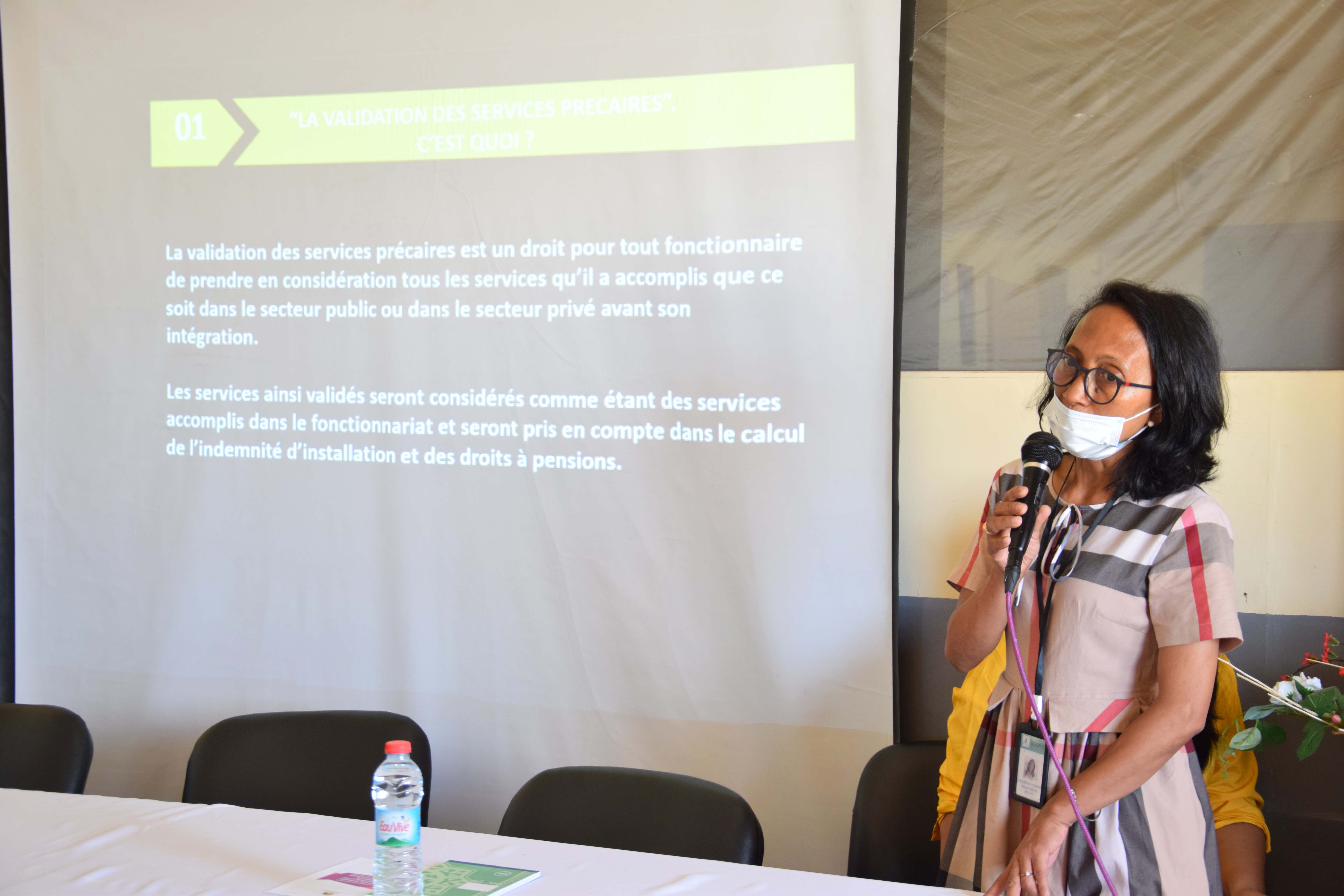 Ministère de la Sécurité Publique : Formation sur les Procédures liées à la Solde et aux pensions Suite à la demande du Ministère de la Sécurité Publique, un atelier de formation sur le traitement des dossiers liés à la solde et aux pensions s’est tenu ce jour à Antanimora. Dispensé par différents responsables au sein du Ministère de l’Economie et des Finances entre autres le Chef du Service Centrale de la Solde (SCS), le Chef du Service de Mandatement de la Solde Analamanga (SMSA), le Chef de la Division Validation et le Chef de la Division Ordre de Recette, le Chef du Service des Secours aux Décès et des Oppositions (SSOD), le Chef du Service de Liquidation des Pensions (SLP), le Chef de l’Ordonnancement des Dépenses des Pensions (SODP). La séance a permis aux agents dudit Ministère, et particulièrement aux responsables des Ressources Humaines, de renforcer leurs savoirs ou d’acquérir de nouvelles connaissances sur les différentes procédures en vigueur dans ce domaine. Le traitement des sanctions disciplinaires au niveau de la solde, tel que le droit de rappel de solde, fait partie des sujets qui ont intéressés l’assistance. Les informations concernant la validation des services précaires, ainsi que la prévoyance sociale des agents de l’Etat, des modules encore peu connus des agents de l’Administration publique, ont été également partagées avec les participants lors de cette journée de formation. Une autre séance sur le remplissage des actes formatés sera programmée ultérieurement.