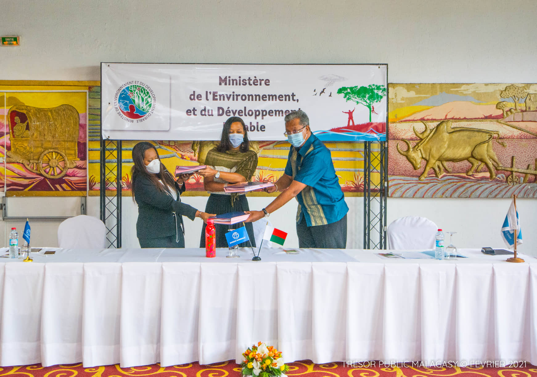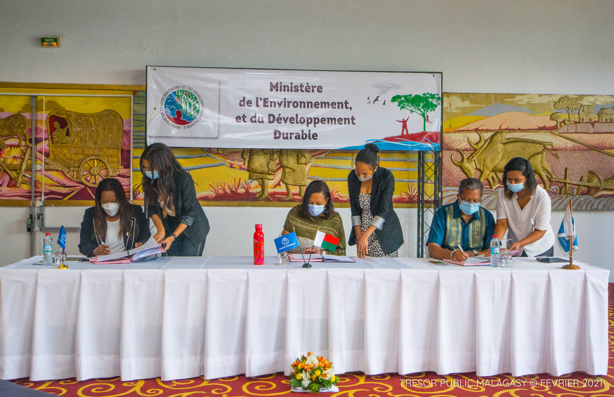 L'accord d’un montant de 50 millions de dollars contribuera à réduire la pauvreté au sein des communautés qui dépendent de la forêt, tout en réduisant les émissions de carbone dues à la déforestation et de la dégradation des forêts. Antananarivo, le 04 février 2021 — Le Ministère de l’Economie et des Finances de Madagascar et le Ministère de l'Environnement, de l'Écologie et des Forêts ont signé aujourd'hui un accord historique avec le Fonds de Partenariat sur le Carbone Forestier de la Banque Mondiale (FCPF en anglais) débloquant jusqu'à 50 millions de dollars US pour les efforts visant à réduire les émissions de carbone liées à la déforestation et à la dégradation des forêts entre 2020 et 2024. Avec Avec ce contrat d’achat des réductions des émissions Carbone (ERPA en anglais) en place, Madagascar devrait réduire de 10 millions de tonnes les émissions de dioxyde de carbone de la côte est du pays, riche en forêts tropicales. Le programme de réduction des émissions est conçu pour accroître la productivité agricole et réduire la pauvreté en milieu rural tout en améliorant la qualité des sols, en conservant les ressources en eau et en protégeant les forêts et la biodiversité vitales. La zone du programme couvre 10% du pays, s'étendant sur près de 7 millions d'hectares le long de l'écorégion de forêt humide de l'est du pays. Cette région abrite plus de la moitié des forêts tropicales riches en biodiversité de Madagascar qui sont menacées par l’expansion agricole. Le programme de réduction des émissions s’appuie sur l’approche intégrée du paysage agricole du pays qui vise à lutter contre les causes directes et indirectes de la déforestation et de la dégradation, y compris d’importants bassins versants. Le programme renforce la conservation et la gestion communautaire des forêts et s'appuie sur des chaînes de valeur agroforestières respectueuses des forêts telles que la vanille. Madagascar est le cinquième pays d'Afrique et le onzième au monde à conclure un tel accord décisif avec le FCPF. Les ERPA sont des instruments innovants qui encouragent la gestion durable des terres à grande échelle et aident à connecter les pays à d'autres sources de financement climatique. Les ressources du FCPF offrent de nouvelles opportunités pour conserver et régénérer les paysages forestiers et la biodiversité tout en soutenant, en même temps, une croissance économique durable, laquelle est essentielle pour le développement de Madagascar à l'avenir. Le Fonds de Partenariat sur le Carbone Forestier (FCPF) est un partenariat mondial de gouvernements, d'entreprises, de la société civile et d'organisations de peuples autochtones visant à réduire les émissions dues à la déforestation et à la dégradation des forêts, à la conservation des stocks de carbone forestier, à la gestion durable des forêts et à l'amélioration de stocks de carbone forestier dans les pays en développement, activités communément appelées REDD +. Lancé en 2008, le FCPF a travaillé avec 47 pays en développement d’Afrique, d'Asie, d'Amérique latine et des Caraïbes ainsi que 17 donateurs qui ont apporté des contributions et des engagements totalisant 1.3 milliard de dollars.