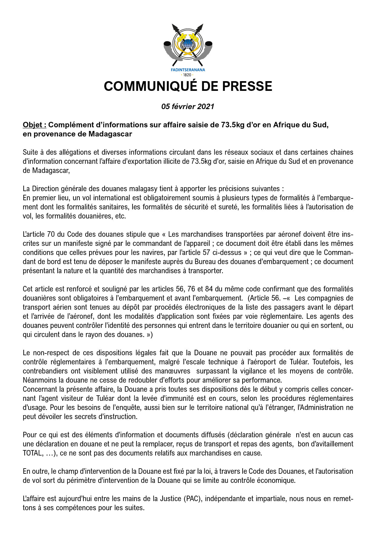 DIRECTION GENERALE DES DOUANES