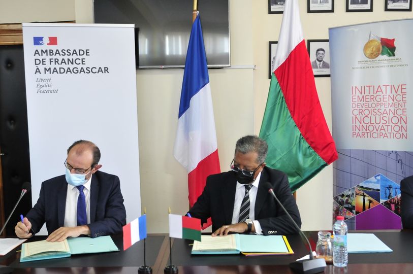France-Madagascar : Signature d’un accord de différé de dette Le Ministre de l’Economie et des Finances, Monsieur Richard Randriamandrato et son Excellence Monsieur Christophe Bouchard, Ambassadeur de France à Madagascar, ont procédé à la signature d’un Accord de différé de dette entre le Gouvernement Français et le Gouvernement malagasy dans la matinée du 9 mars 2021. D’un montant total de 1 647 221,78 €, cette dette soumise au différé est constituée par les prêts consentis par l’Agence Française de Développement, ayant fait l’objet d’un contrat ou de toute autre forme d’arrangement financier conclus avant le 24 mars 2020 d’une durée supérieure à un an. Les fonds concernés par cet accord de rééchelonnement ont été accordés pour le compte du Gouvernement français au Gouvernement malagasy ou à une entité bénéficiant d’une garantie explicite du Gouvernement malagasy. Le Gouvernement Français a voulu montrer à travers cette initiative son soutien envers Madagascar dans sa quête de développement et plus particulièrement en cette période de pandémie mondiale. Le Gouvernement malagasy s’est d’ailleurs engagé à consacrer les ressources libérées à l'augmentation des dépenses dédiées à atténuer l'impact sanitaire, économique et social de la crise COVID-19. Les versements se feront en six paiements semestriels, égaux et successifs, le premier intervenant le 15 juin 2022 et le dernier le 15 décembre 2024. Il en est de même pour les intérêts couru sur les montants différés du 1er mai 2020 au 31 décembre 2020.
