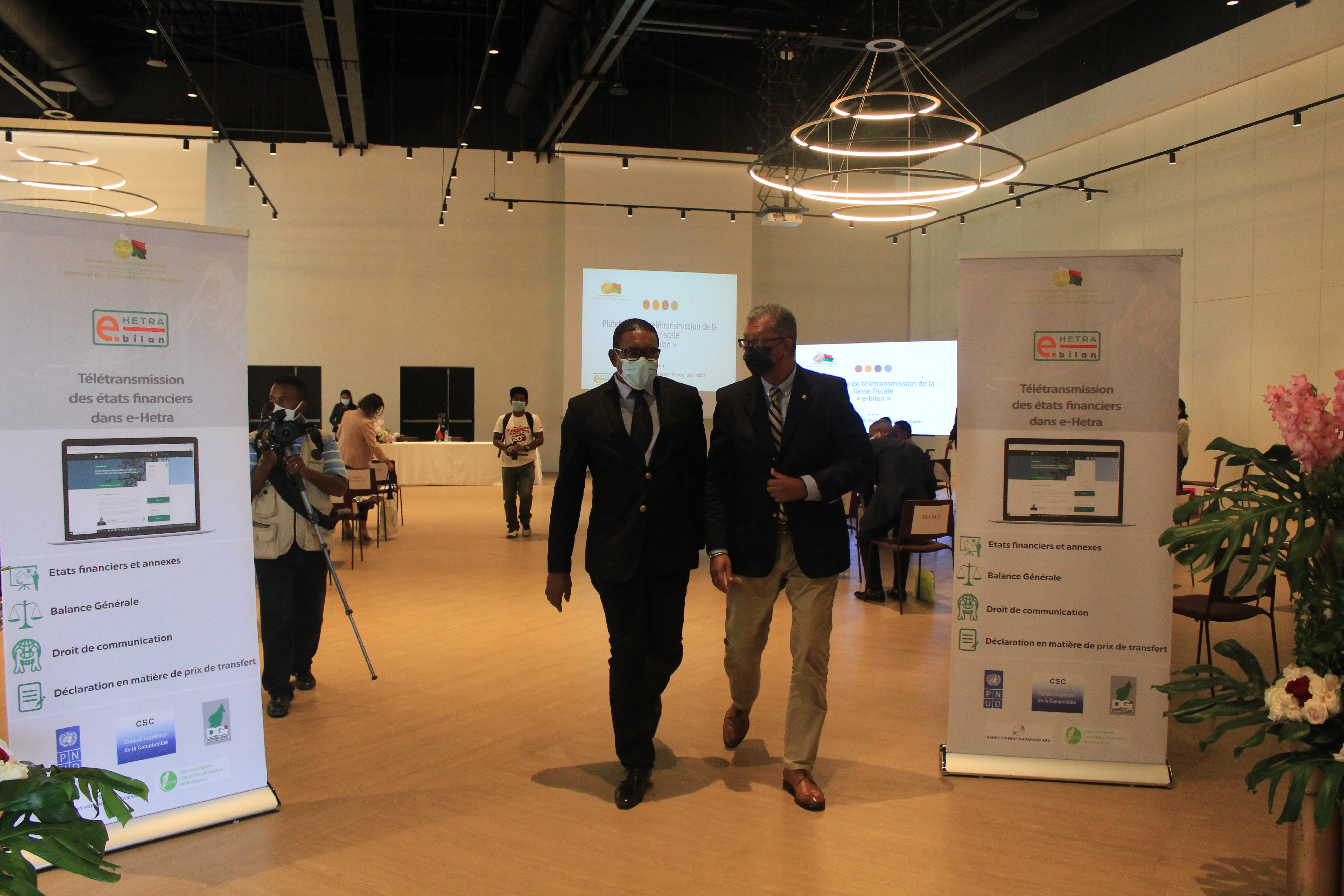 Télédéclaration fiscale : Le module « e-bilan » accessible sur le portail « E-Hetra » Dans le cadre de la mise en œuvre de son programme « initiatives digitales », le Ministère de l’Economie et des Finances, par le biais de la Direction Générale Impôts (DGI), en partenariat avec le Programme des Nations Unies pour le Développement (PNUD), le Conseil Supérieur de la Comptabilité (CSC) et l’Ordre des experts comptables et financiers de Madagascar (OECFM) ont officialisé l’opérationnalisation de la plateforme de télétransmission des états financiers, dénommée « e-Bilan », ce vendredi 26 Mars 2021, au Novotel Alarobia. Par cette opérationnalisation de « E-bilan » dans le portail « E-hetra » la DGI passe du phygital à la dématérialisation intégrale des procédures de déclaration fiscale. E-Bilan s’ajoute ainsi aux modules E-Declaration et E-Payment. Retenons donc les cinq points forts du module e-bilan :
