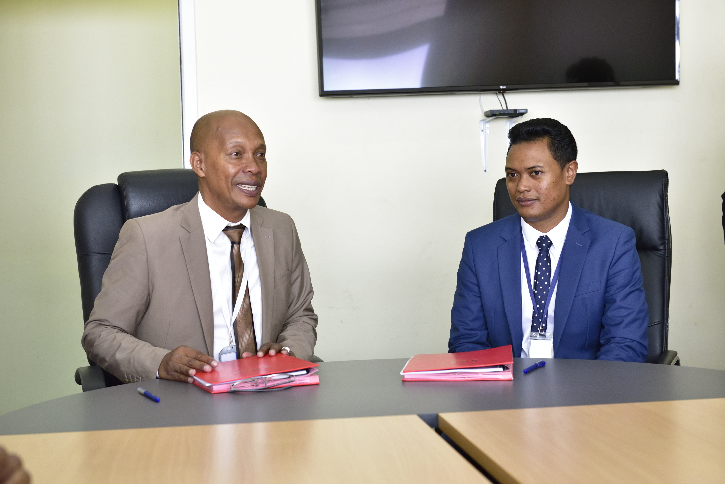 La passation de service entre RAVELOSON Heriniaina, Responsable de programme sortant et RAZAFINDRASATA Patrick Heriniaina, Responsable de programme entrant, s’est tenue à la salle de réunion de l’ex-DGAI à Antsahavola le 26 mars 2019. La cérémonie y afférente a été assistée par des Responsables issus de la Direction de l’Audit Interne (DAI) et de la Direction Administrative et Financière (DAF) du MEF dans les locaux abritant les bureaux de la DAI.