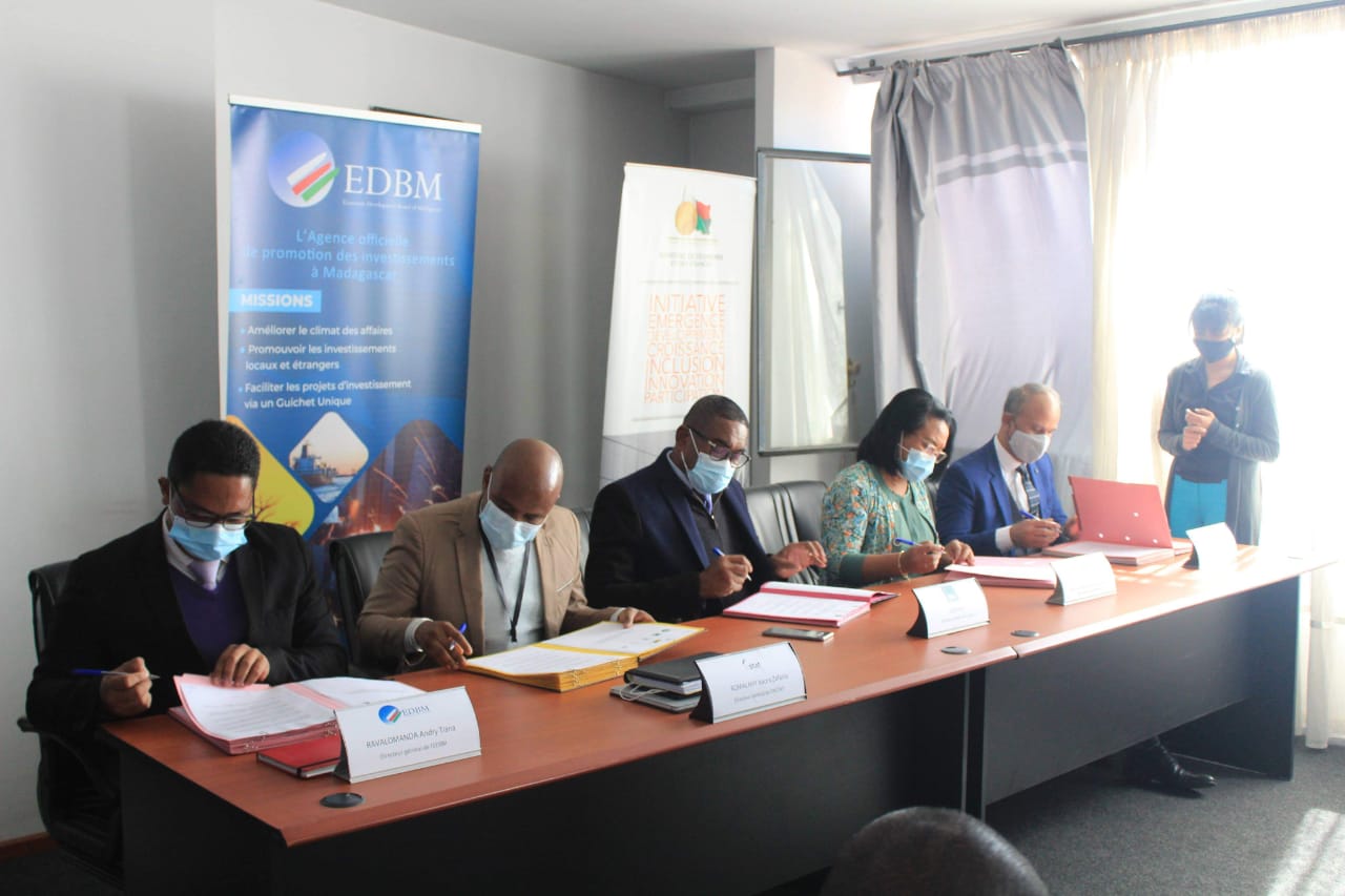 Signature de la Convention de collaboration relative à la digitalisation de la procédure de création d’entreprises Le mercredi 02 juin 2021, une Convention de collaboration est conclue entre la Direction Générale des Affaires Judiciaires (DGAJER) au sein du Ministère de la Justice, la Direction Générale des Impôts et l’Institut National de la Statistique (INSTAT) au sein du Ministère de l’Économie et des Finances, la Caisse Nationale de Prévoyance Sociale (CNaPS) et l’Economic Development Board of Madagascar (EDBM). La convention a pour objet de réaliser la collaboration entre les Parties sur la digitalisation de la procédure de la création d’entreprises à Madagascar. La digitalisation est une étape incontournable afin de réduire la procédure, le temps de traitement des demandes et le coût relatifs à la création d’entreprises. C’est dans cette optique que le Gouvernement a initié ce projet dans le cadre d’une réforme plus large qui est la mise en place de l’E-gouvernance. Certes, des avancées majeures ont été observées à ce jour dans le domaine de l’entrepreneuriat. Pourtant, des réformes structurelles doivent être entreprises afin d’améliorer la performance du pays en matière de création d’entreprises et d’amélioration du climat des affaires en général. À cet égard, dans le rapport Doing Business 2020 de la Banque mondiale, Madagascar a été placé à la 80ème place sur 190 pour ce qui concerne l’indicateur création d’entreprises et à la 161ème place dans le classement global. S’exprimant au nom du Ministère de l’Economie et des Finances, le Directeur Général des Impôts a vivement remercié l’EDBM pour l’initiative de digitalisation des procédures qui rejoint les efforts déjà entrepris par le Ministère de l’Économie et des Finances pour la mise en place de la télédéclaration et télépaiement des impôts. Il espère que l’initiative contribuera à la hausse de l’effectif des entreprises créées dans le pays qui a été freinée ces dernières années par la crise économique mondiale liée à la pandémie de la Covid-19. Dans la même foulée, il a profité de l’occasion pour annoncer la mise en place prochainement de la plateforme e-salarié qui est le fruit de la collaboration entre le MEF et la Direction Générale de la CNaPS. Le Directeur Général de l’INSTAT, quant à lui, a souligné dans son allocution l’importance particulière de cette initiative pour permettre à toutes les parties prenantes de détenir les mêmes informations à temps réels. Pour le cas de l’INSTAT, la digitalisation contribuera énormément à l’amélioration de la qualité et de la fiabilité des données sur les entreprises, une base de données qui est régulièrement utilisée pour mesurer l’évolution de l’économie dont les entreprises en sont les premiers acteurs, en particulier en ce qui concerne l’établissement des comptes nationaux.